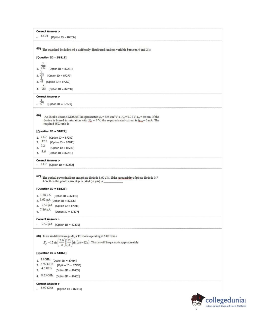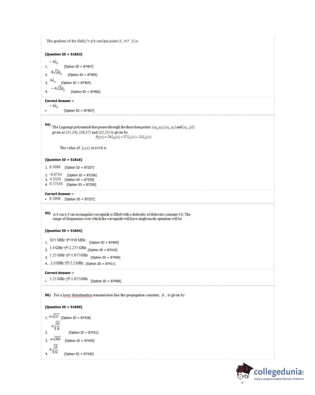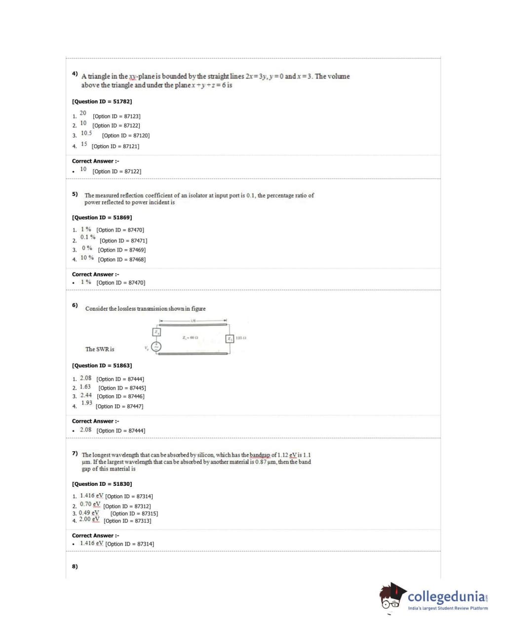 DUET 2018 M.Tech. Microwave Electronics Question Paper with Answer Key PDF Shift 3
