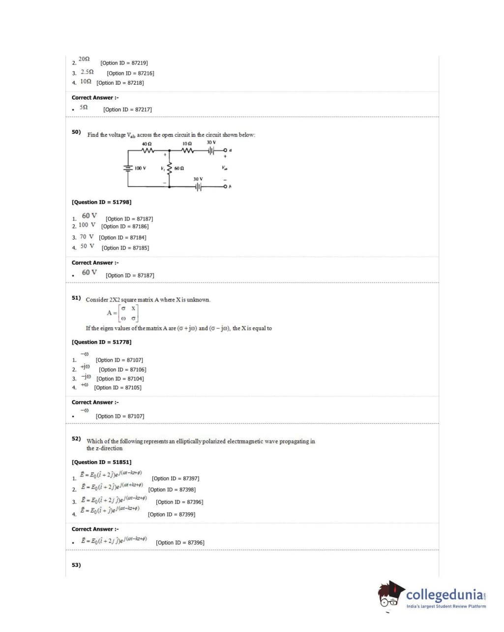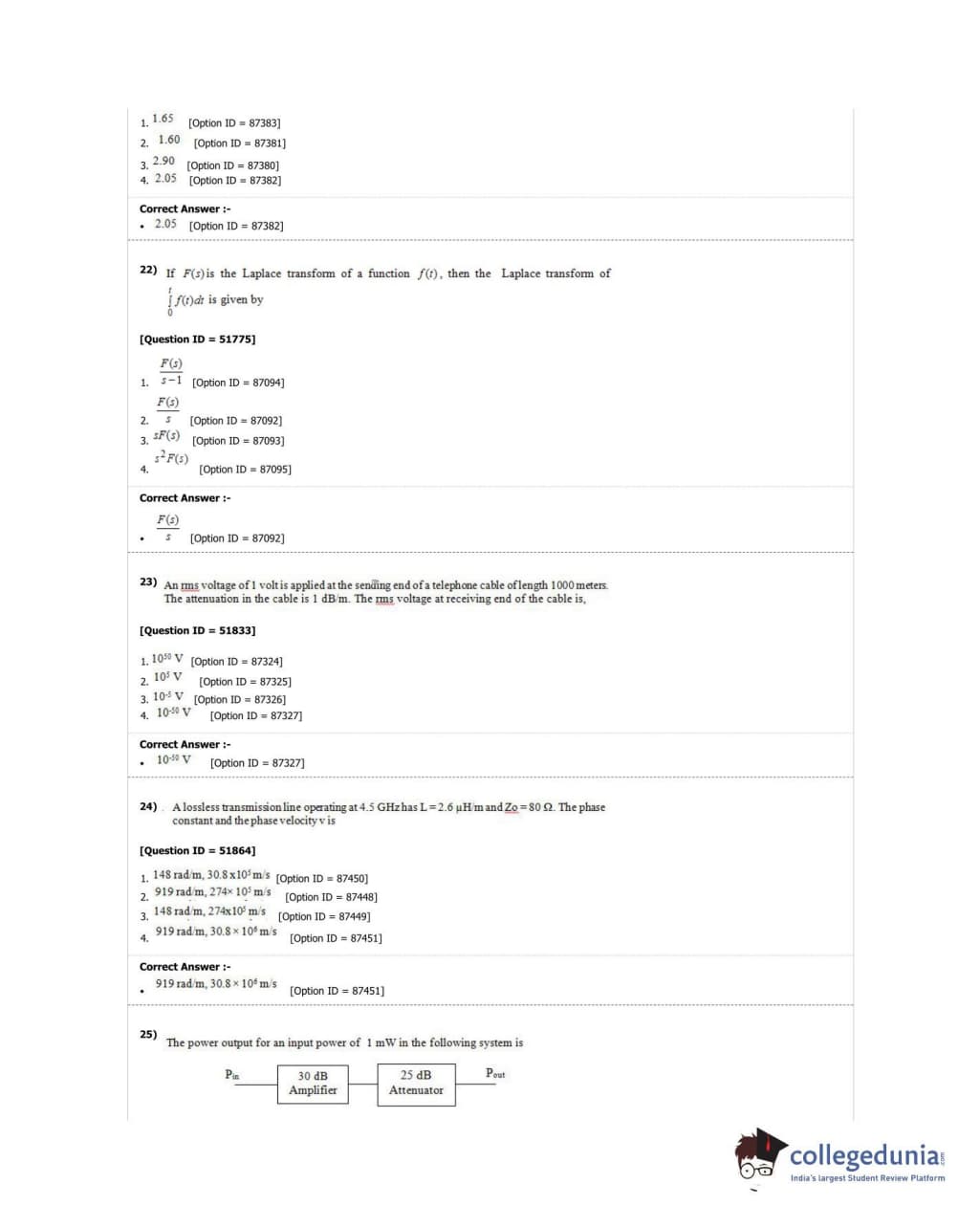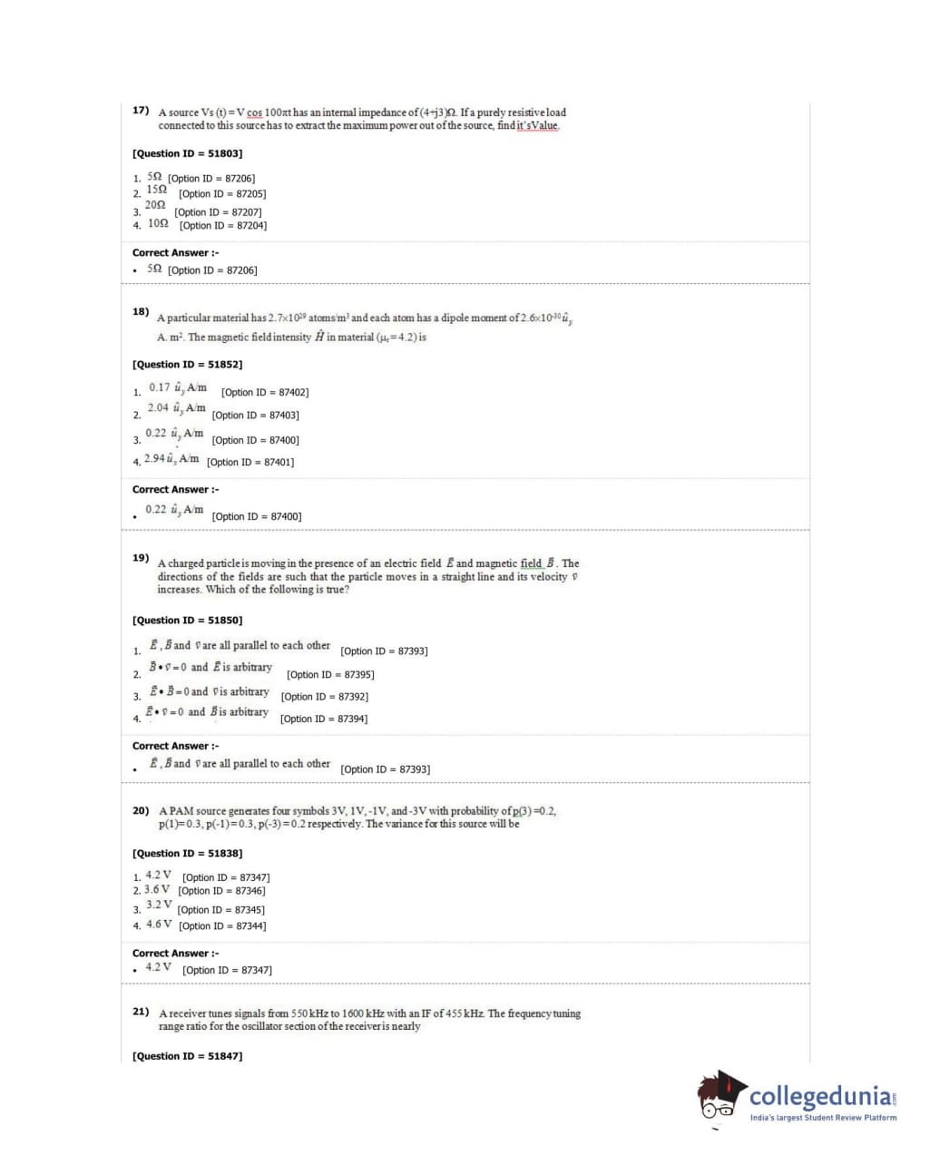 DUET 2018 M.Tech. Microwave Electronics Question Paper with Answer Key PDF Shift 3