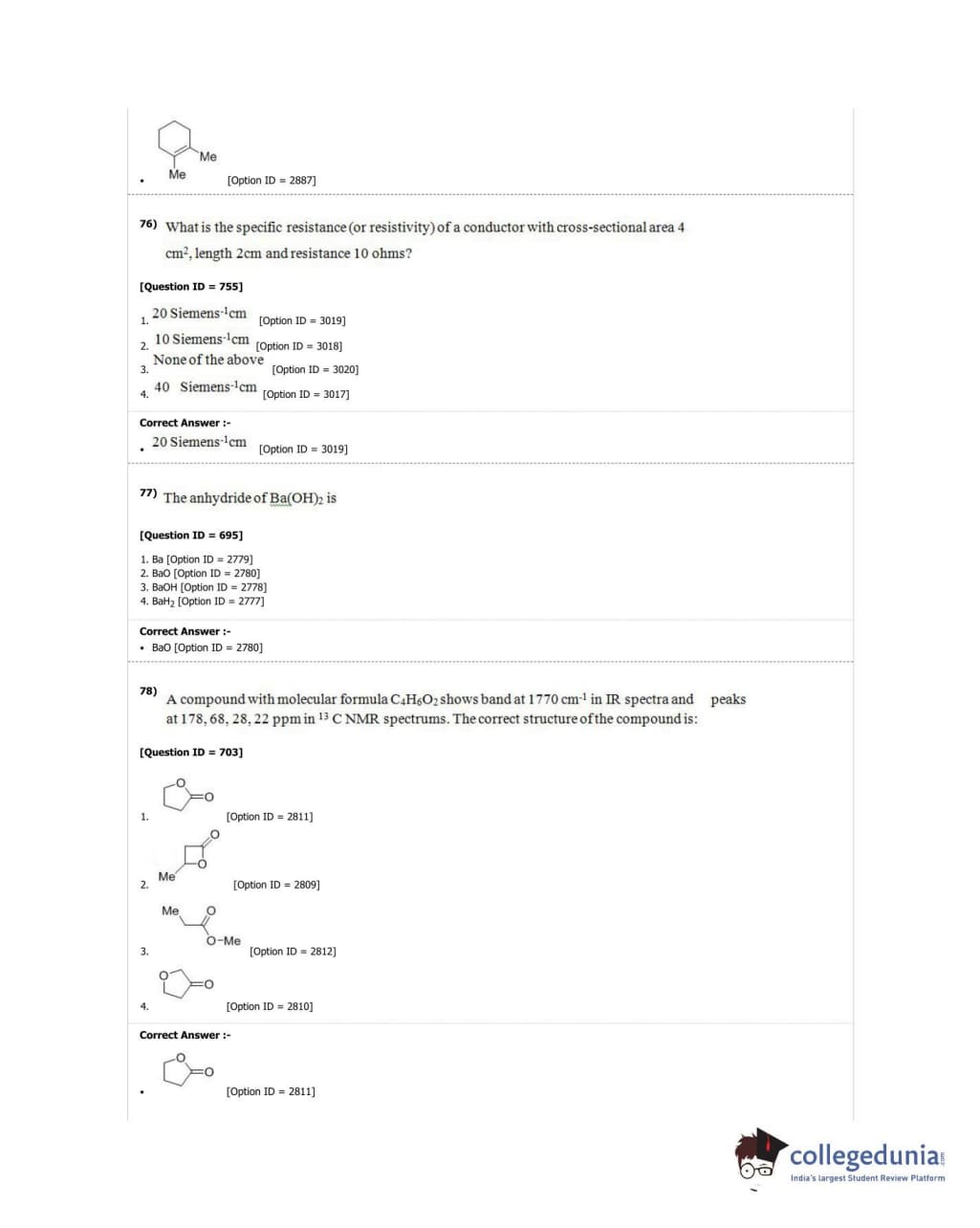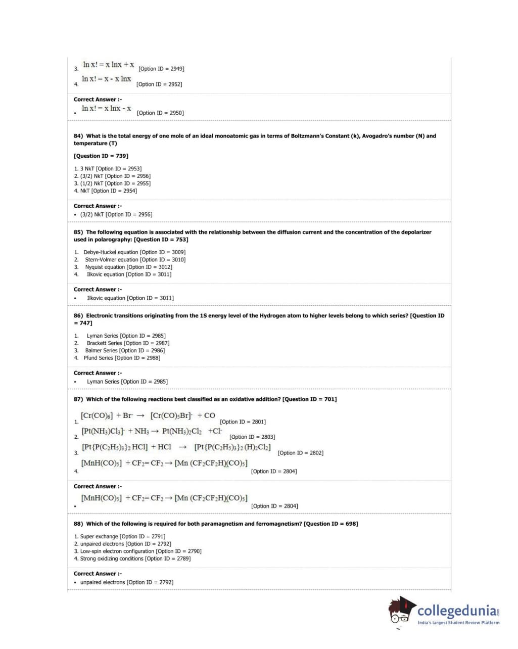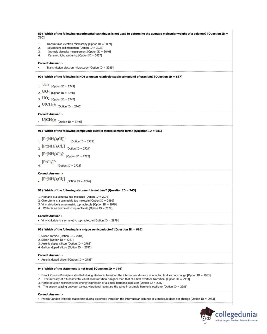 DUET 2018 Ph.D. in Chemistry Question Paper with Answer Key PDF Shift 2