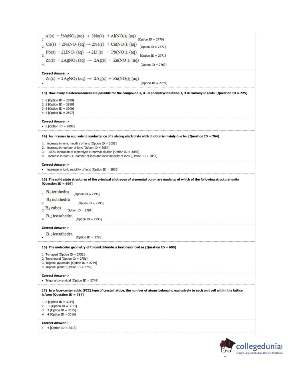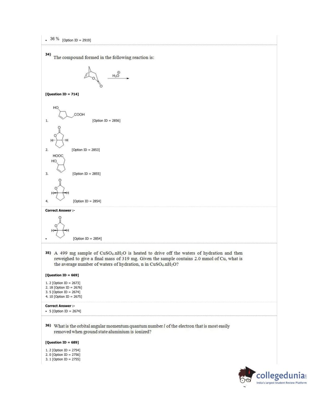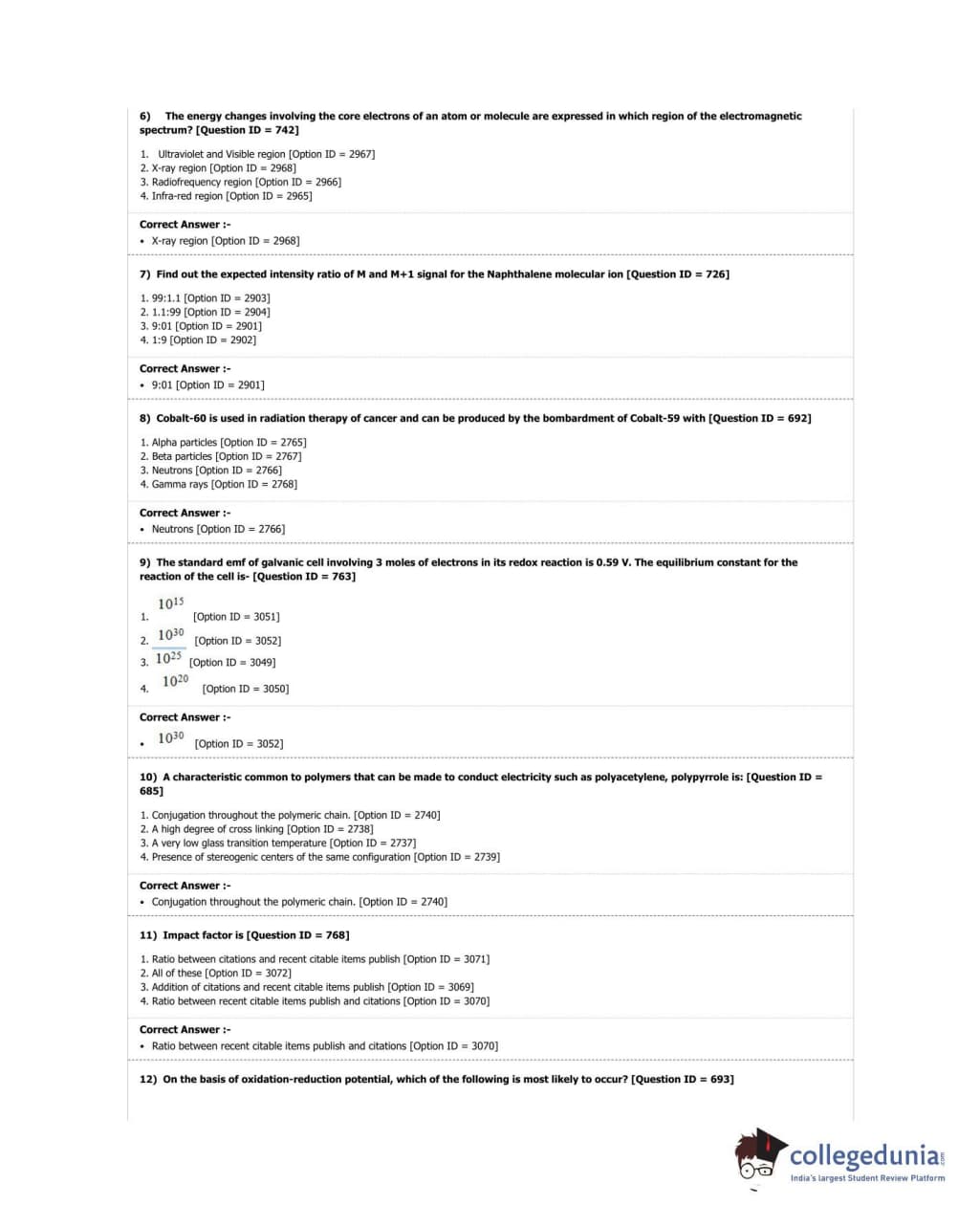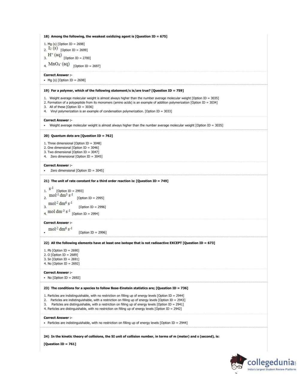DUET 2018 Ph.D. in Chemistry Question Paper with Answer Key PDF Shift 2
