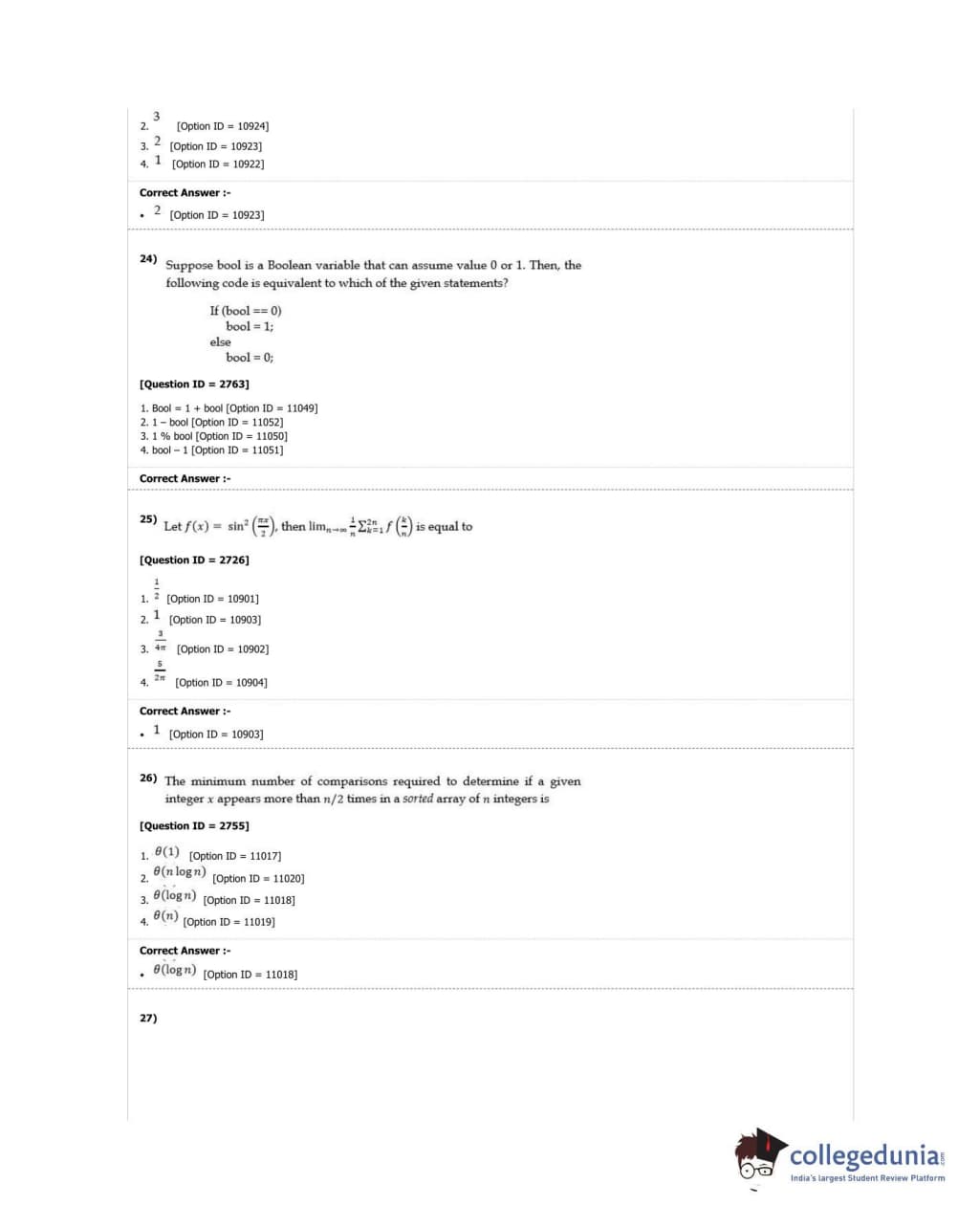 DUET 2018 Ph.D. in Computer Science Question Paper with Answer Key PDF Shift 1