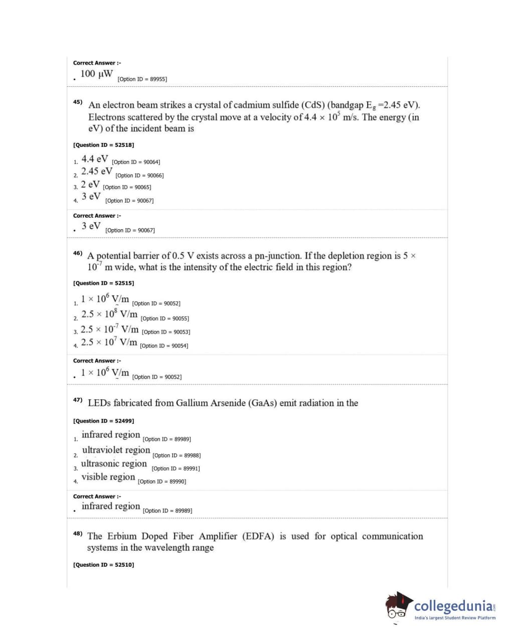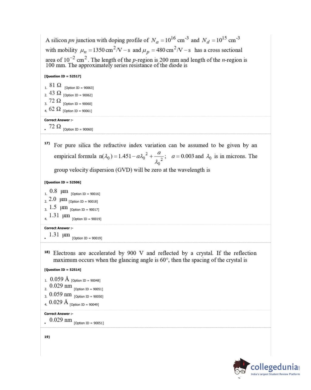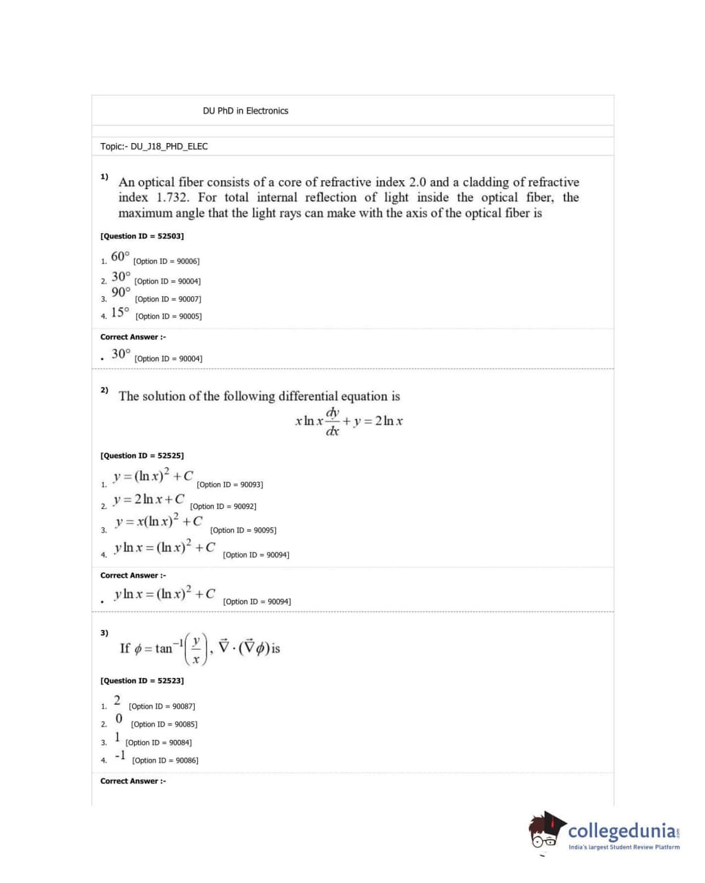 DUET 2018 Ph.D. in Electronics Question Paper with Answer Key PDF Shift 2
