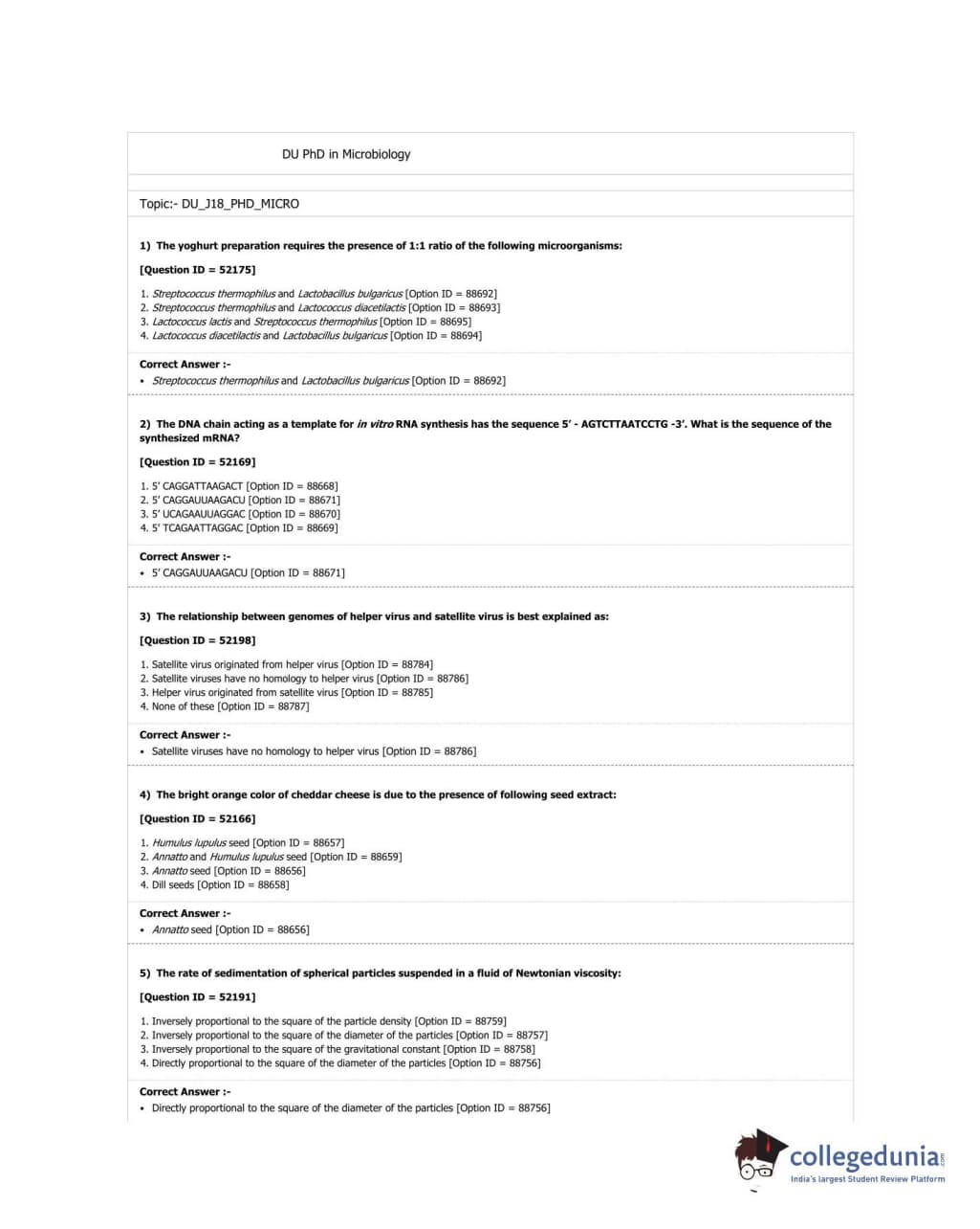 DUET 2018 Ph.D. in Microbiology Question paper with answer key pdf conducted on June 19, 2018 in Shift 3 is available for download. The exam was successfully organized by University of Delhi. The question paper comprised a total of 50 questions.