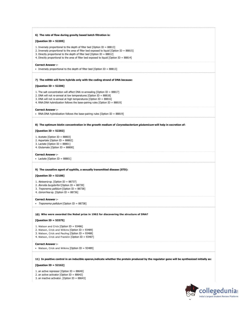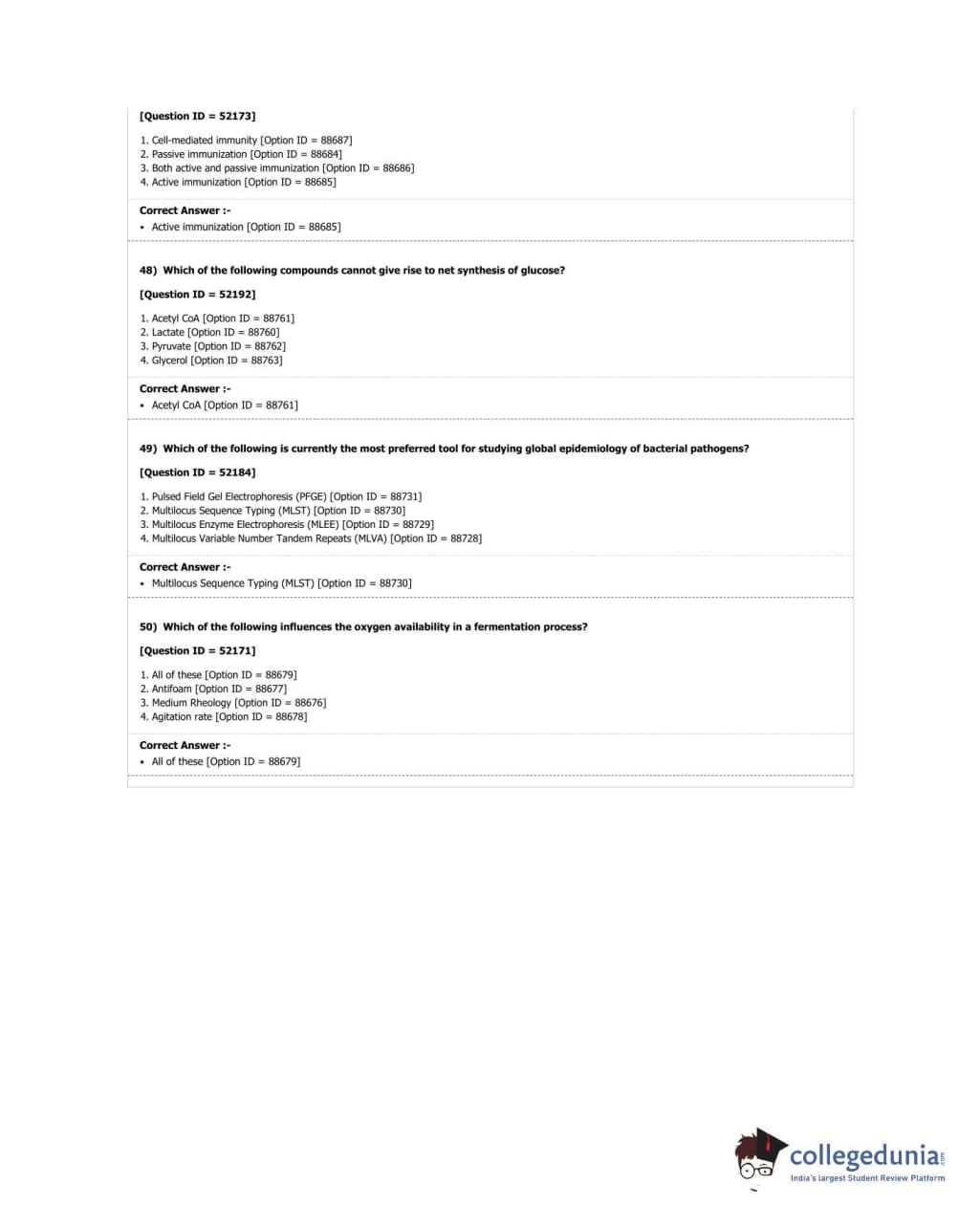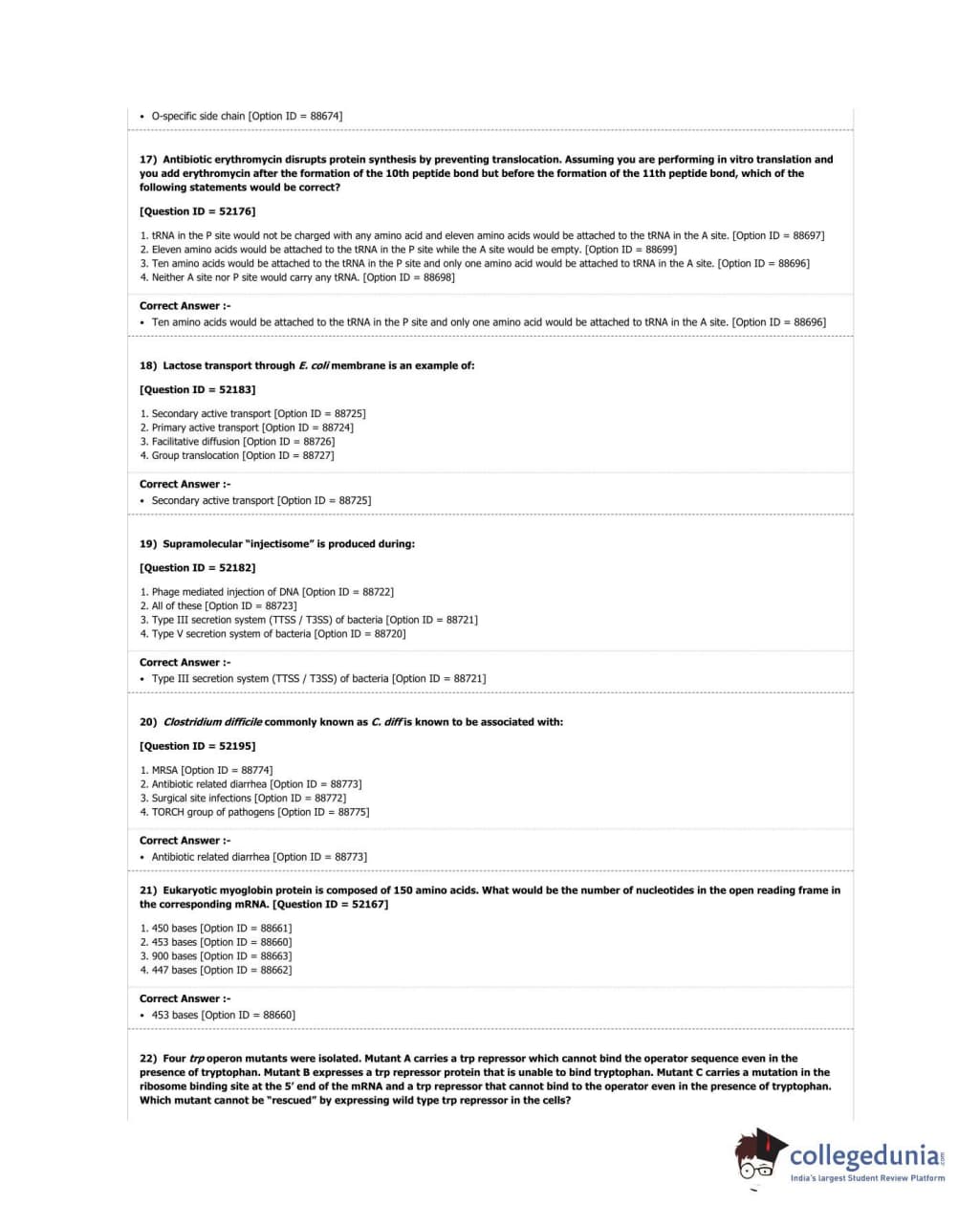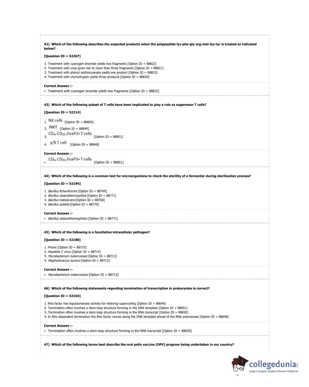 DUET 2018 Ph.D. in Microbiology Question Paper with Answer Key PDF Shift 3