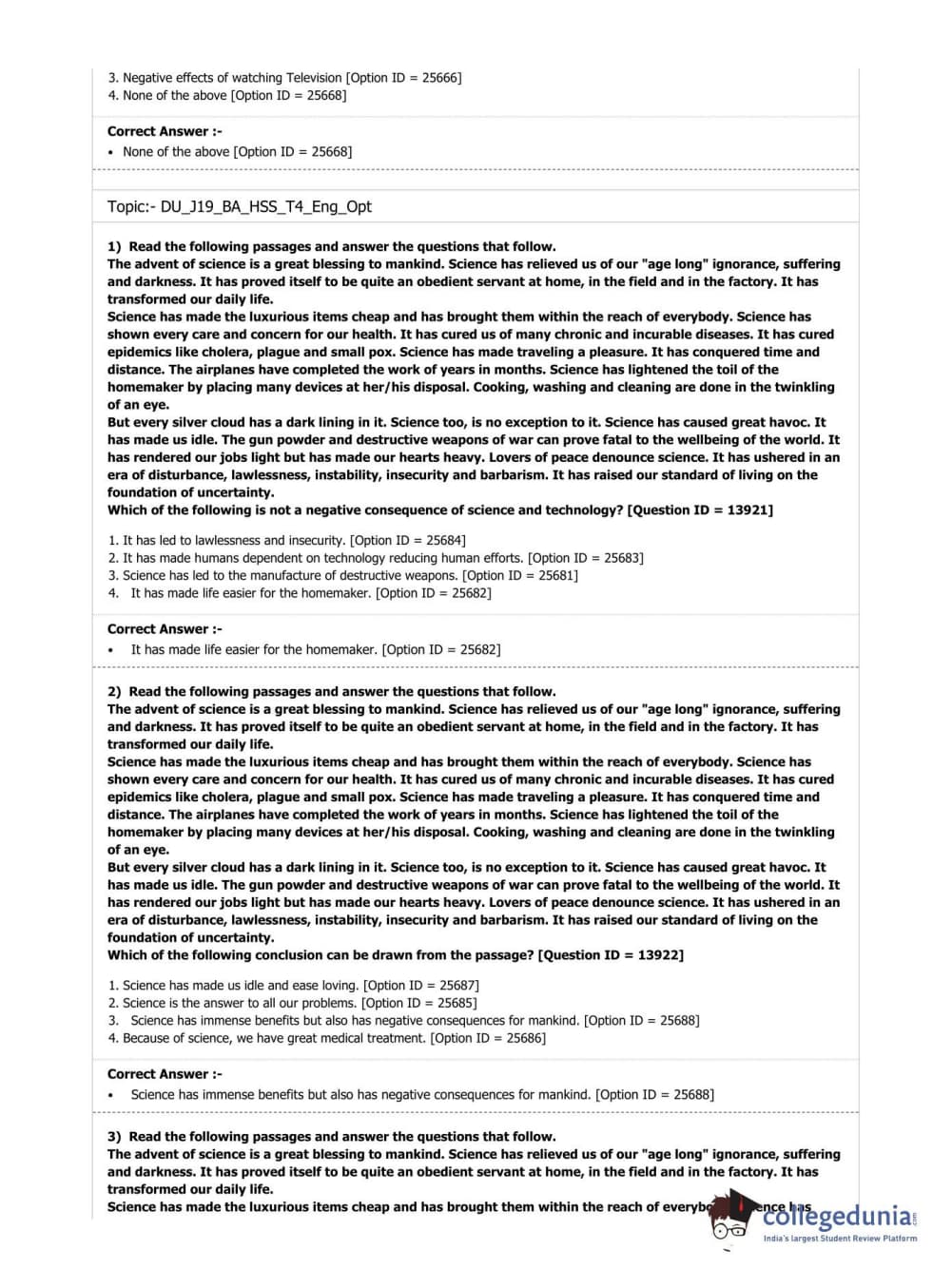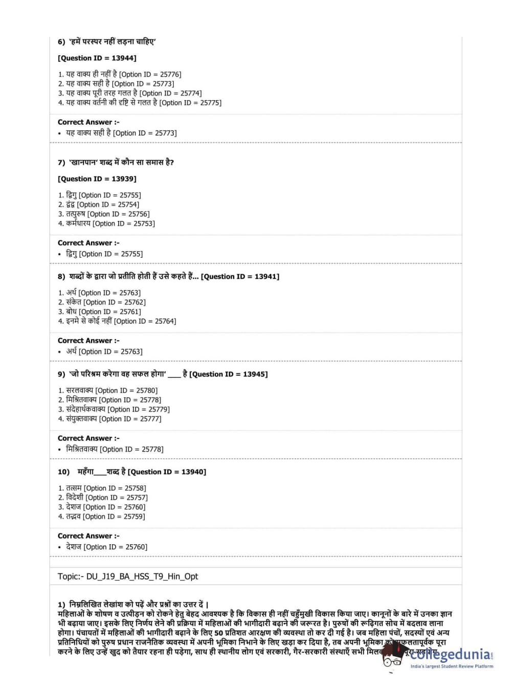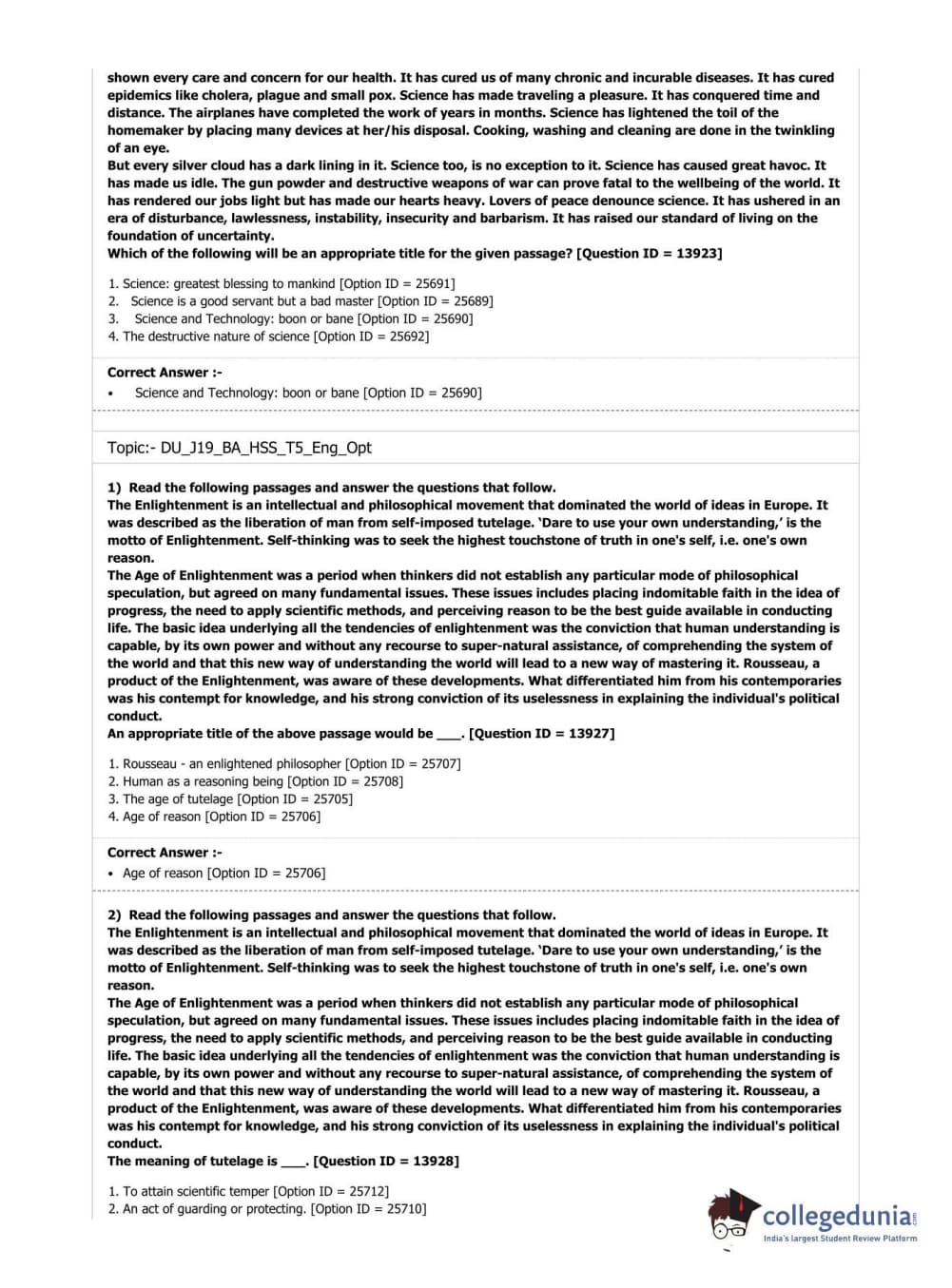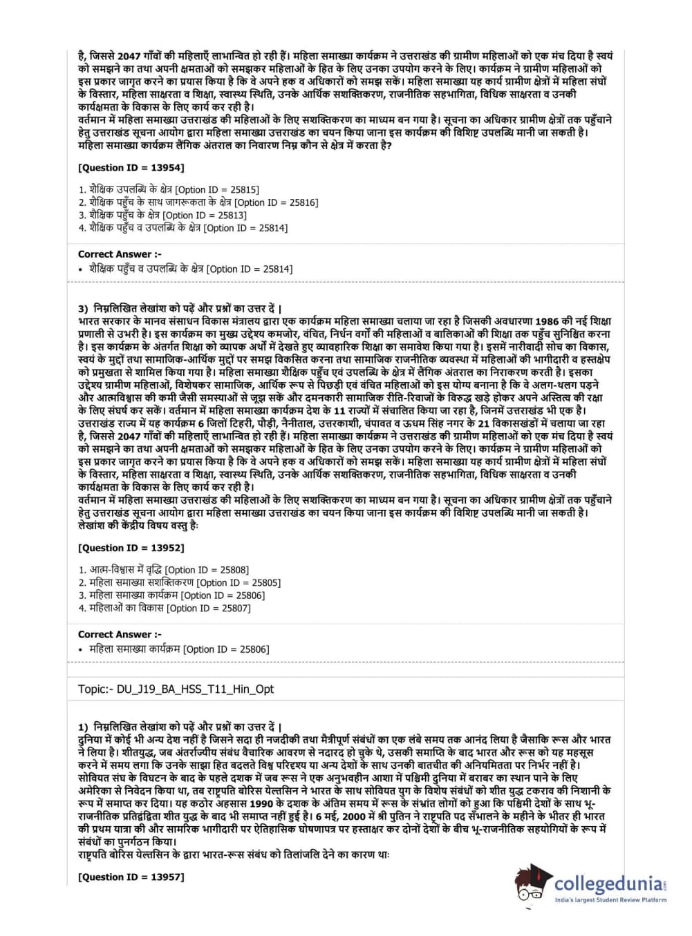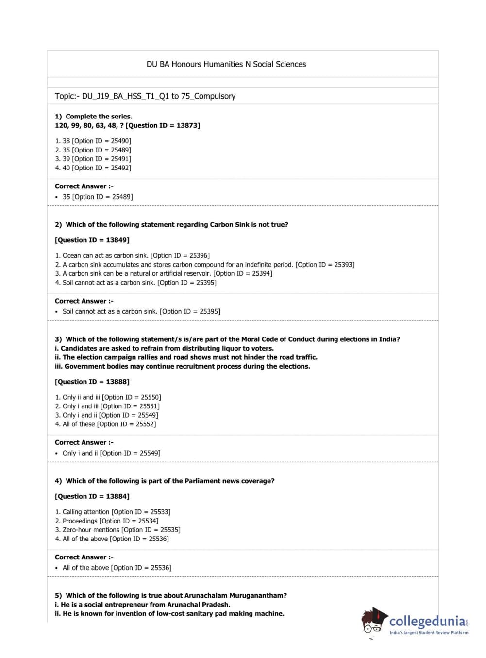 DUET 2019 B.A. (Honours) Humanities & Social Sciences (Cluster Innovation Centre) Question paper with answer key pdf conducted on July 7, 2019 in Shift 1 is available for download. The exam was successfully organized by National Testing Agency (NTA). The question paper comprised a total of 100 questions.