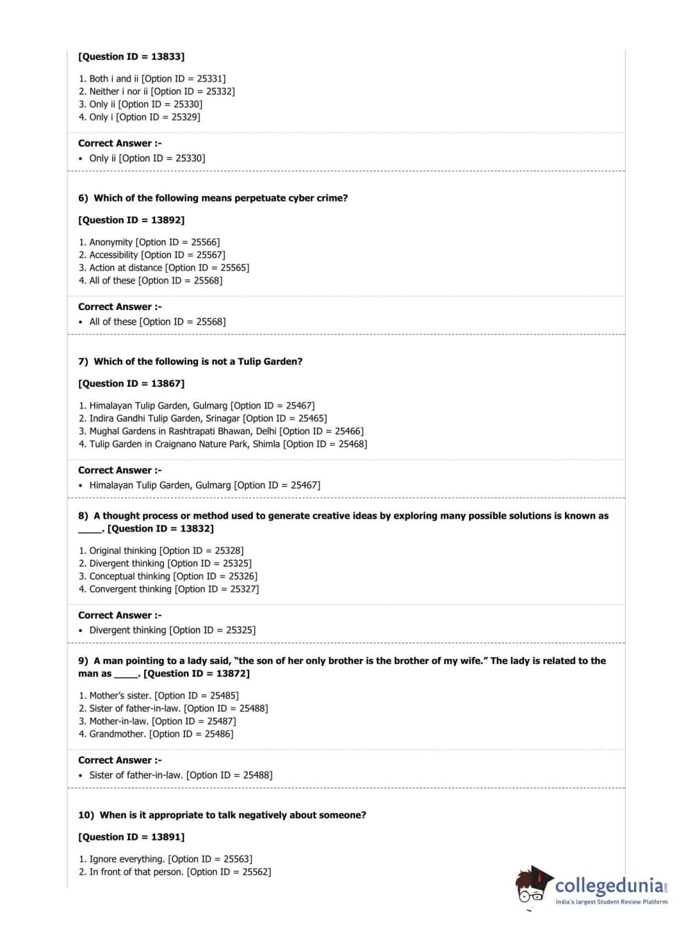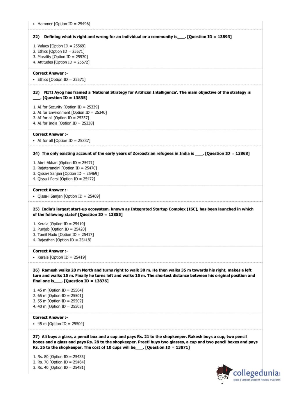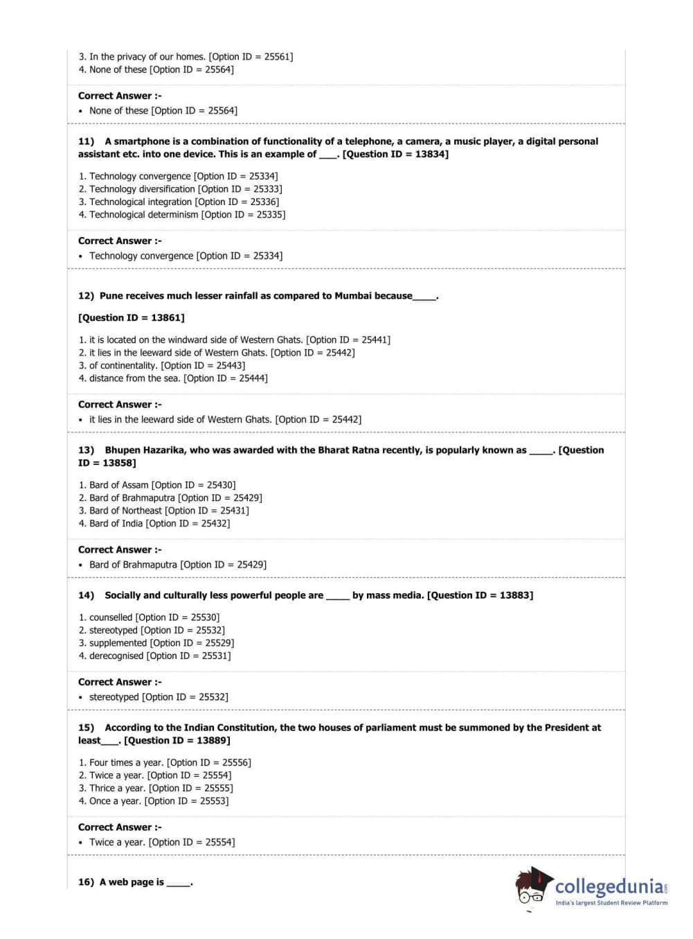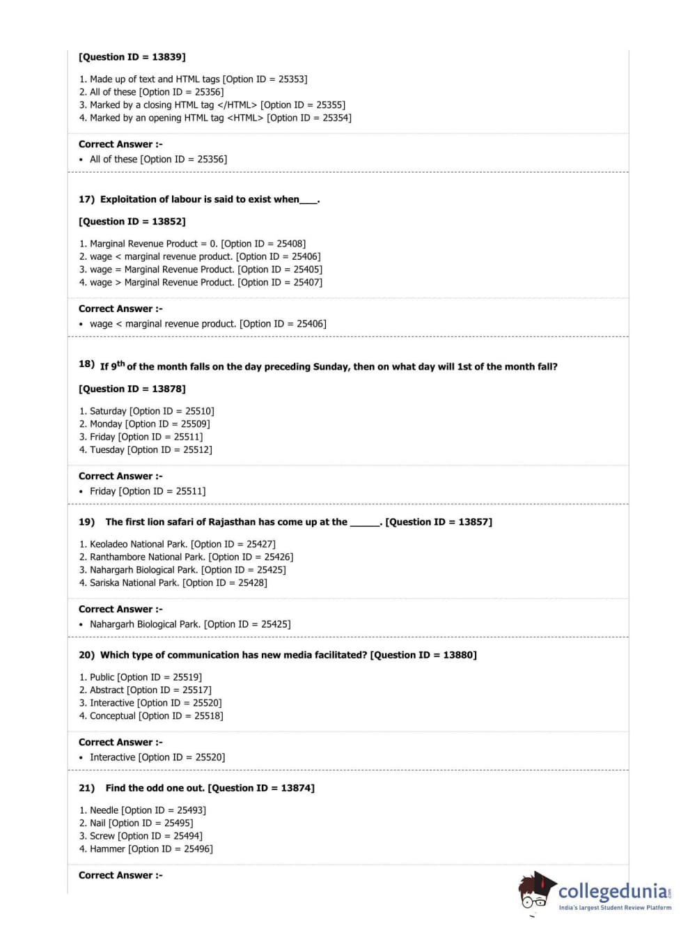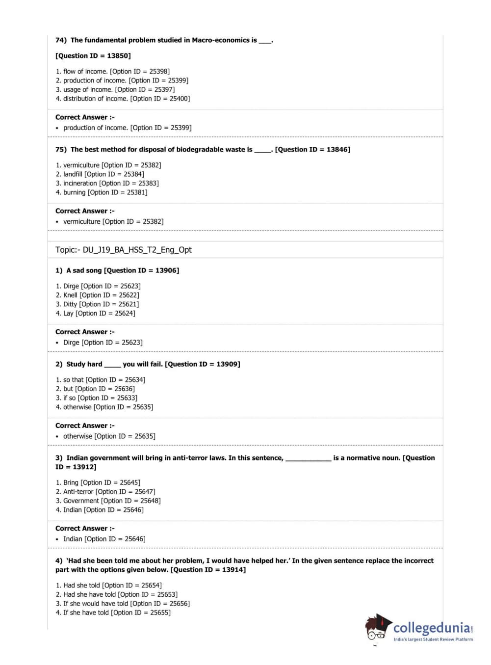 | DUET Subject | Question Paper with Answer Key PDF |