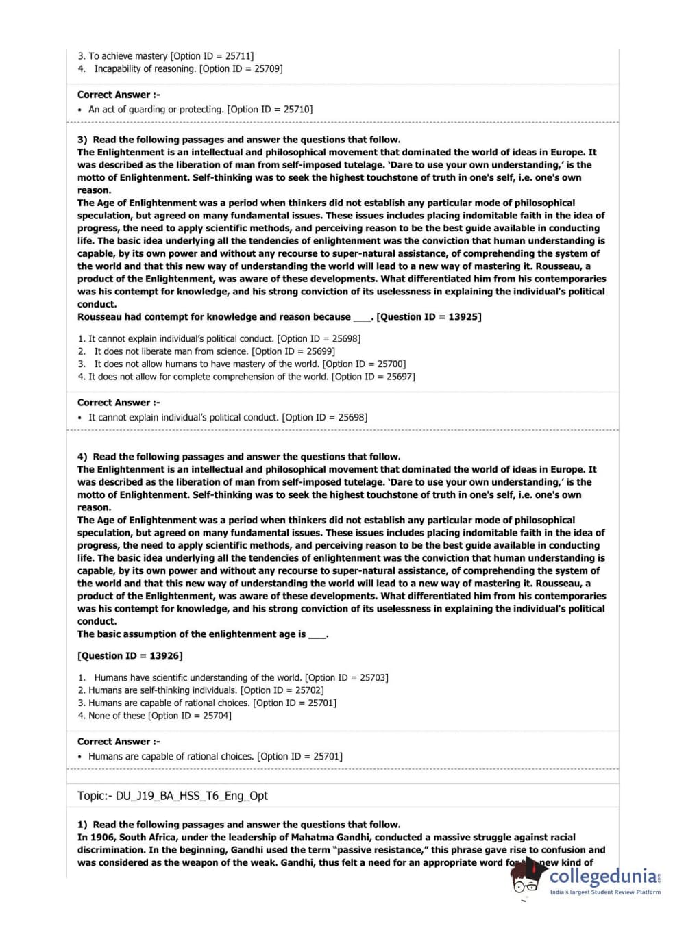 DUET 2019 B.A. (Honours) Humanities & Social Sciences Question Paper with Answer Key PDF Shift 1