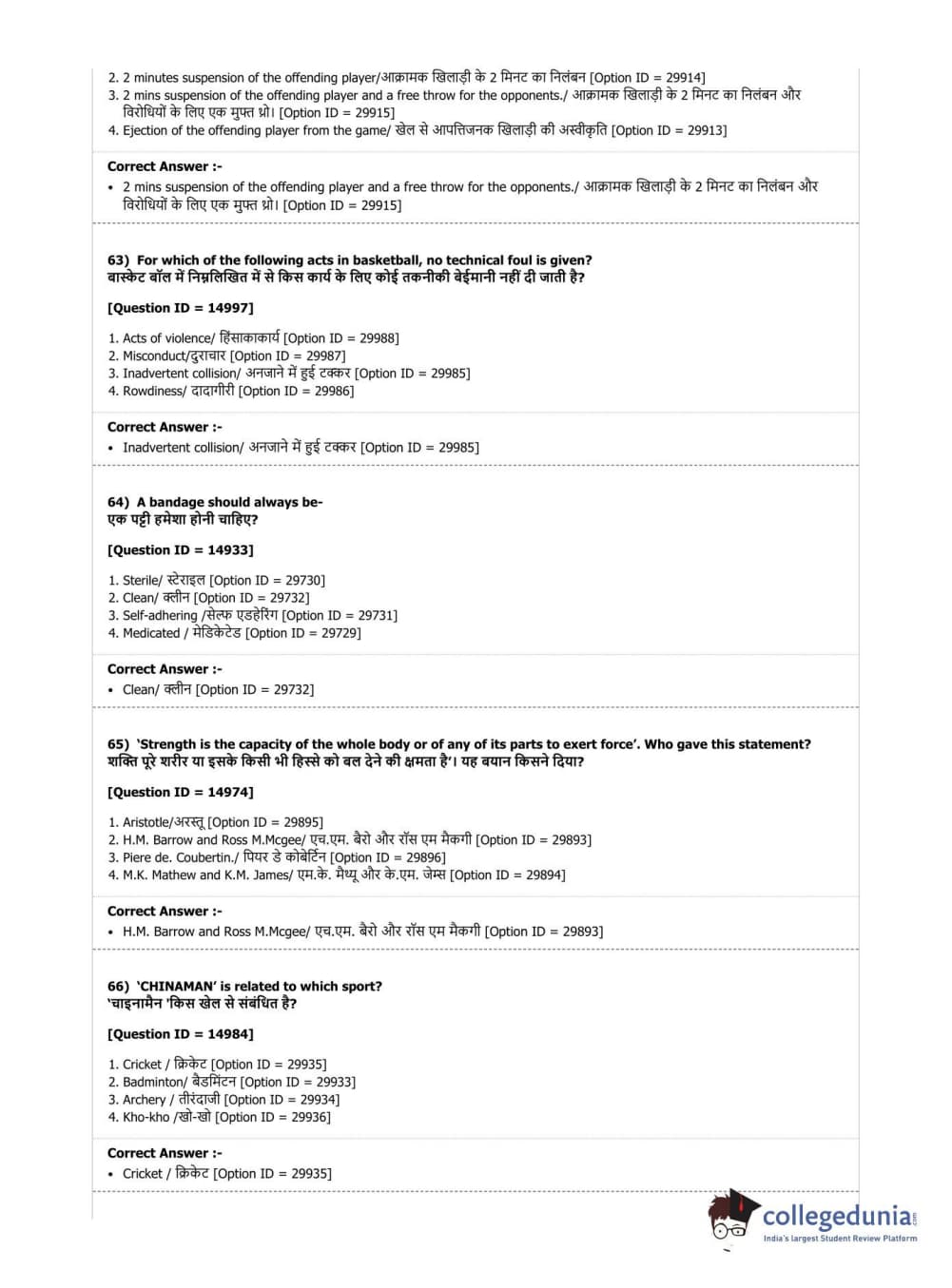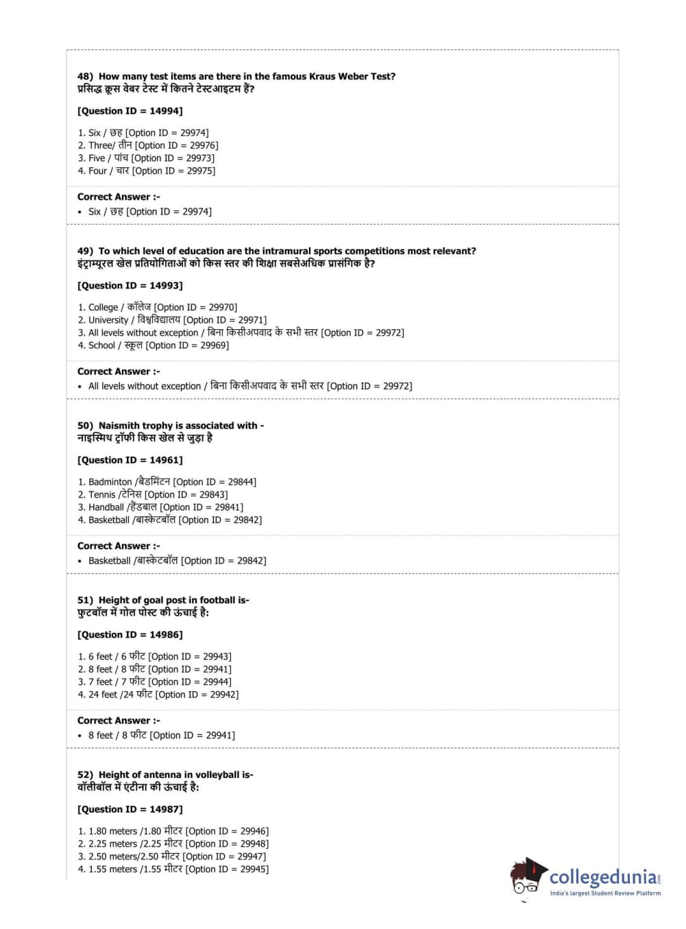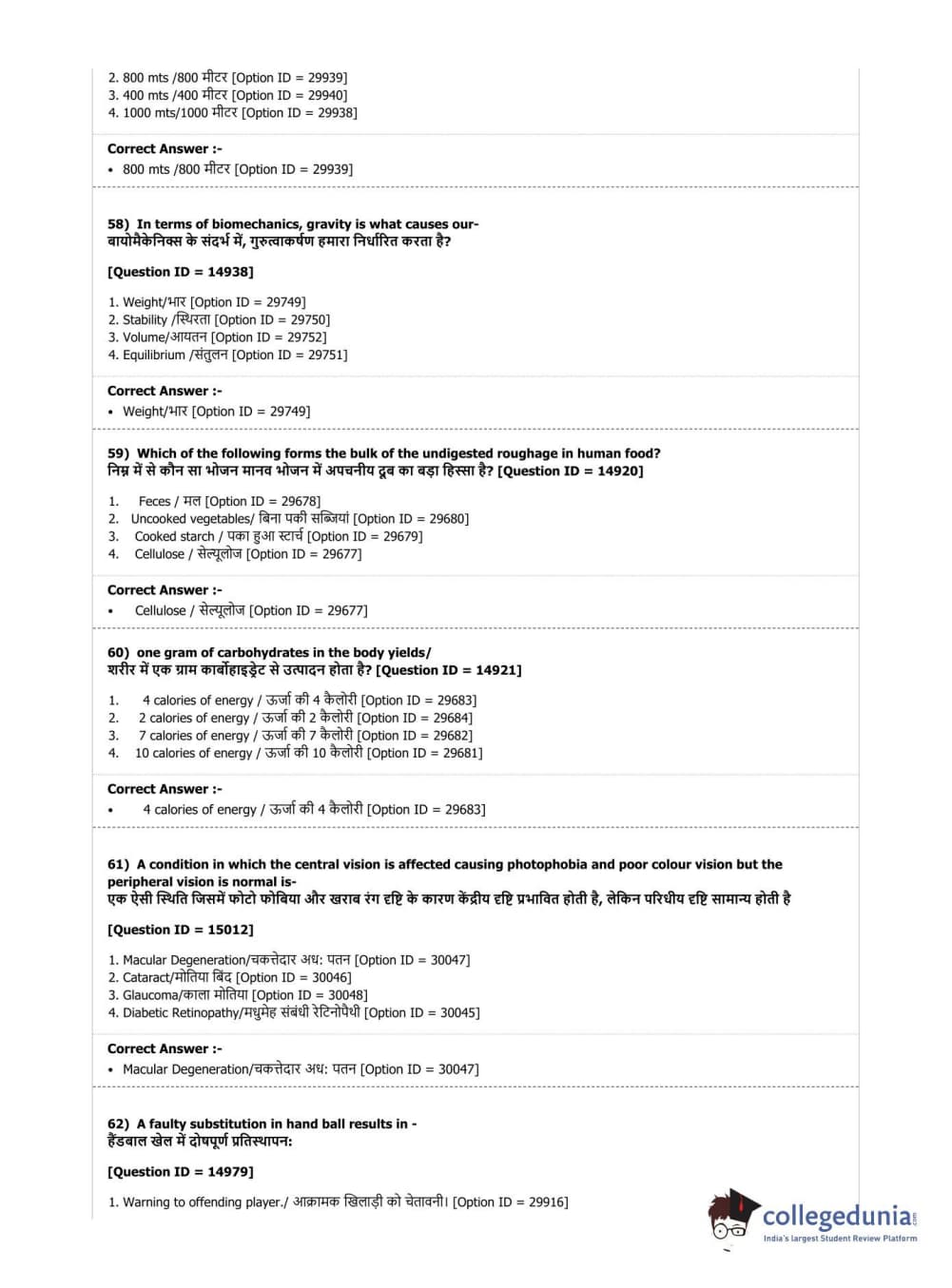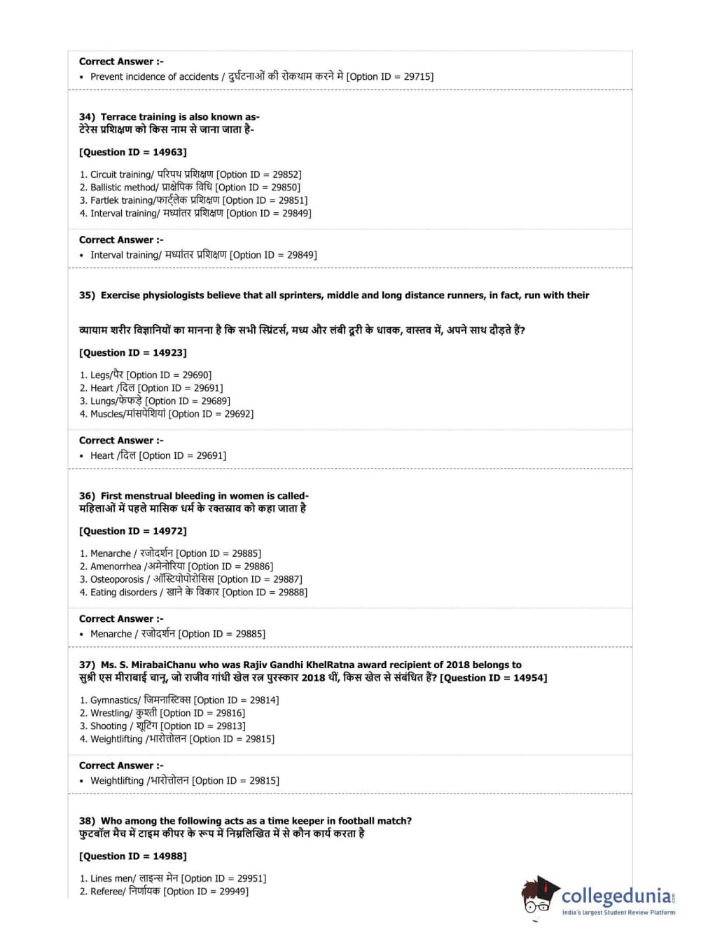 DUET 2019 B.Sc. Physical Education, Health Education & Sports Sciences Question Paper with Answer Key PDF Shift 3