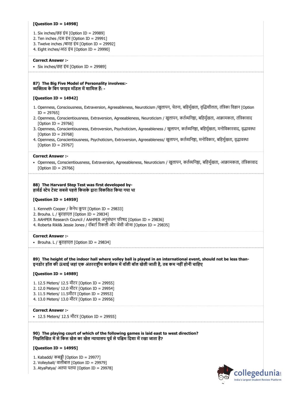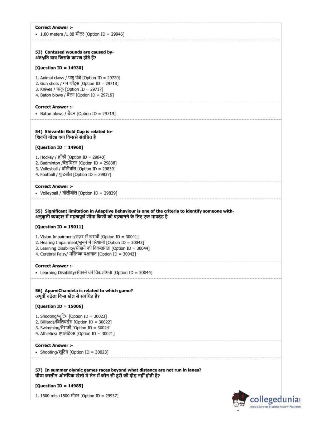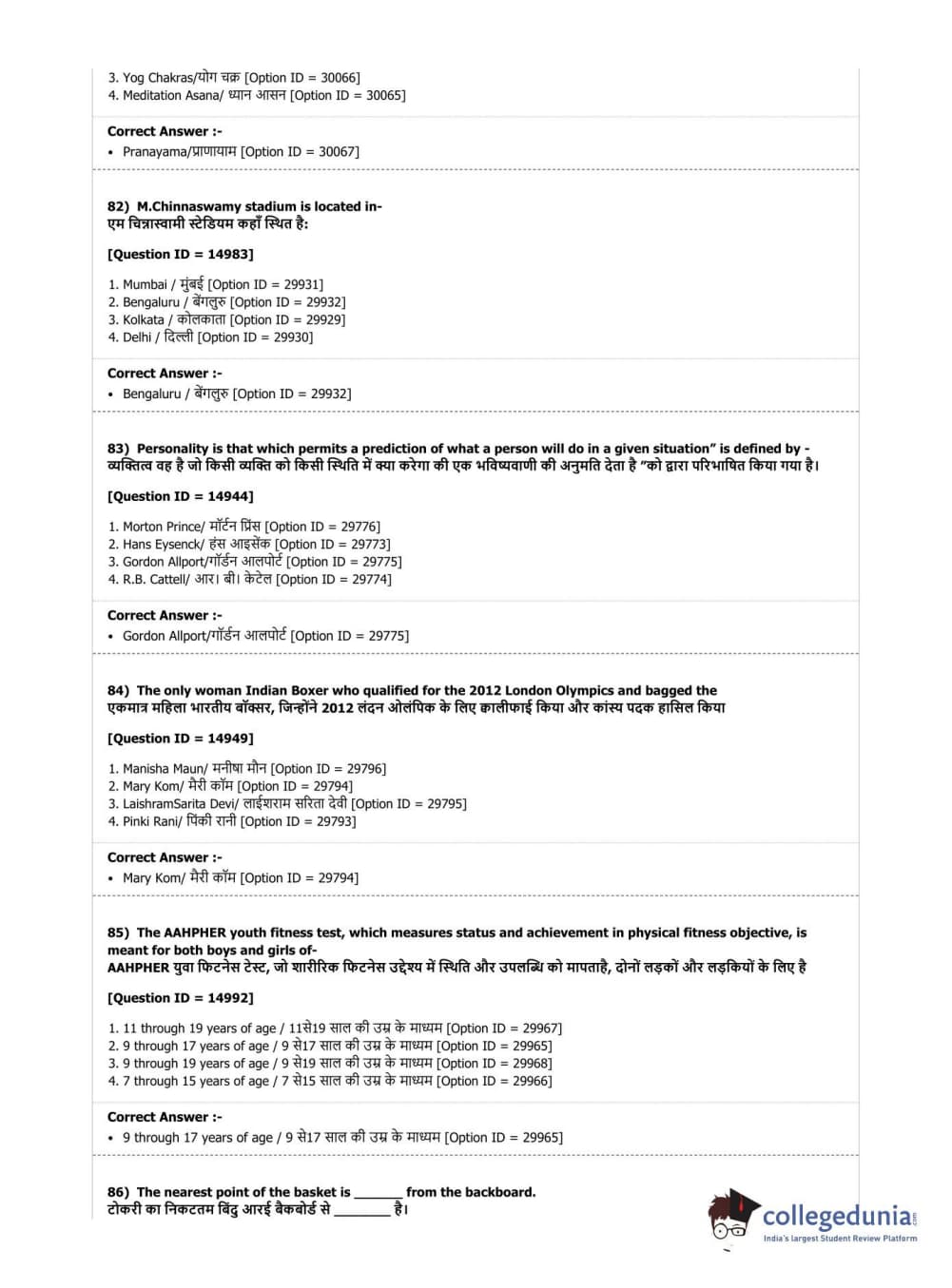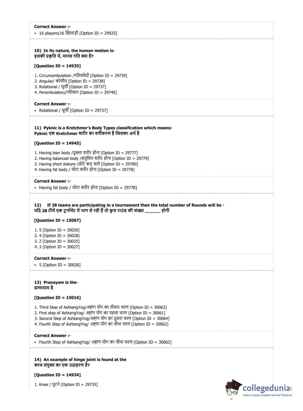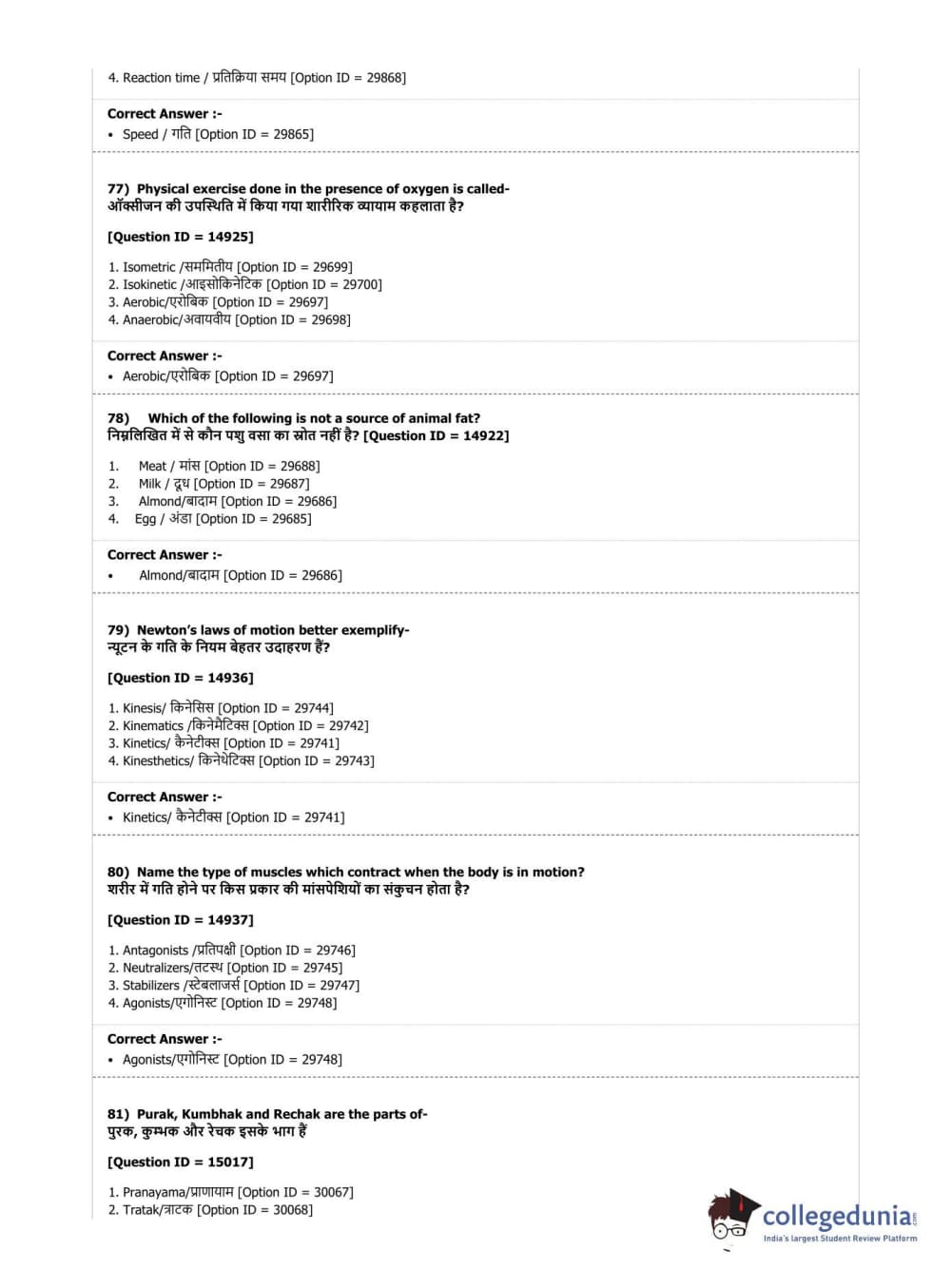 DUET 2019 B.Sc. Physical Education, Health Education & Sports Sciences Question Paper with Answer Key PDF Shift 3
