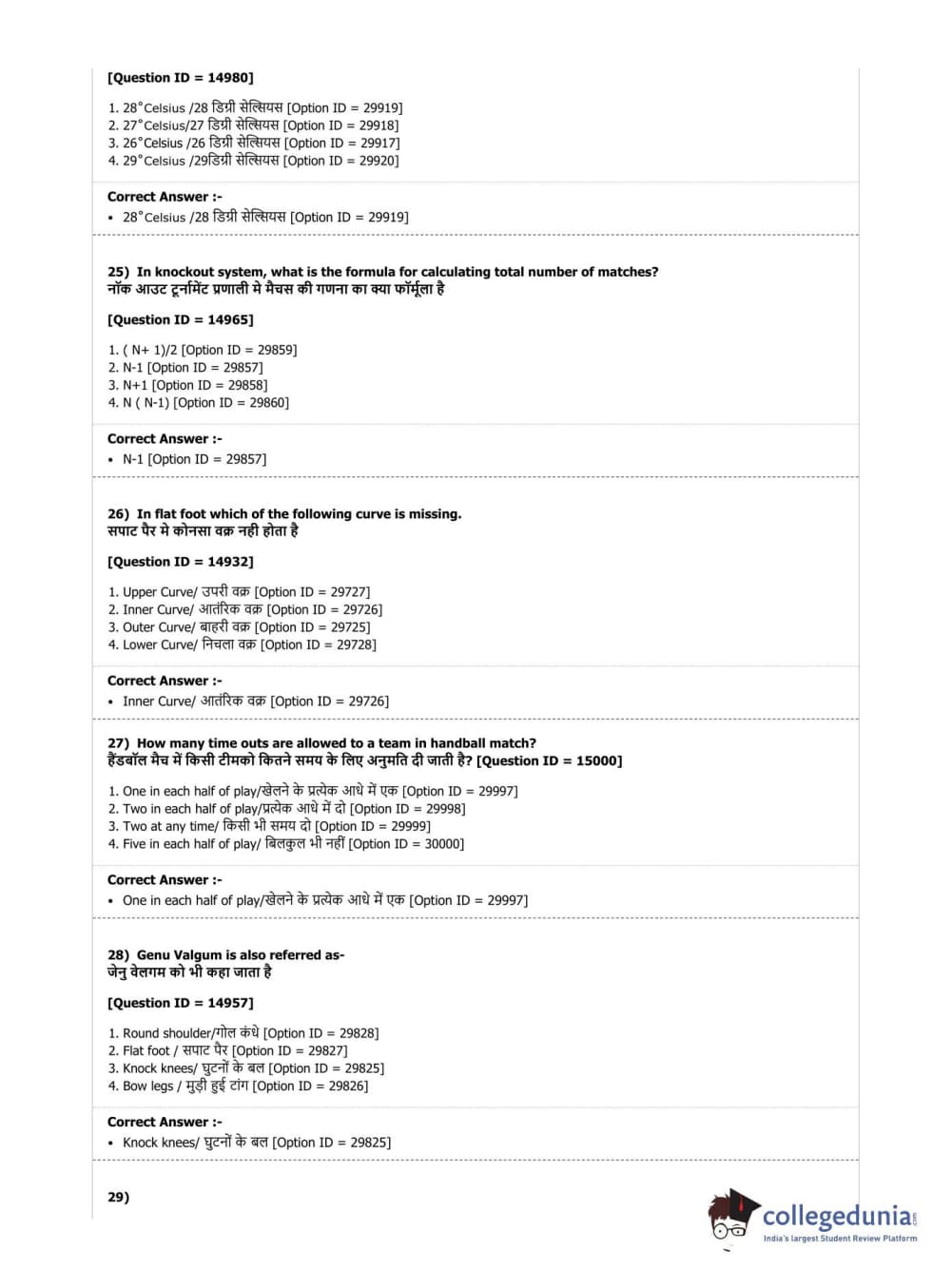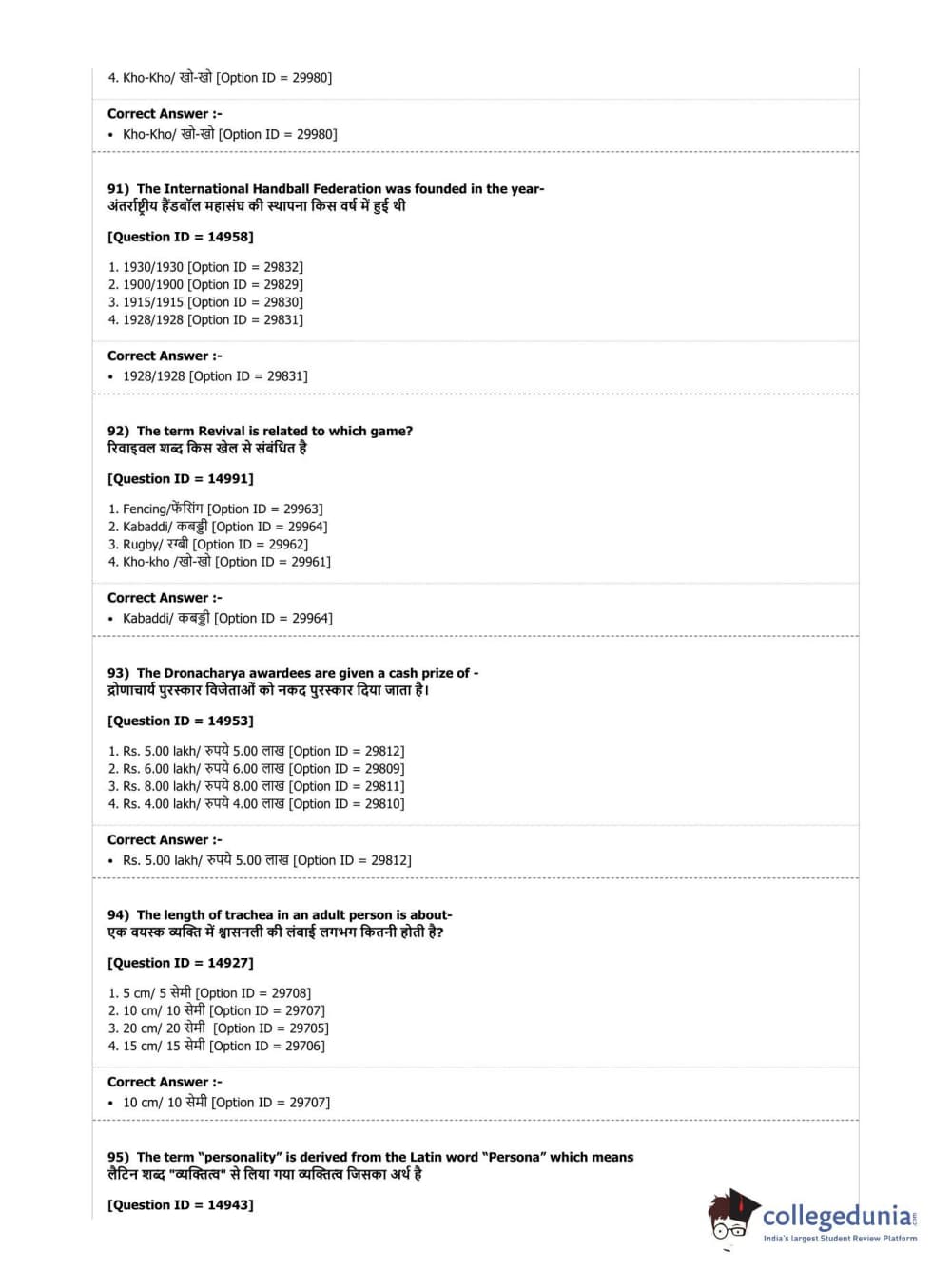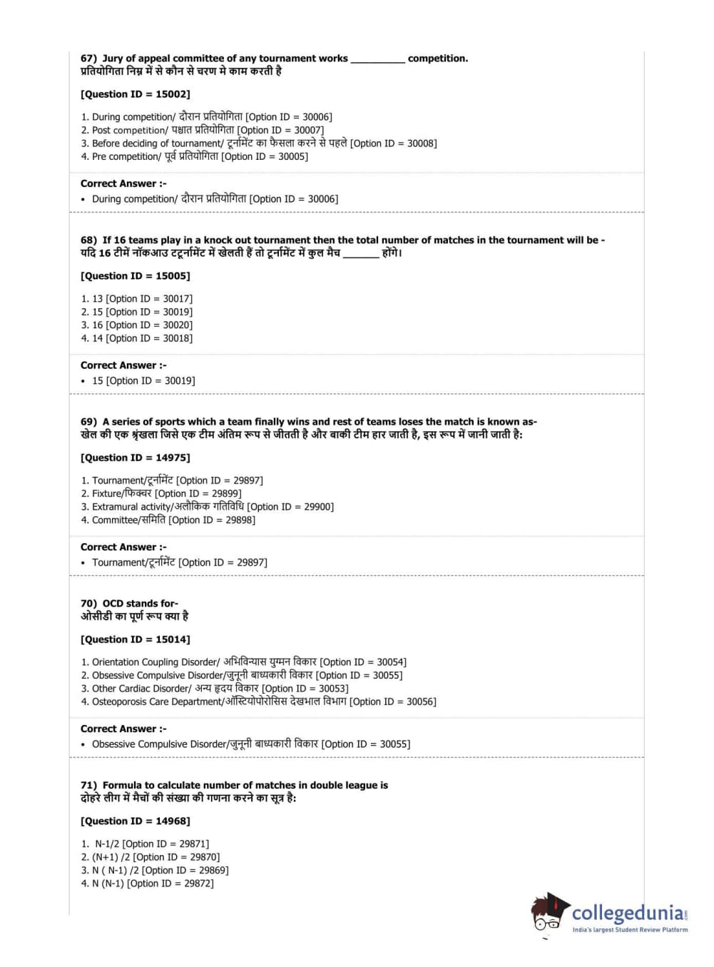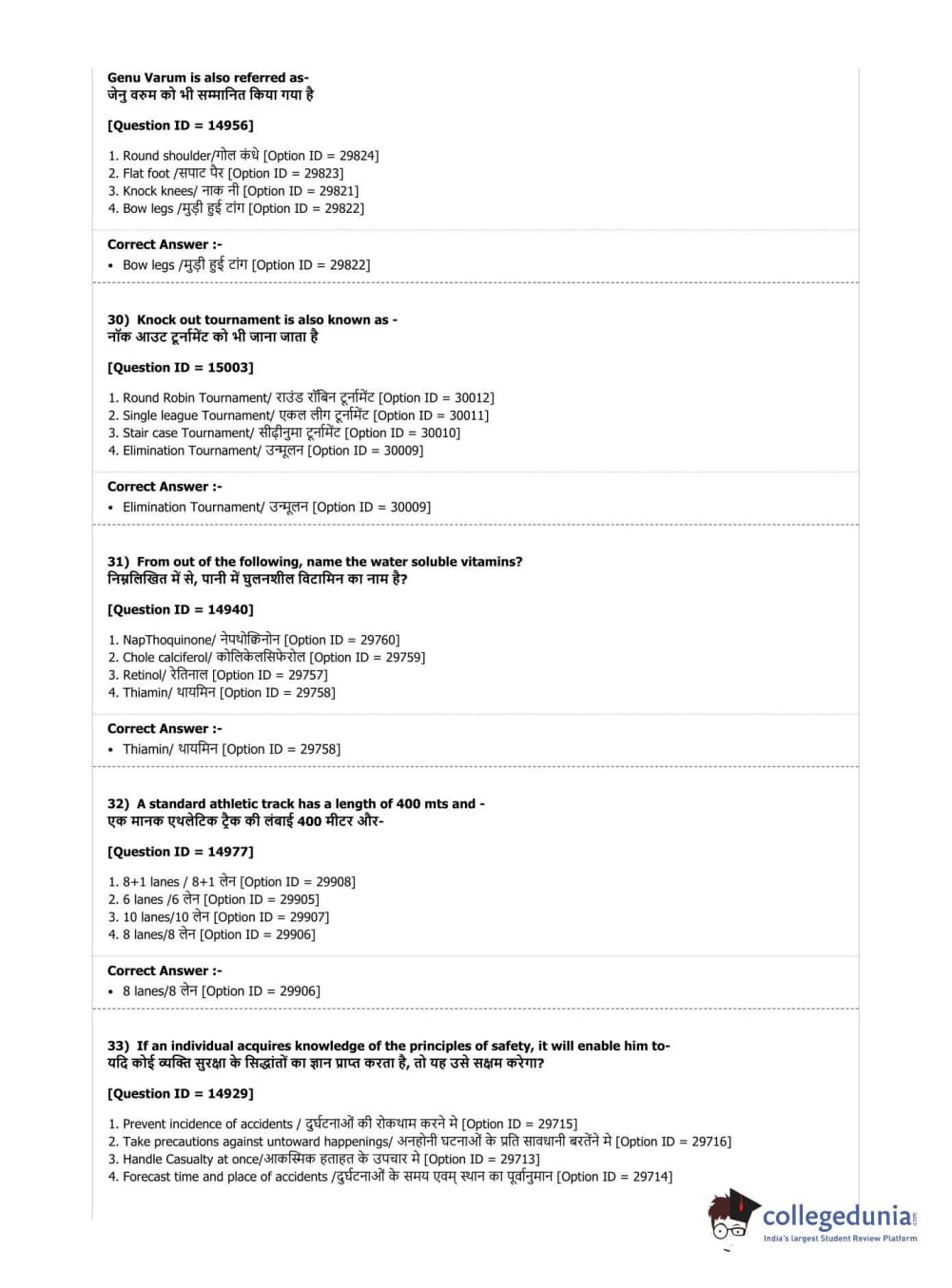 DUET 2019 B.Sc. Physical Education, Health Education & Sports Sciences Question Paper with Answer Key PDF Shift 3