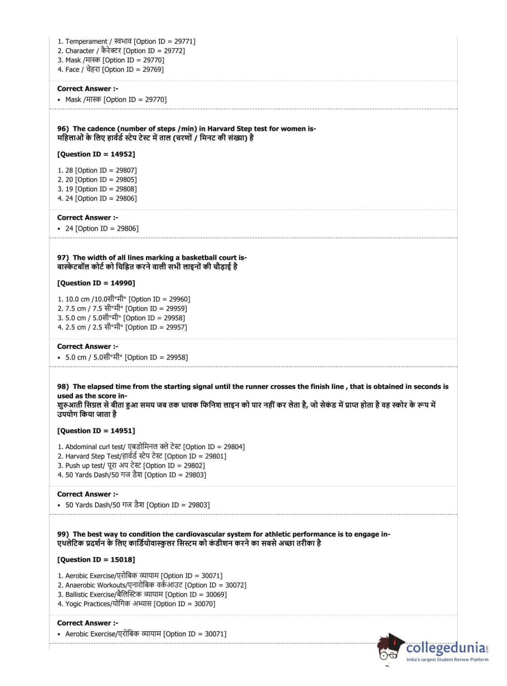 DUET 2019 B.Sc. Physical Education, Health Education & Sports Sciences Question paper with answer key pdf conducted on July 7, 2019 in Shift 3 is available for download. The exam was successfully organized by National Testing Agency (NTA). The question paper comprised a total of 100 questions.