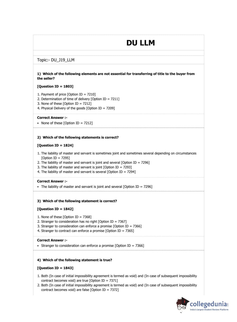 DUET 2019 L.L.M. Question paper with answer key pdf conducted on May 7, 2019 in Shift 2 is available for download. The exam was successfully organized by National Testing Agency (NTA). The question paper comprised a total of 100 questions.