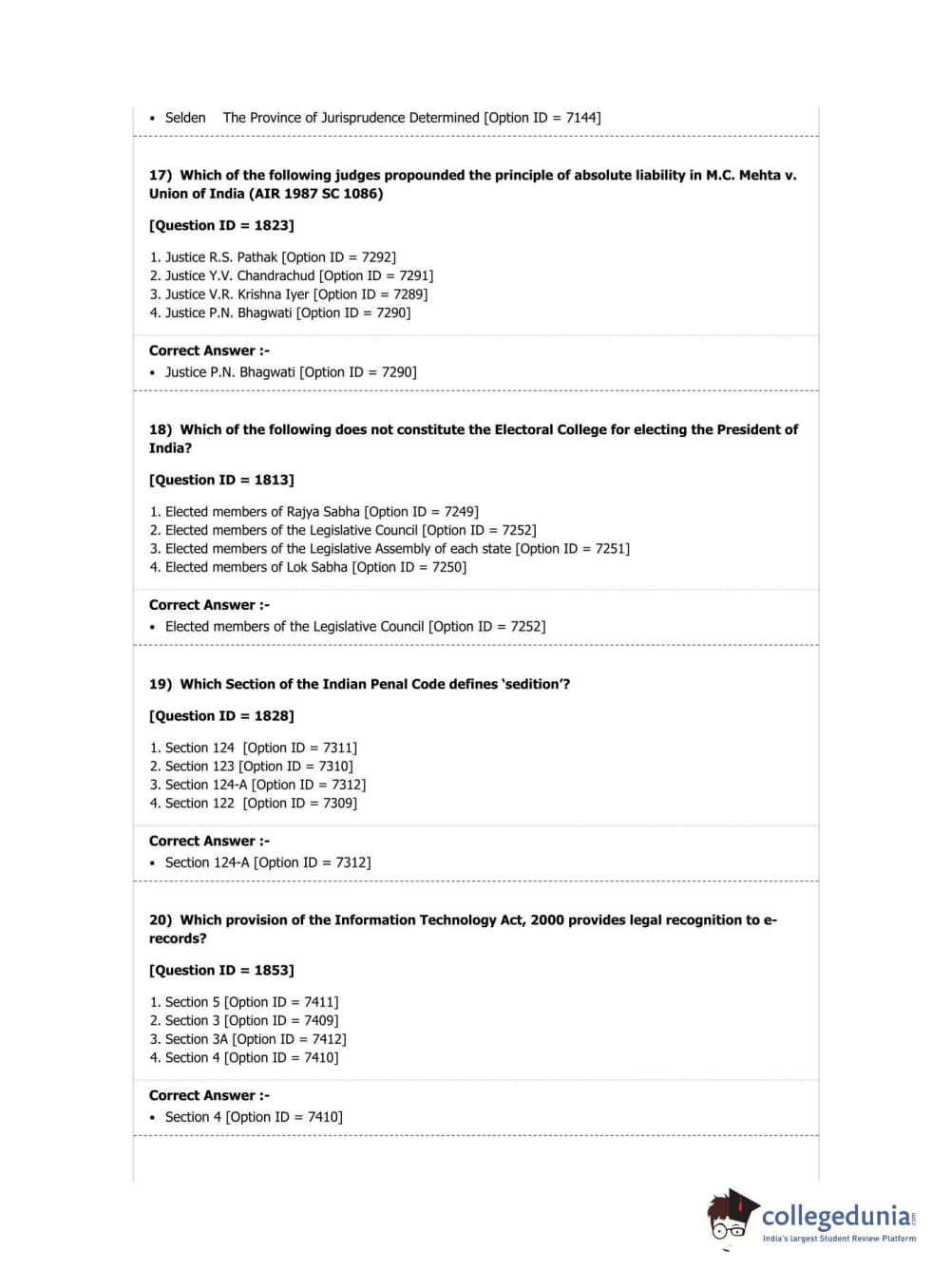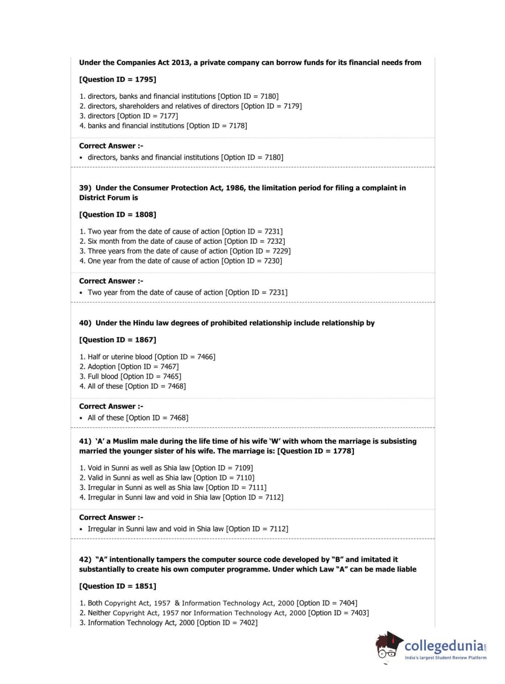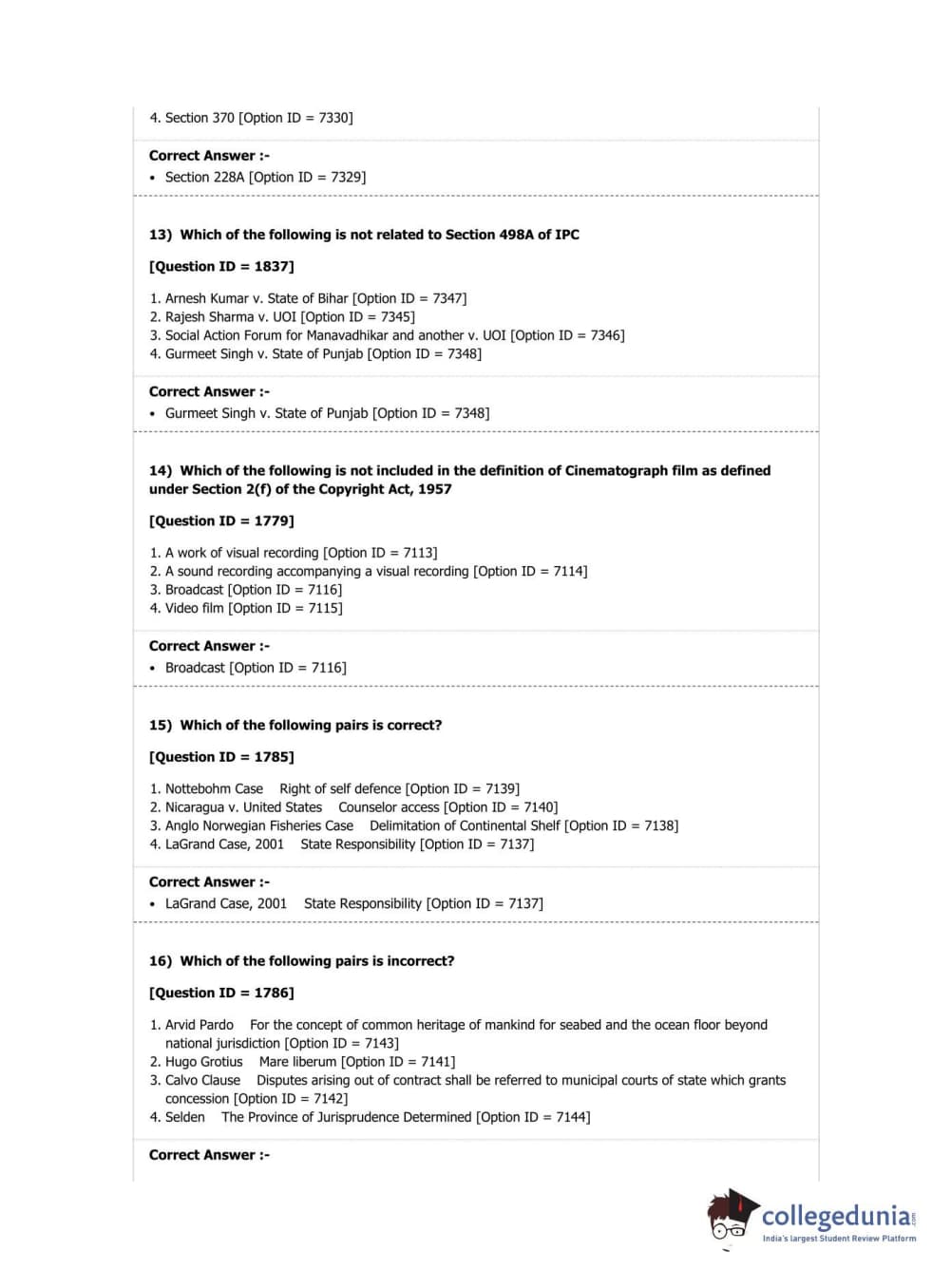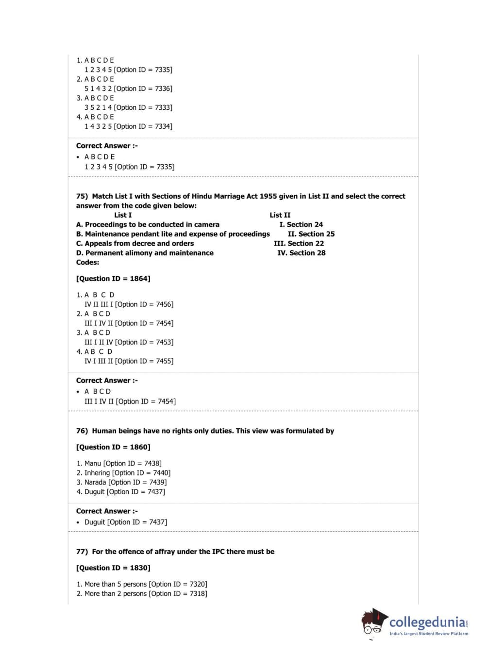 DUET 2019 L.L.M. Question Paper with Answer Key PDF Shift 2