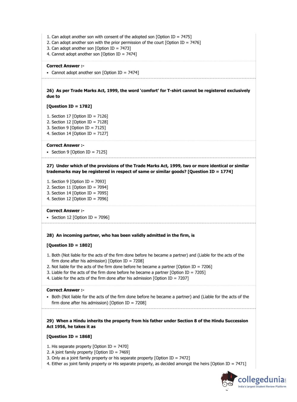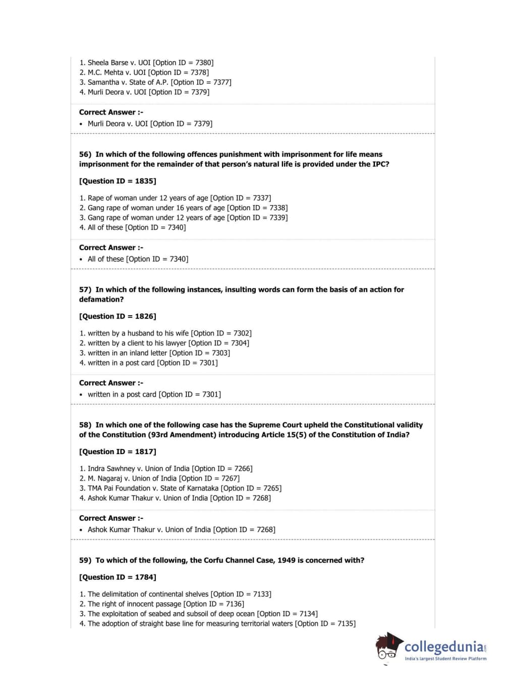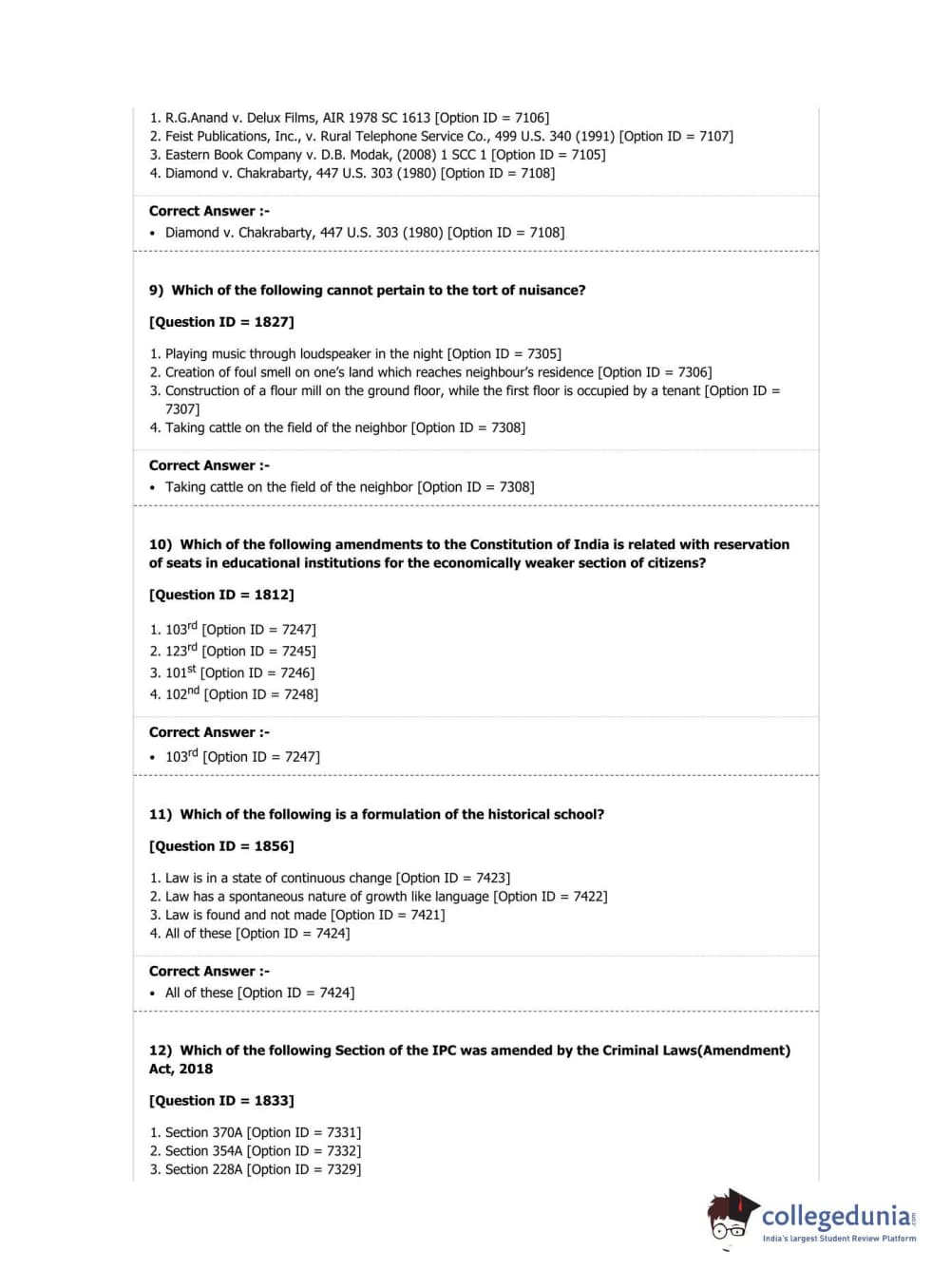 DUET 2019 L.L.M. Question Paper with Answer Key PDF Shift 2