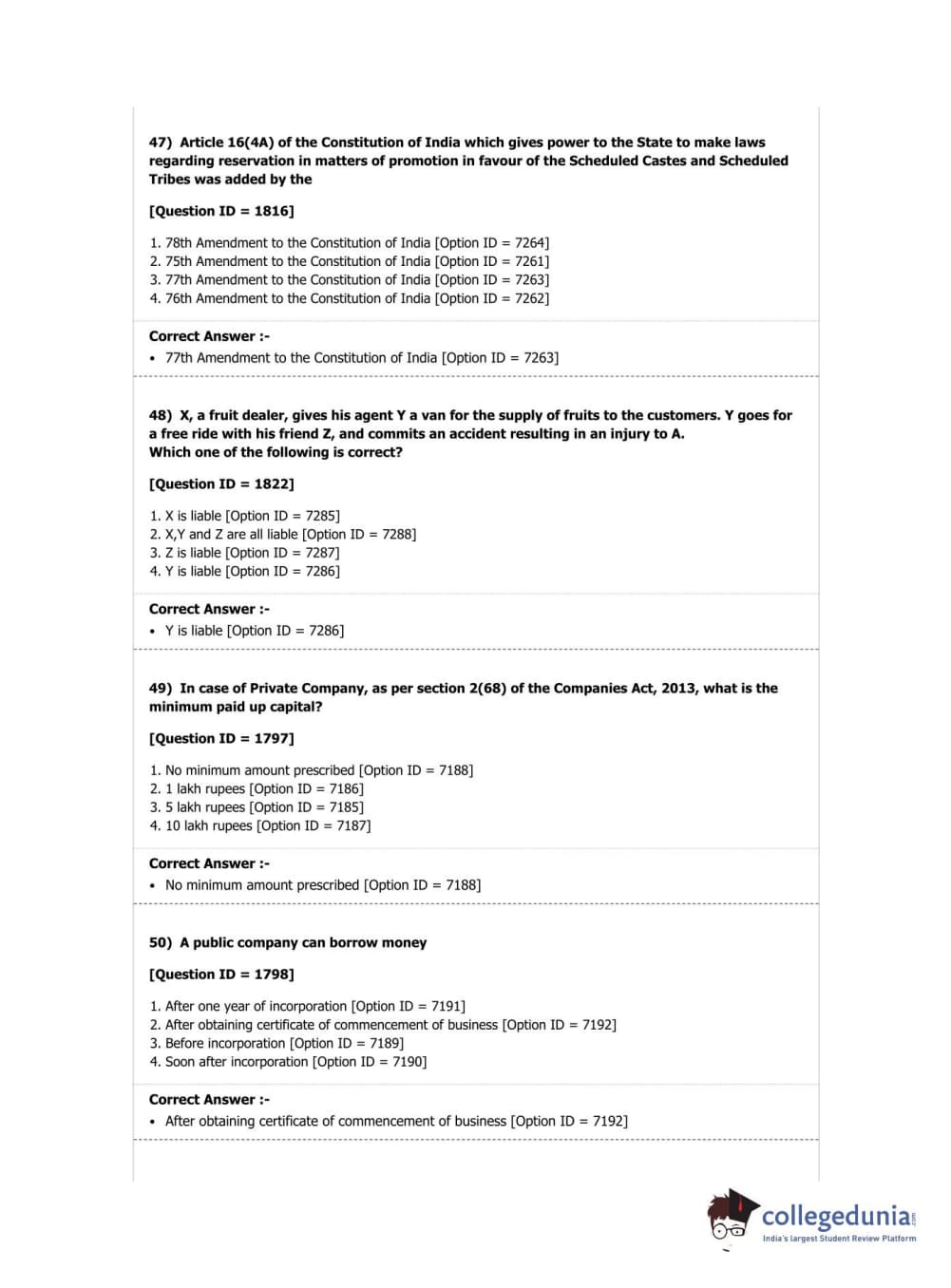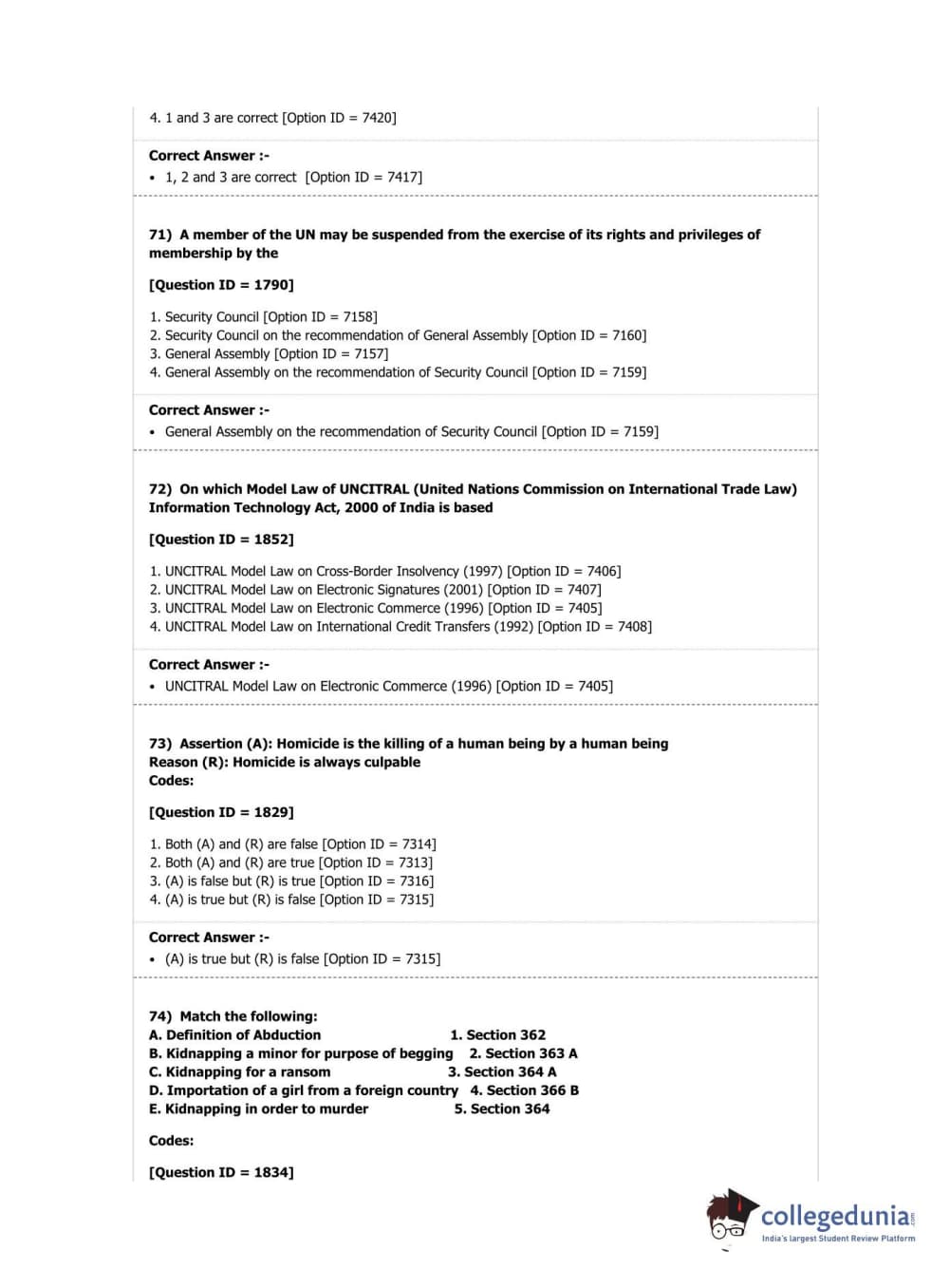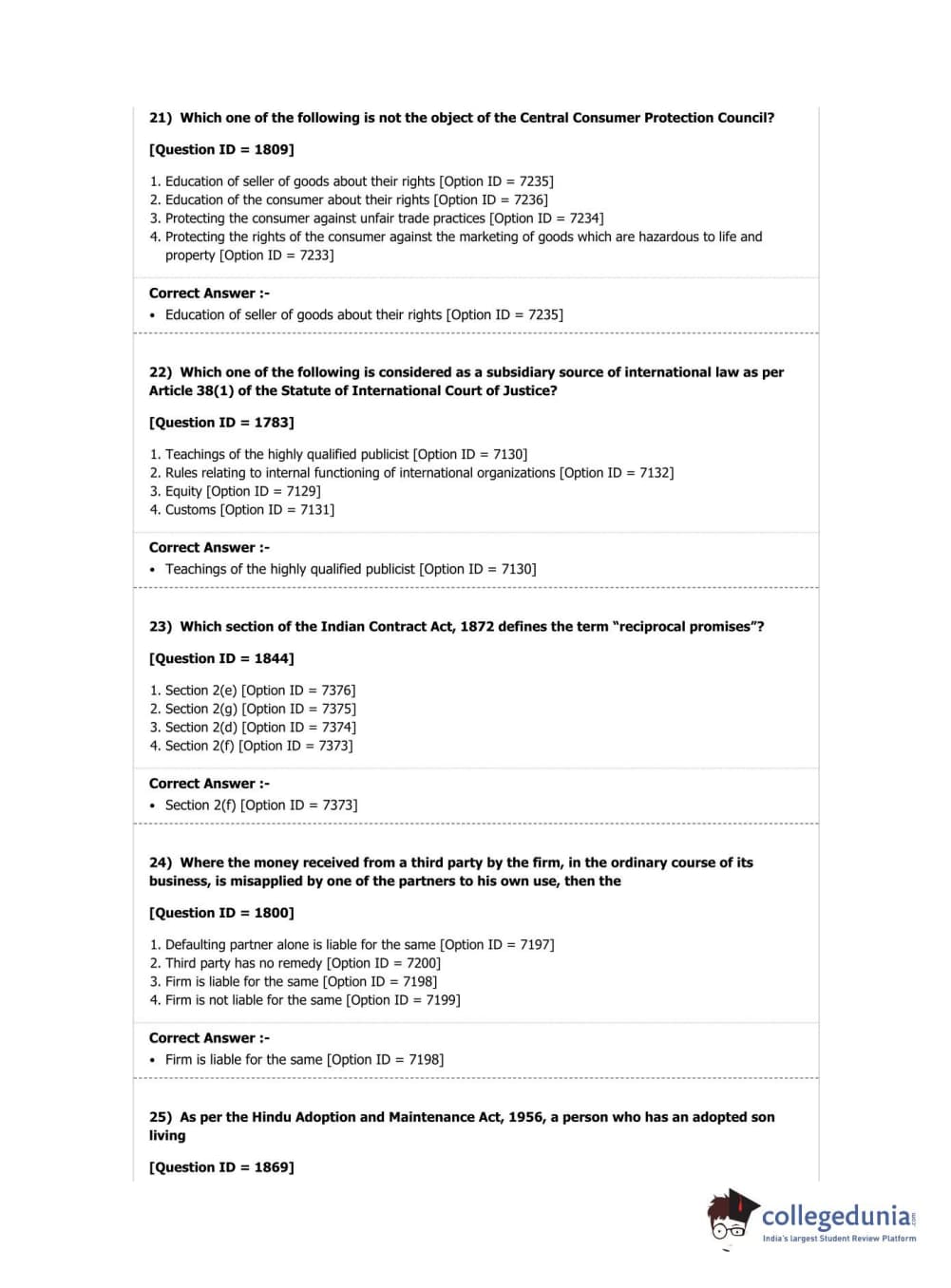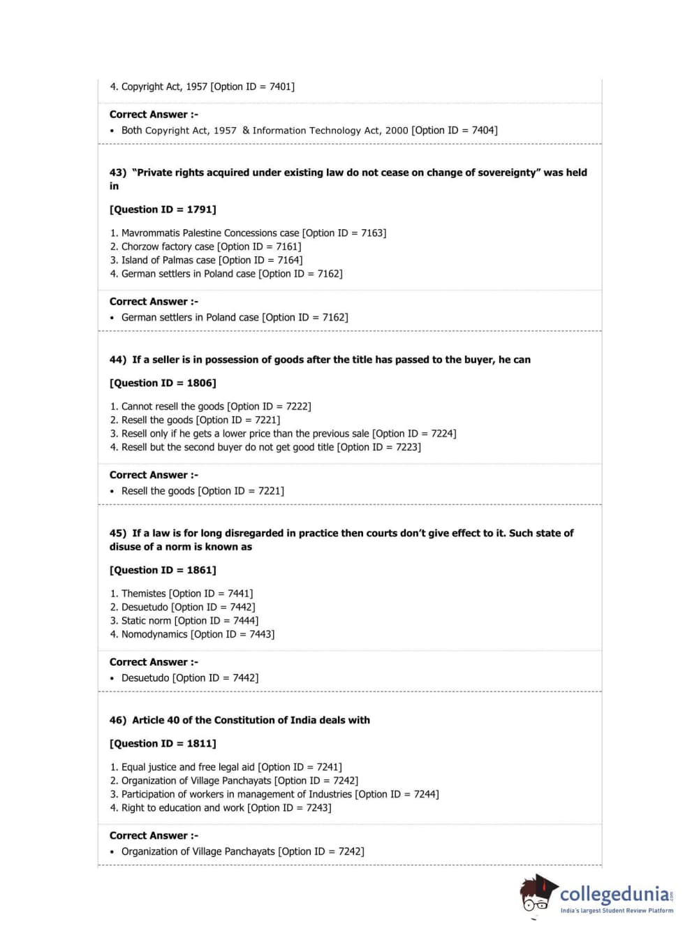 DUET 2019 L.L.M. Question Paper with Answer Key PDF Shift 2