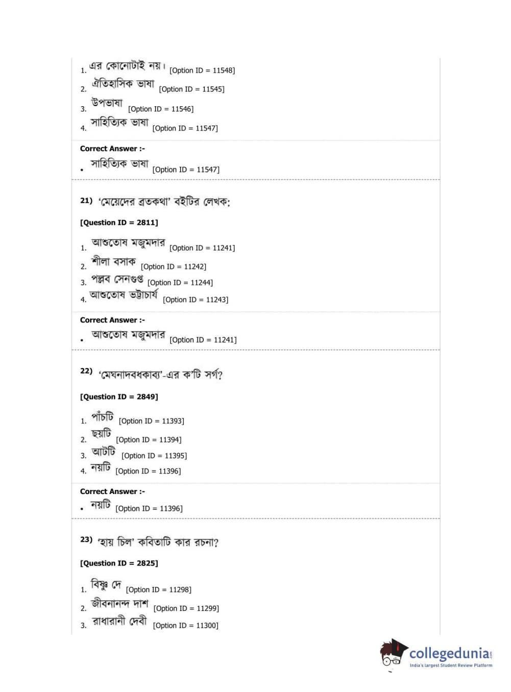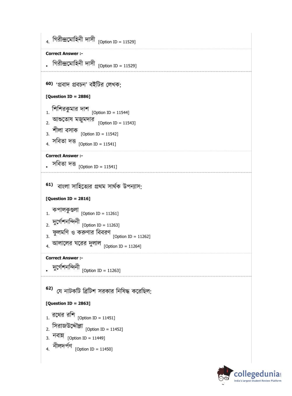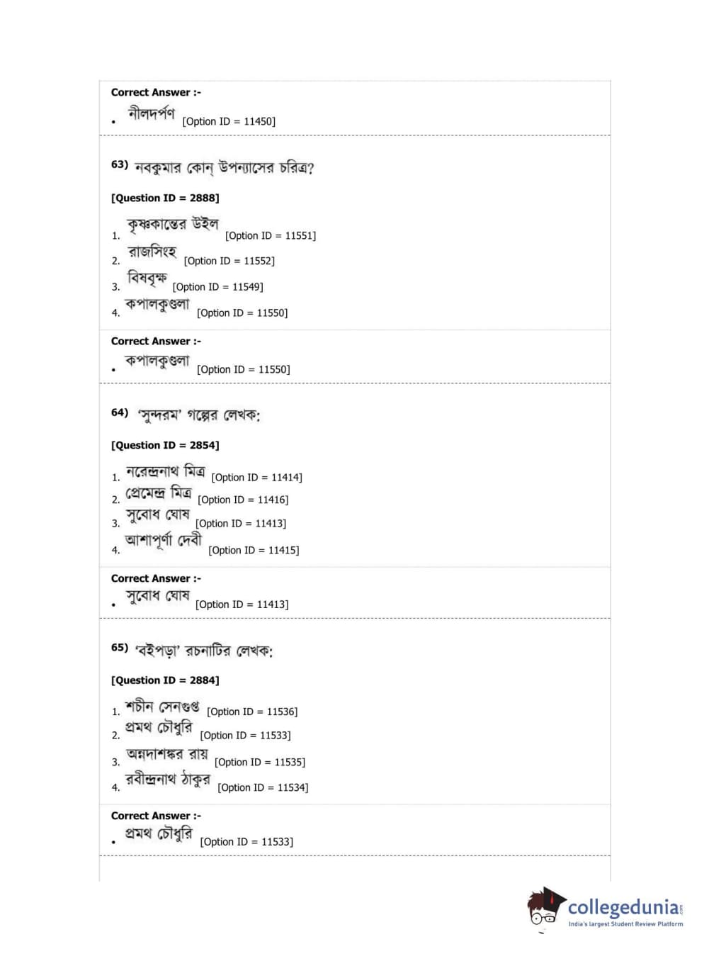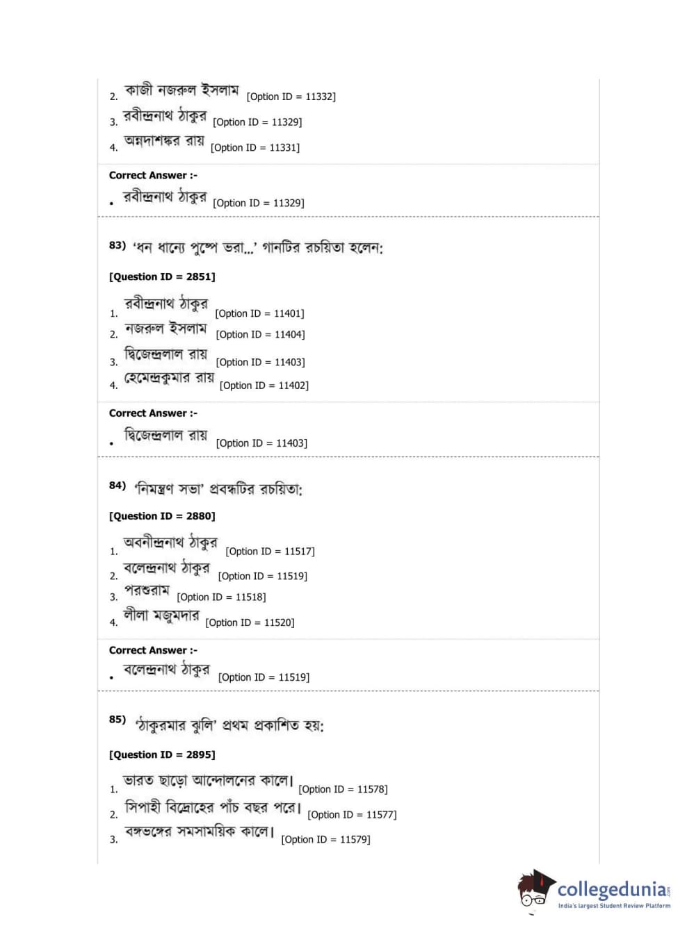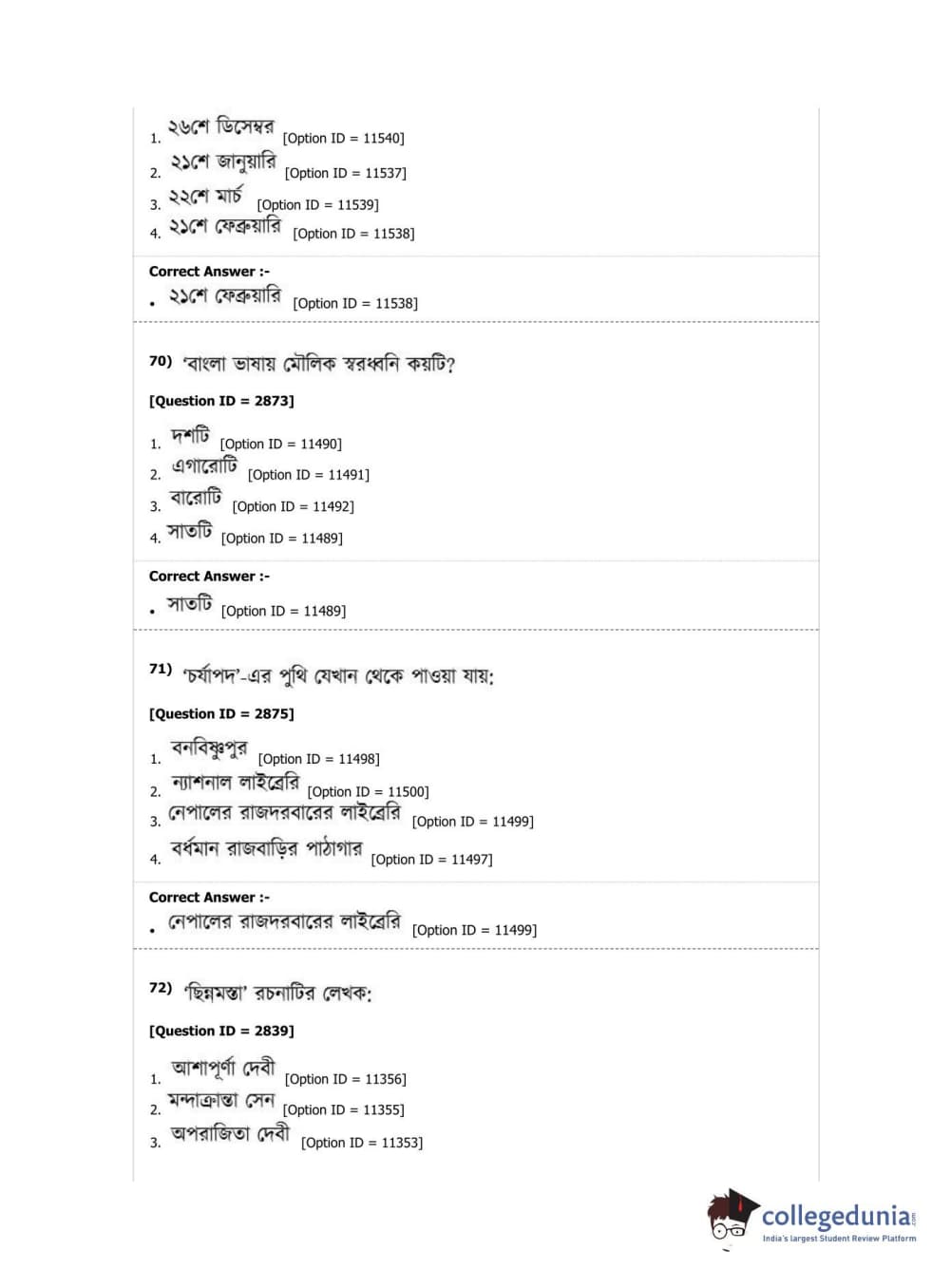 DUET 2019 M.A. Bengali Question Paper with Answer Key PDF Shift 2