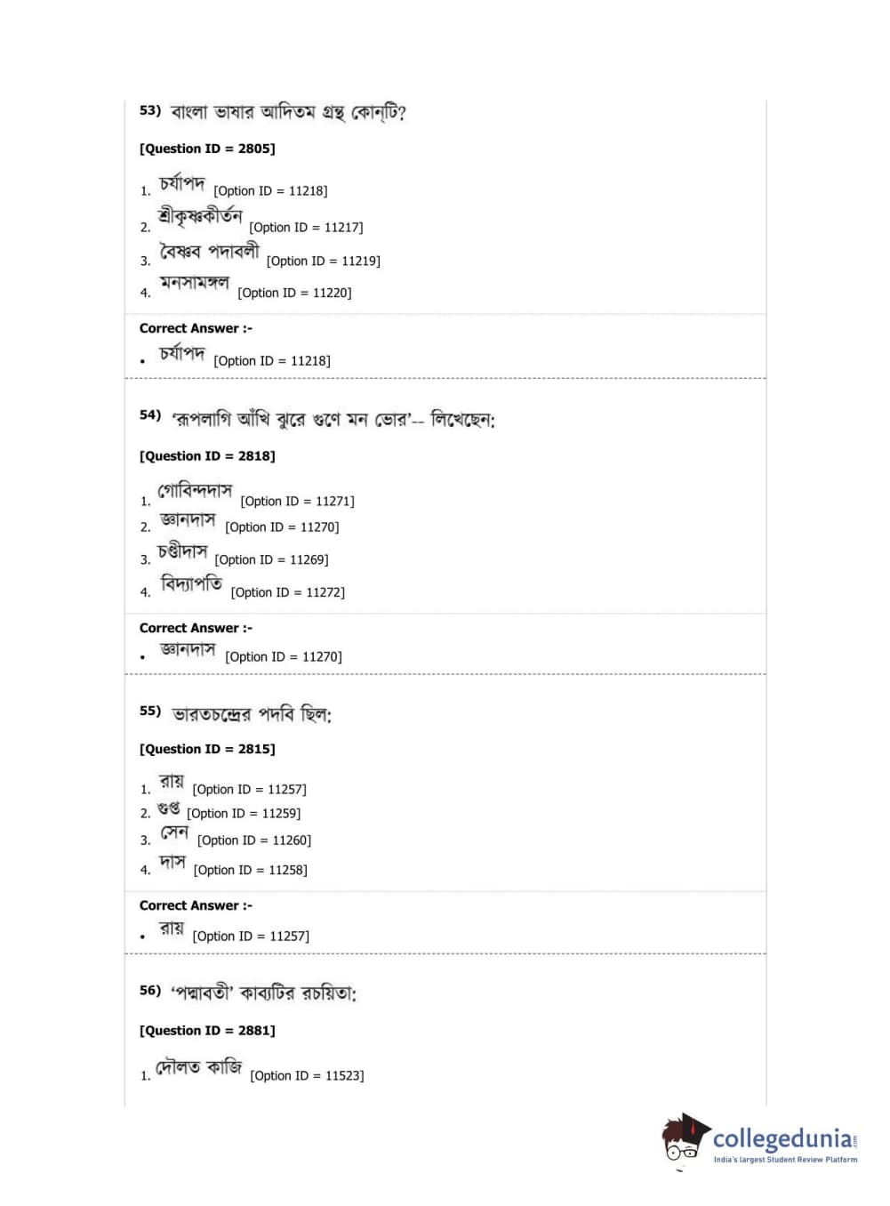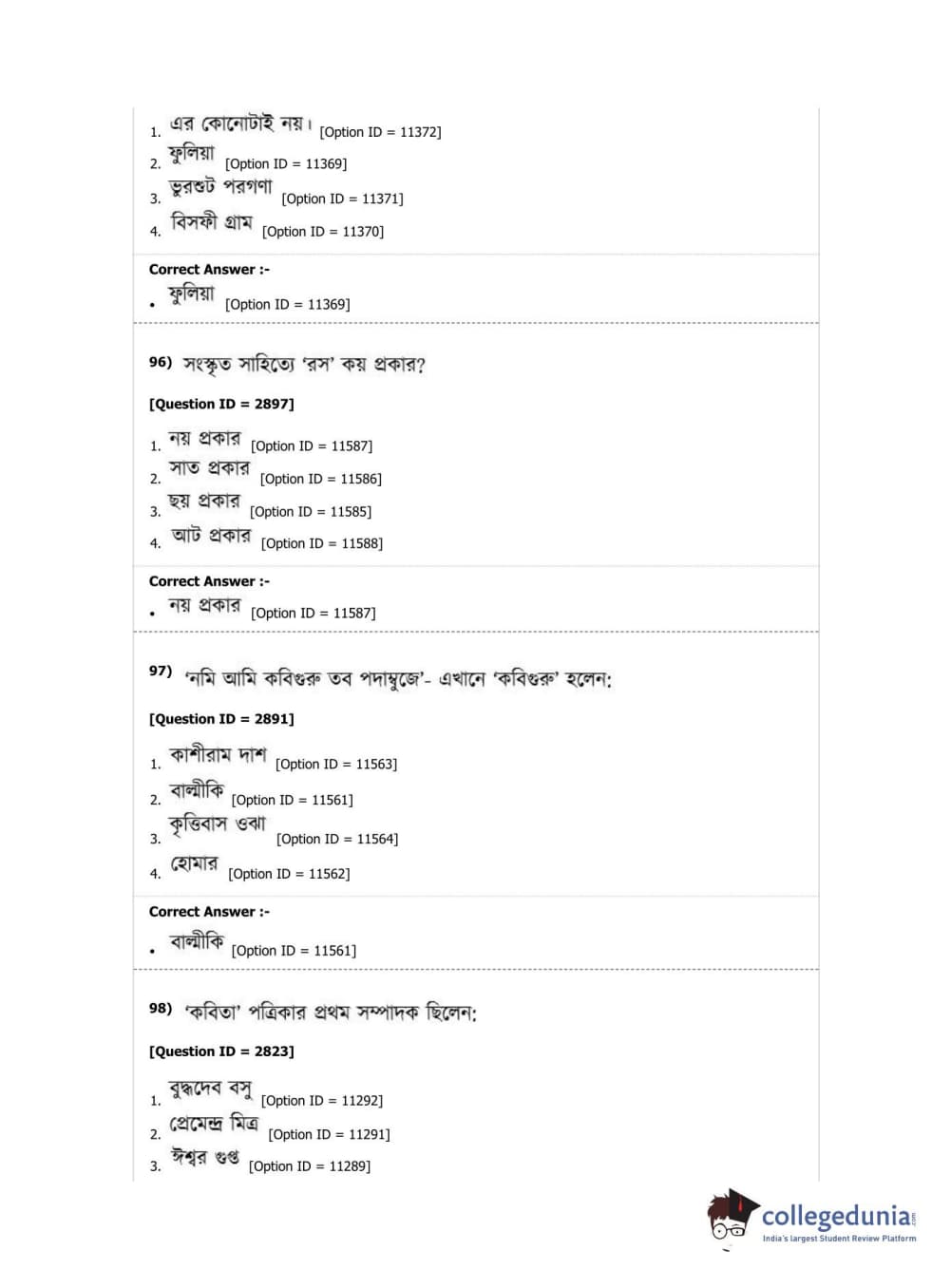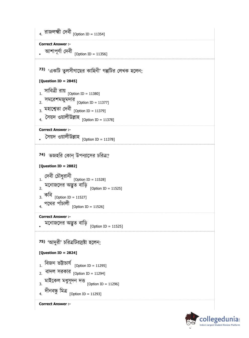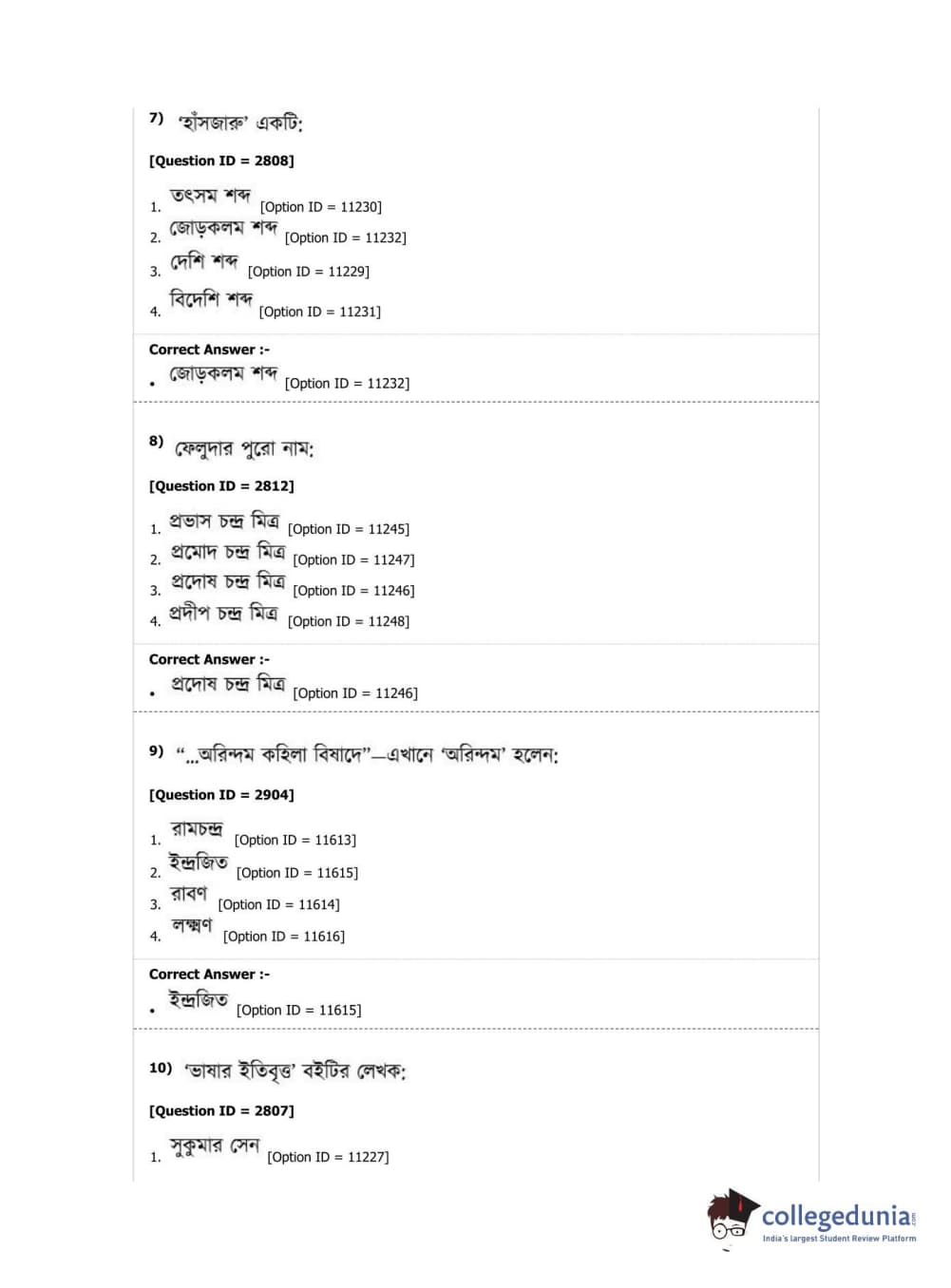 DUET 2019 M.A. Bengali Question Paper with Answer Key PDF Shift 2