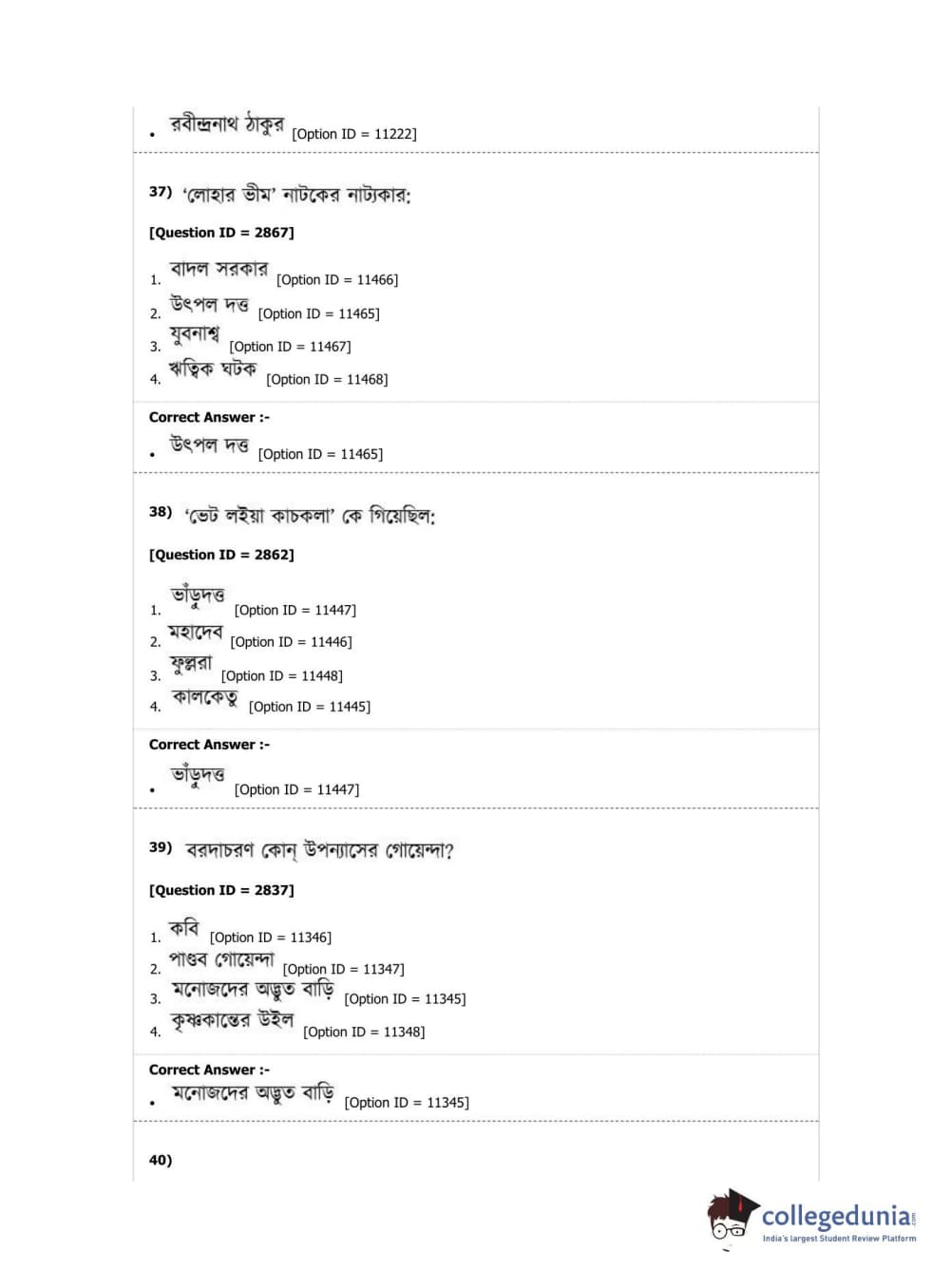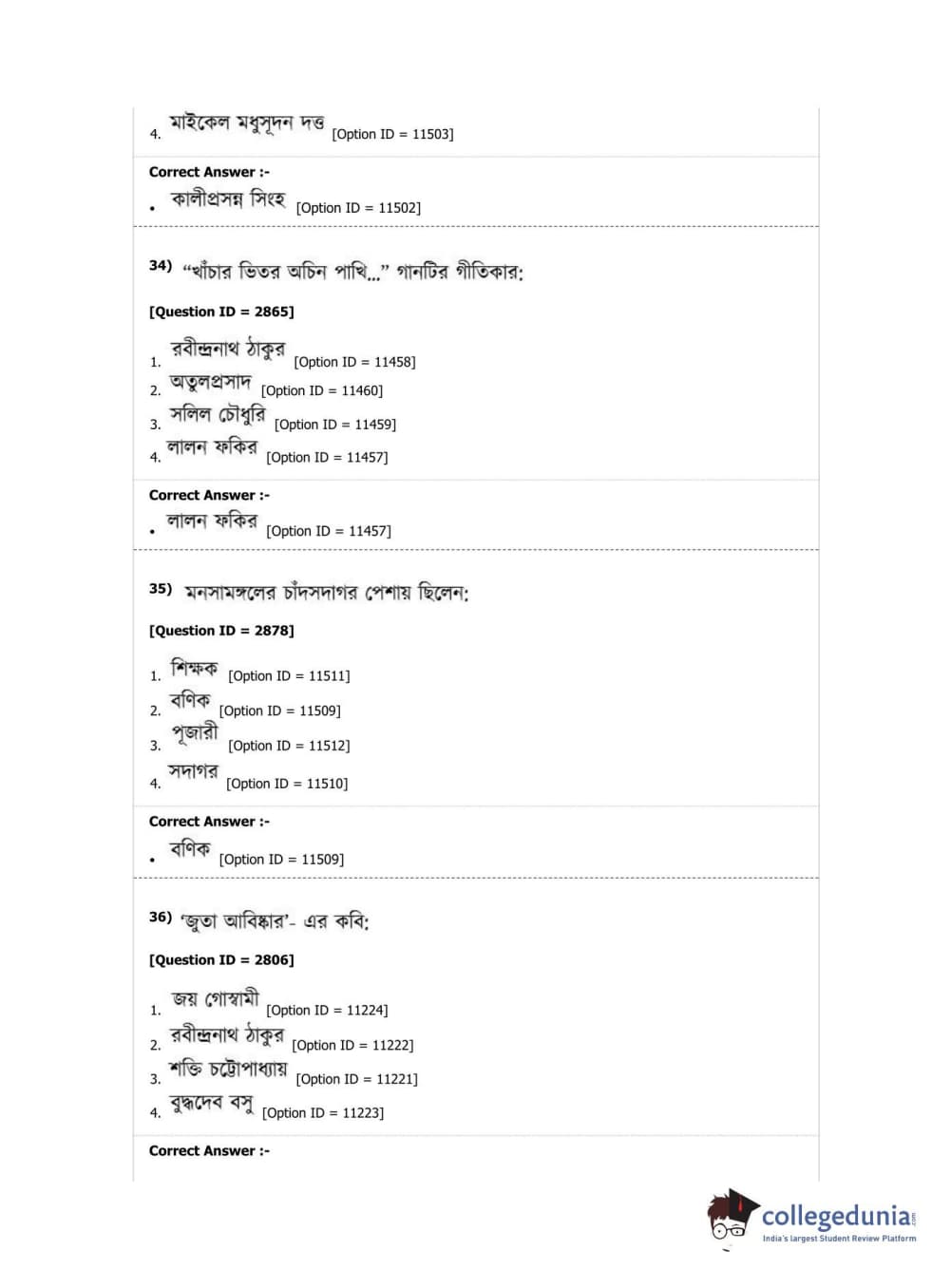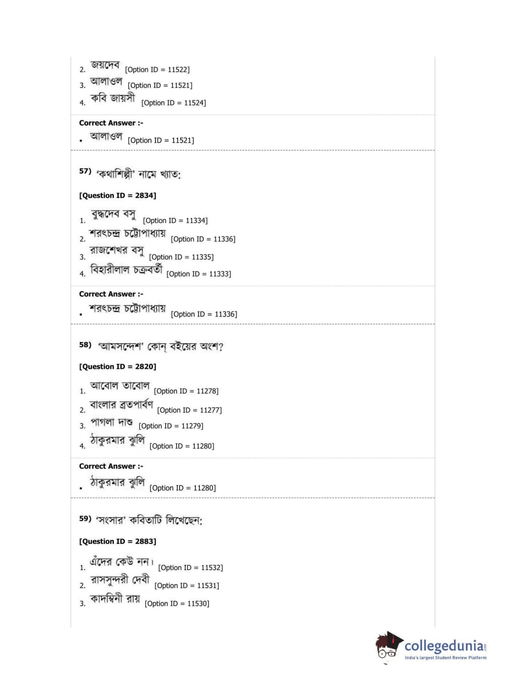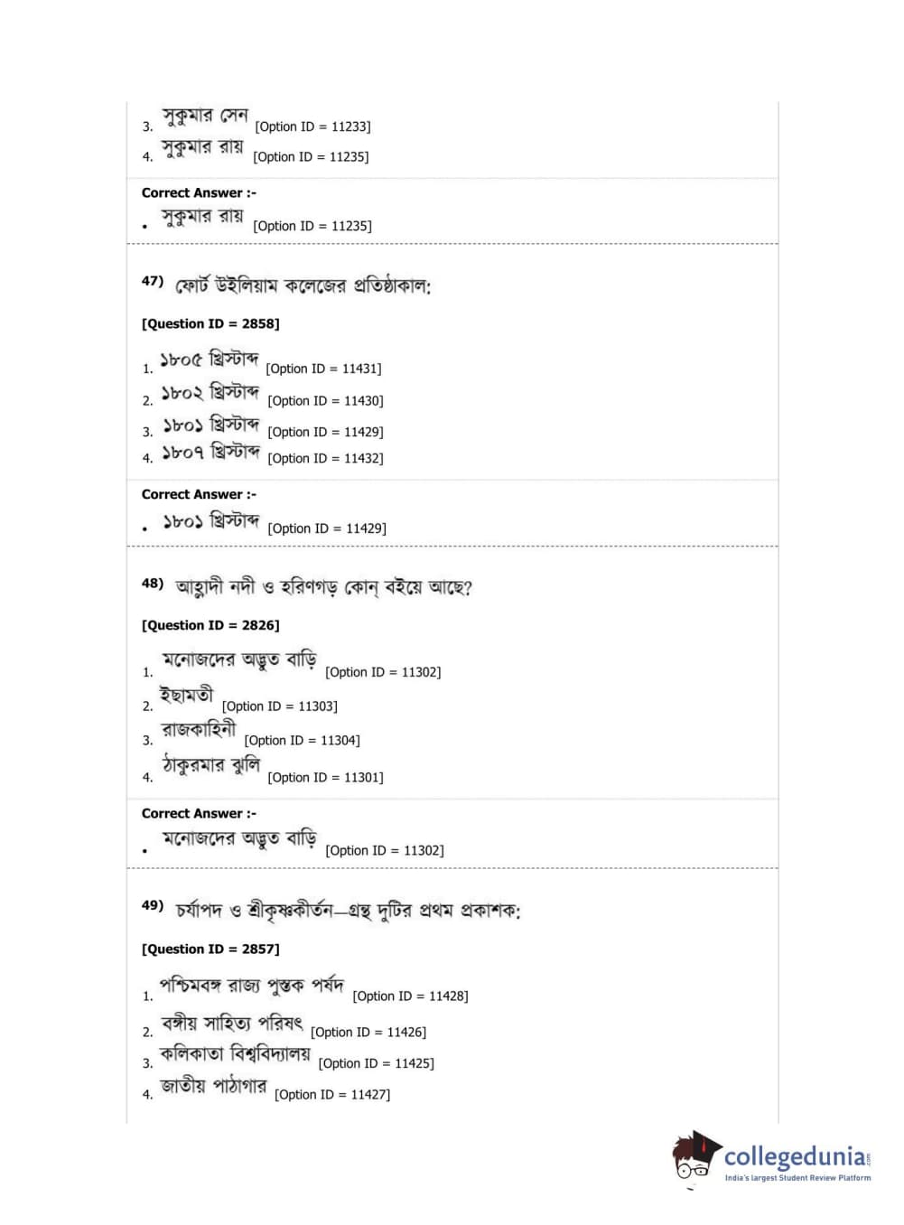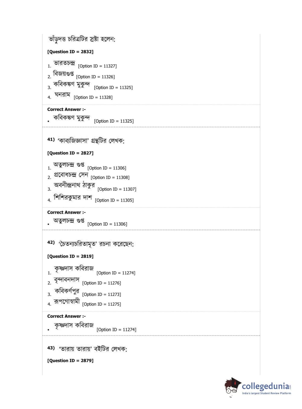DUET 2019 M.A. Bengali Question Paper with Answer Key PDF Shift 2