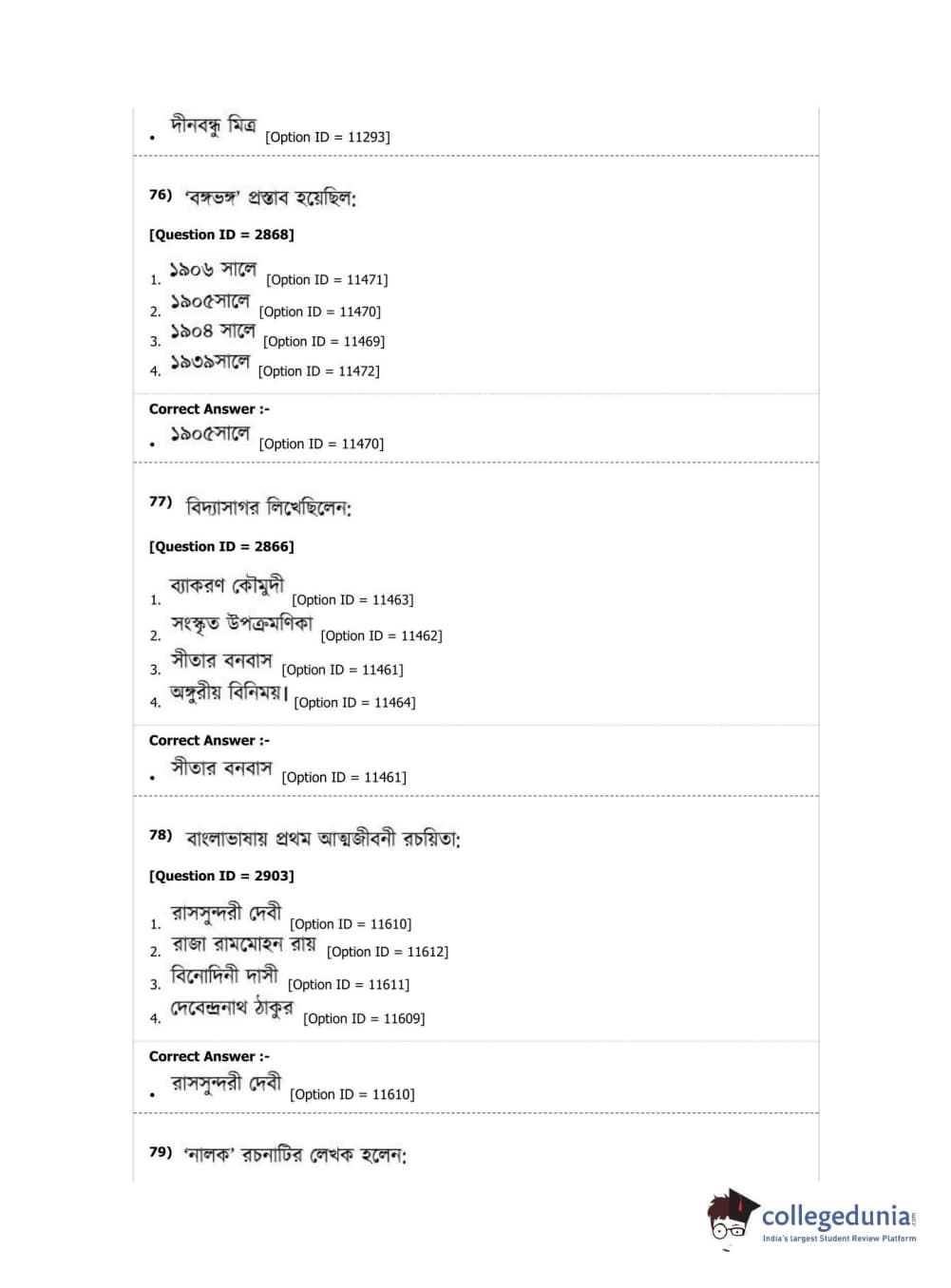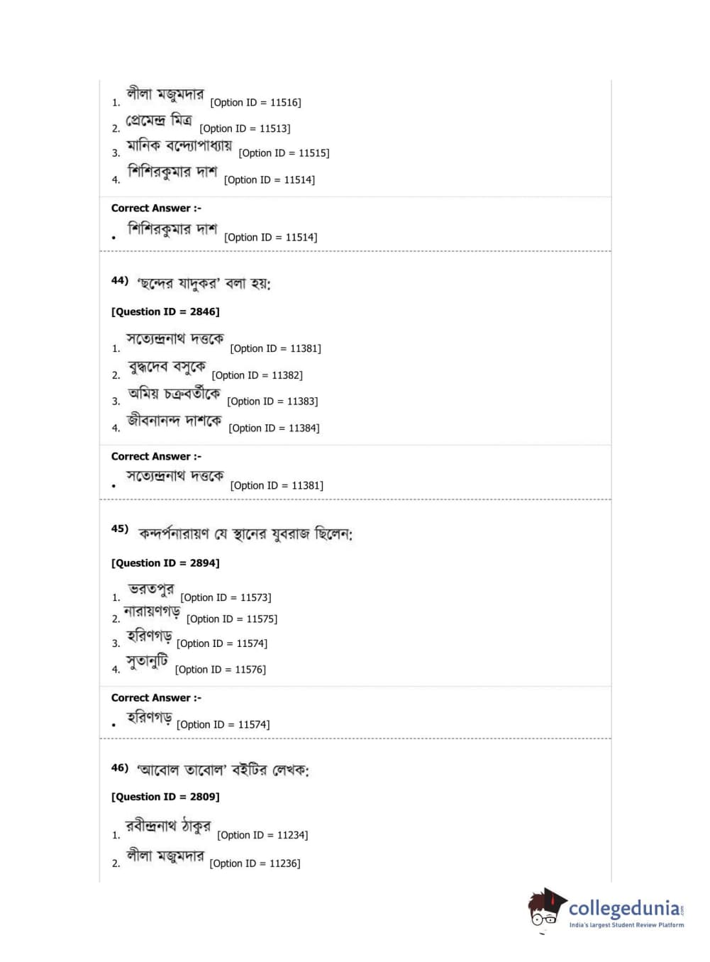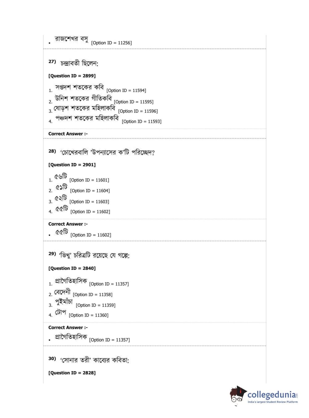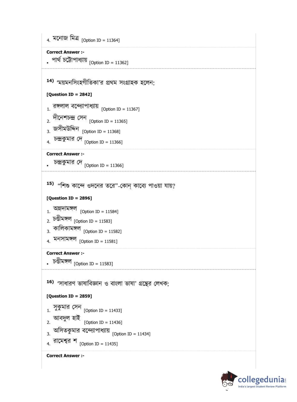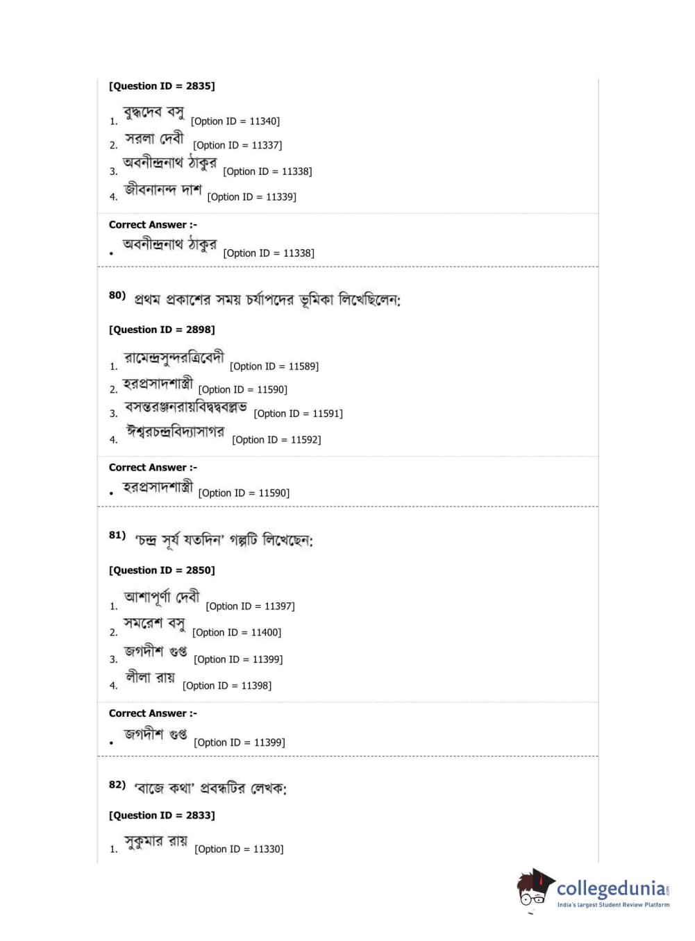 DUET 2019 M.A. Bengali Question Paper with Answer Key PDF Shift 2