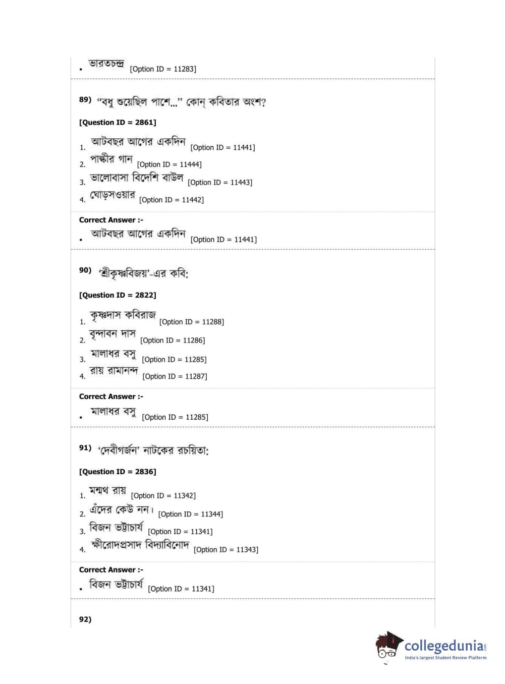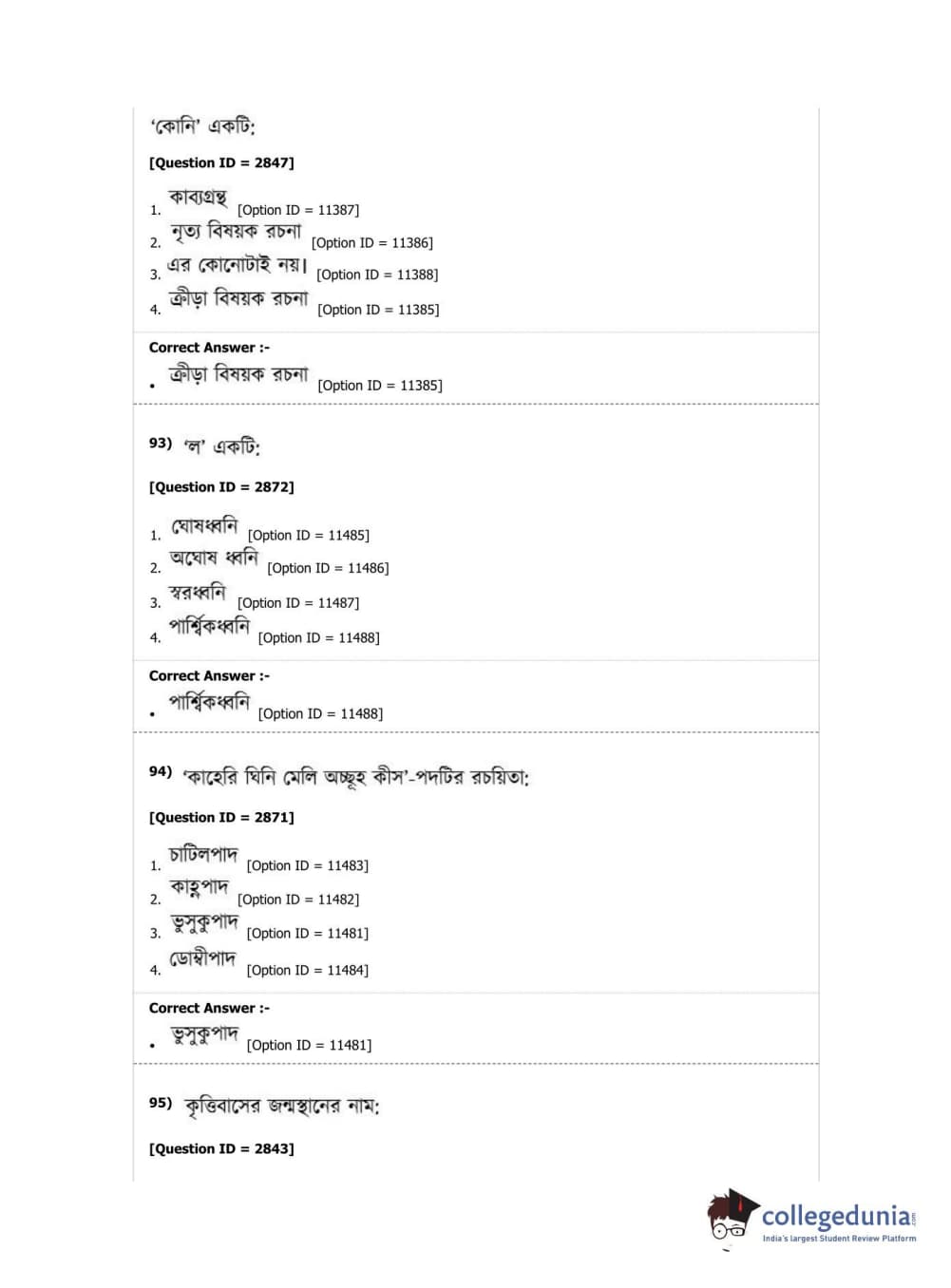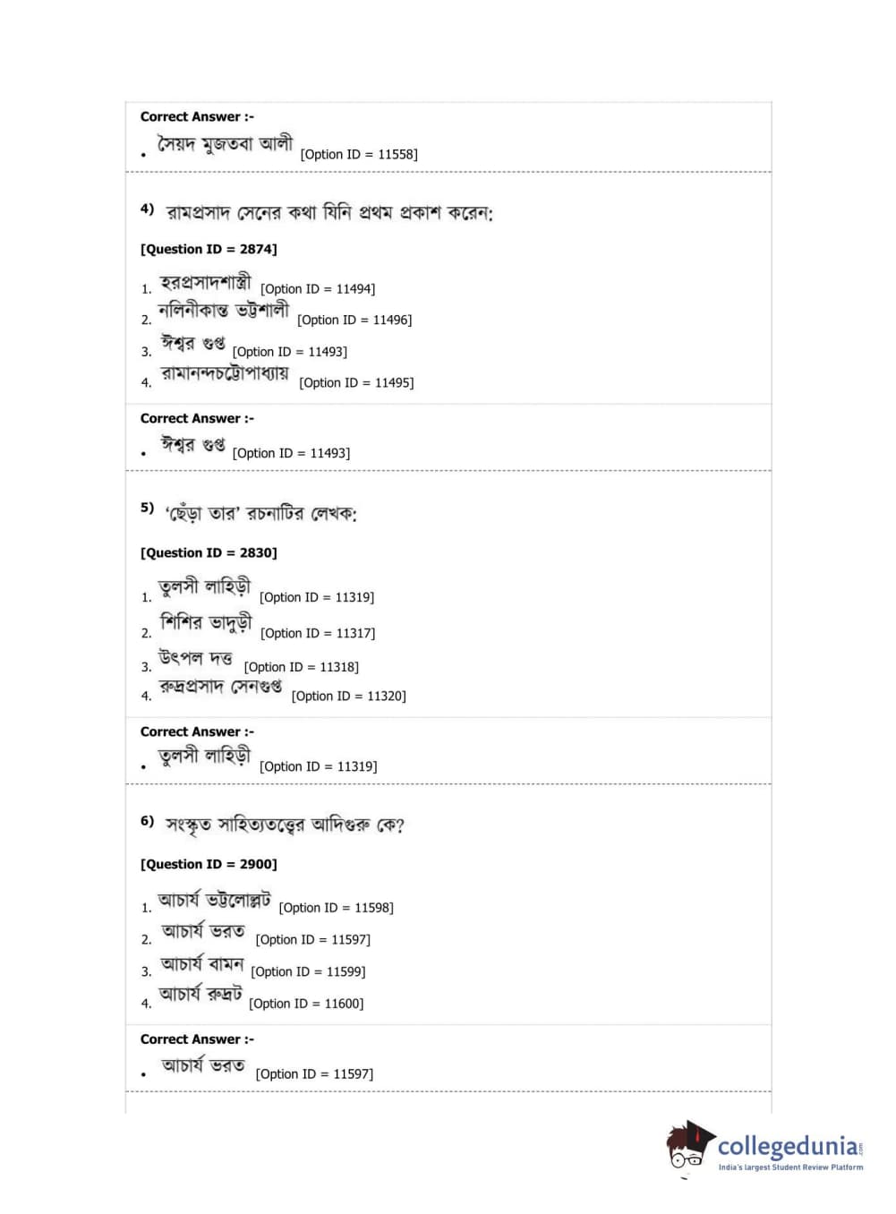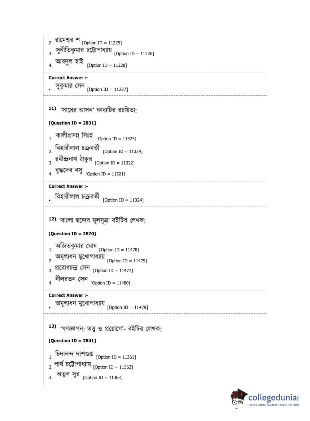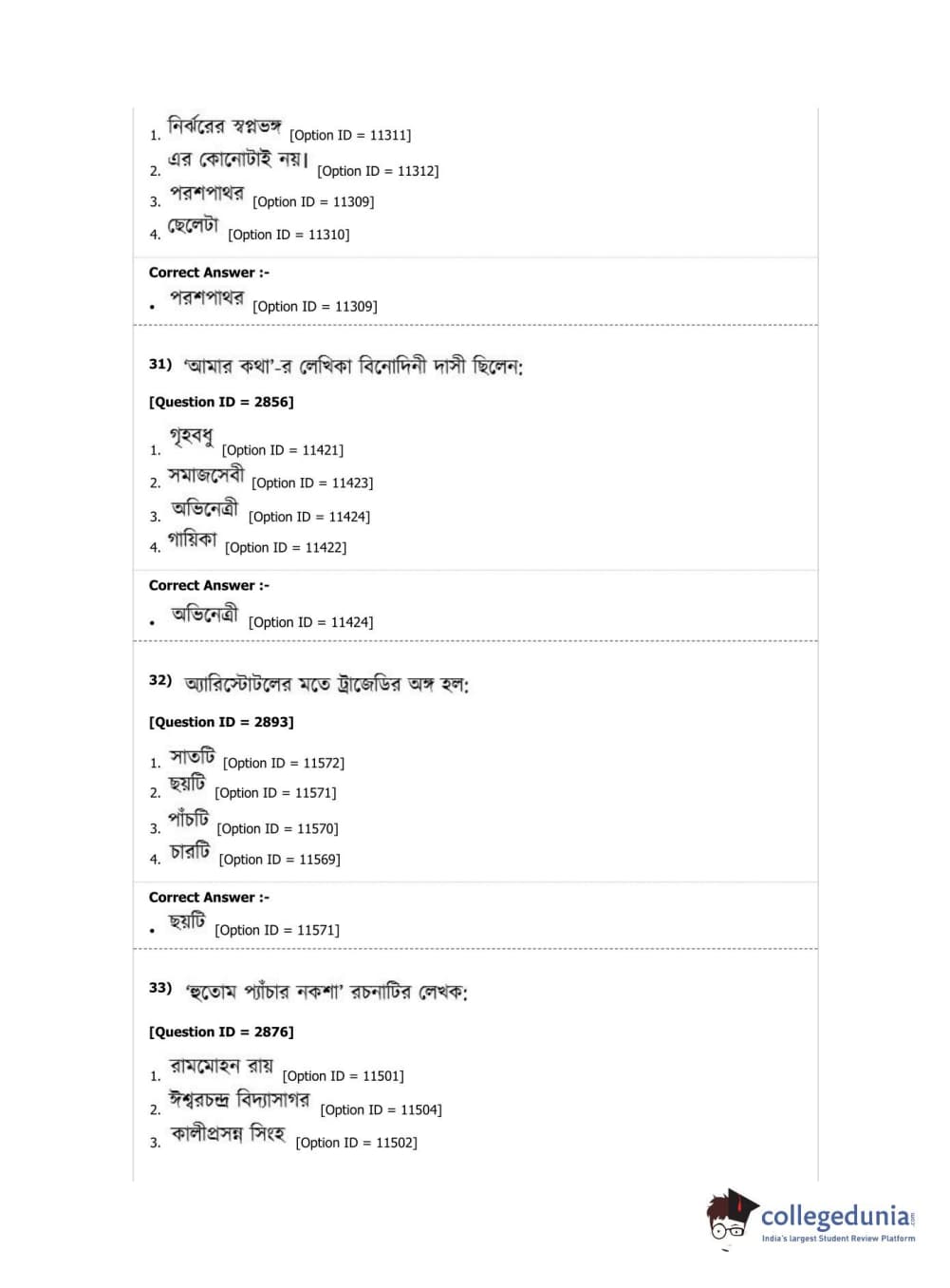DUET 2019 M.A. Bengali Question Paper with Answer Key PDF Shift 2