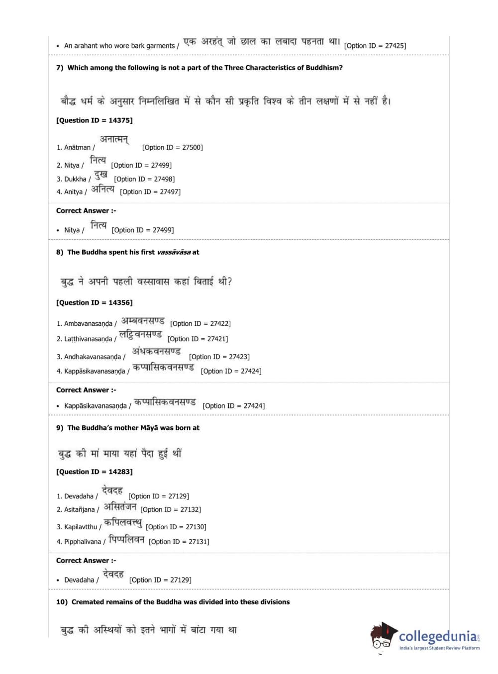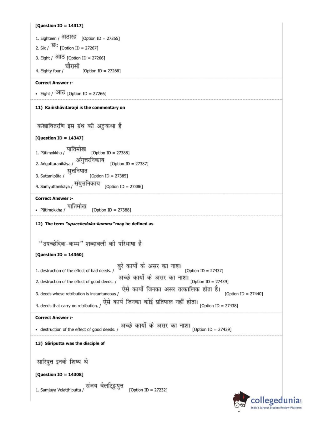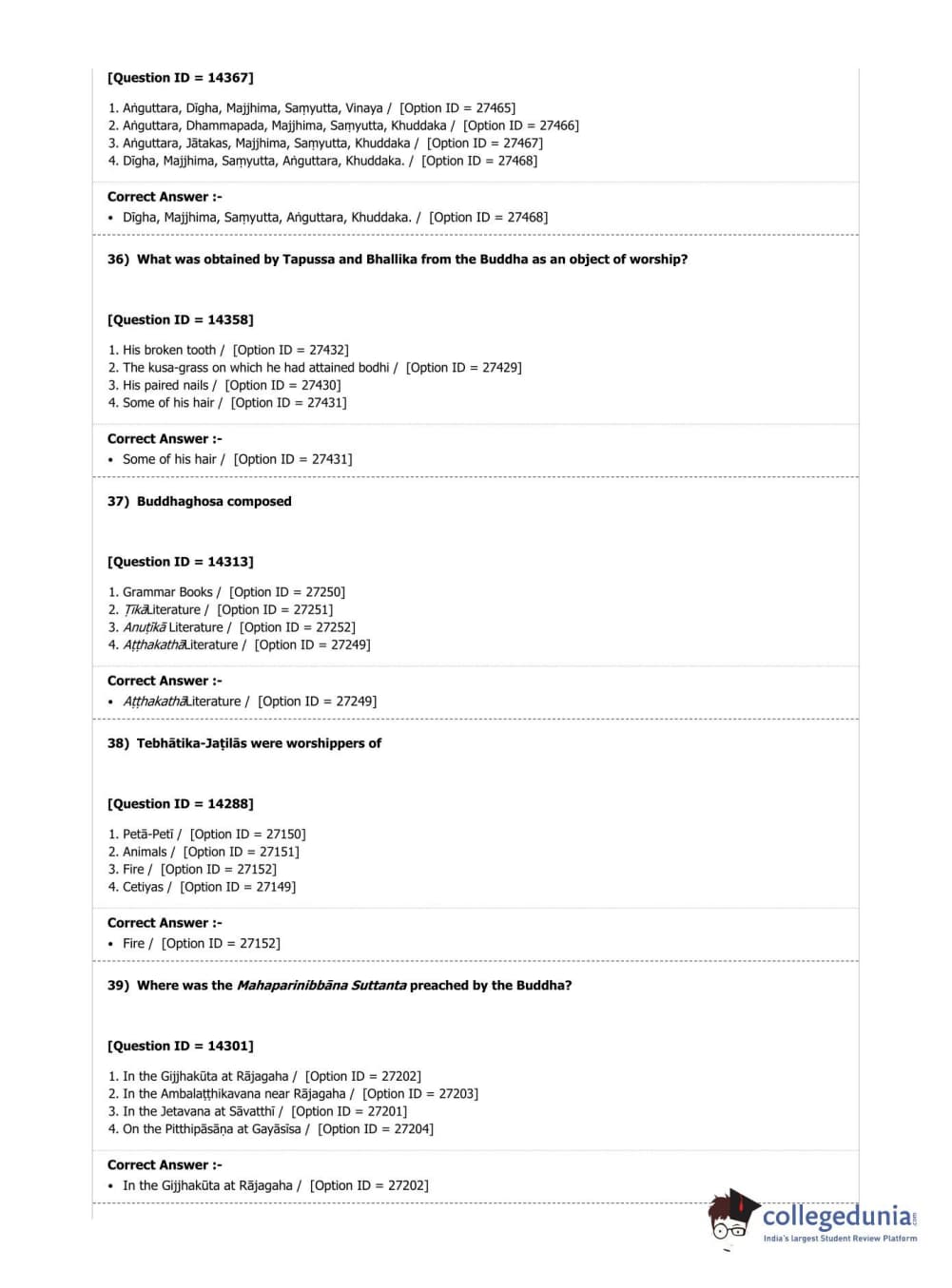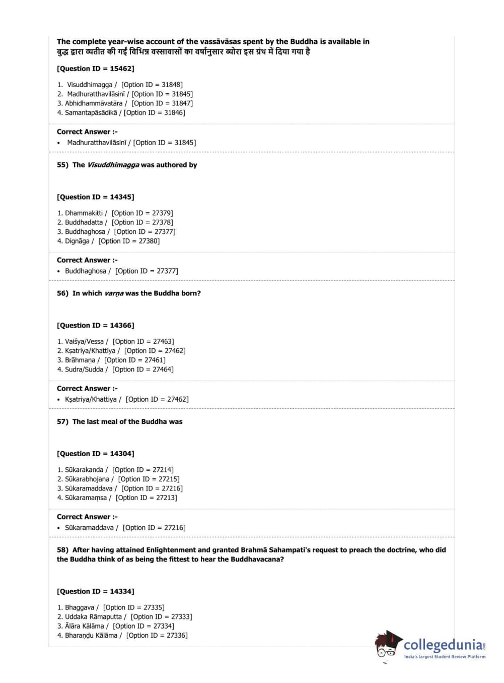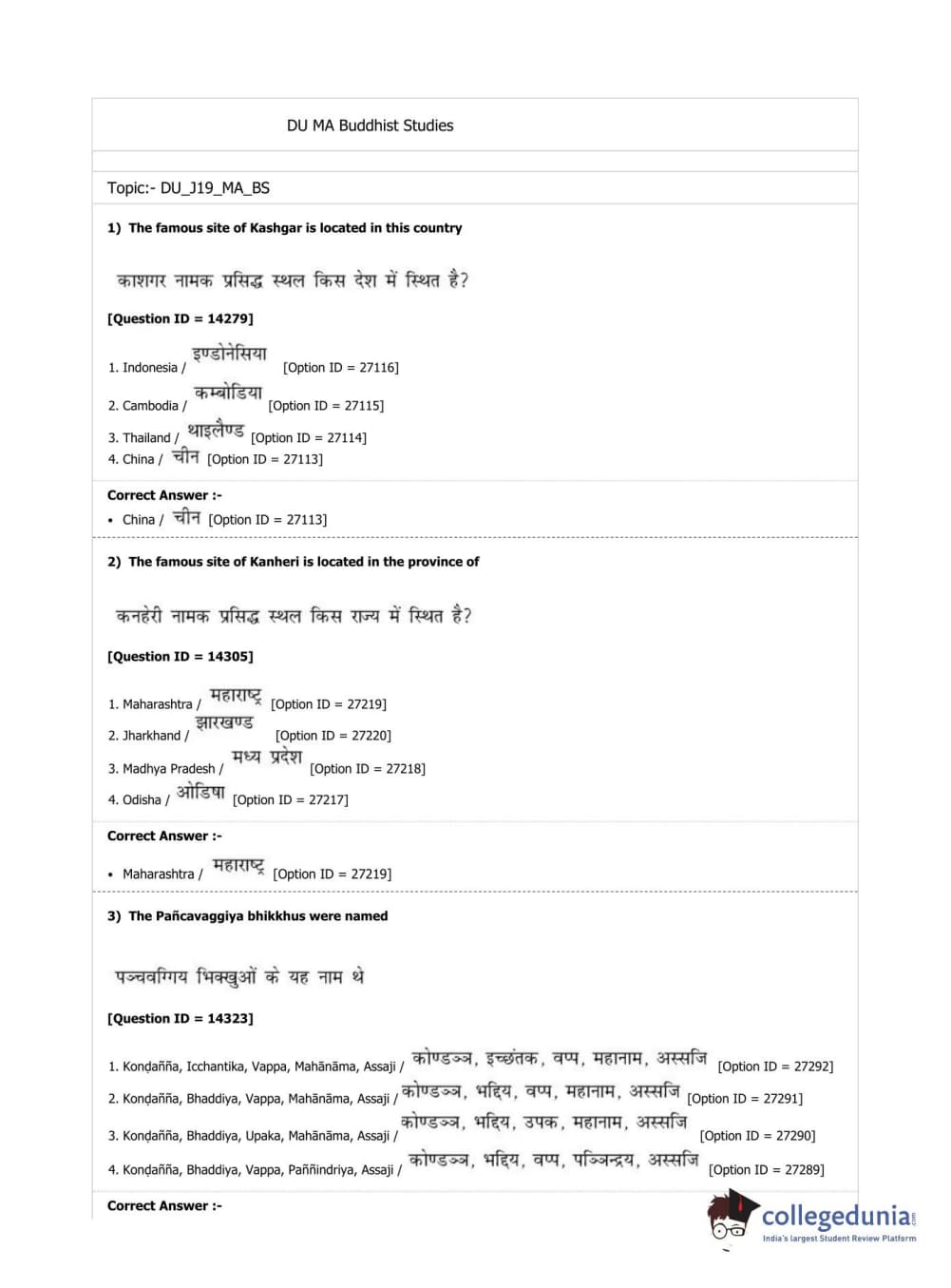 DUET 2019 M.A. Buddhist Studies Question Paper with Answer Key PDF Shift 2