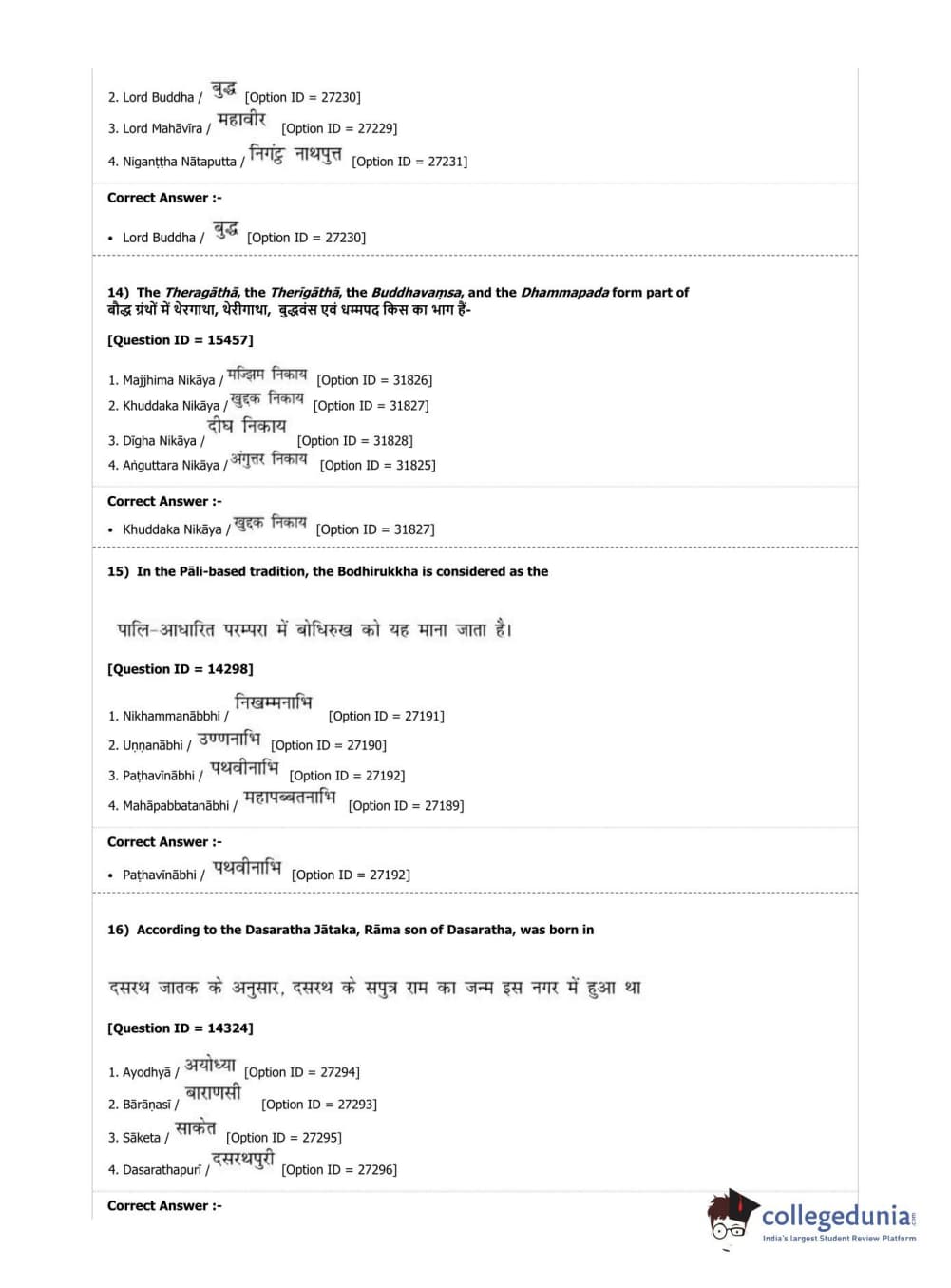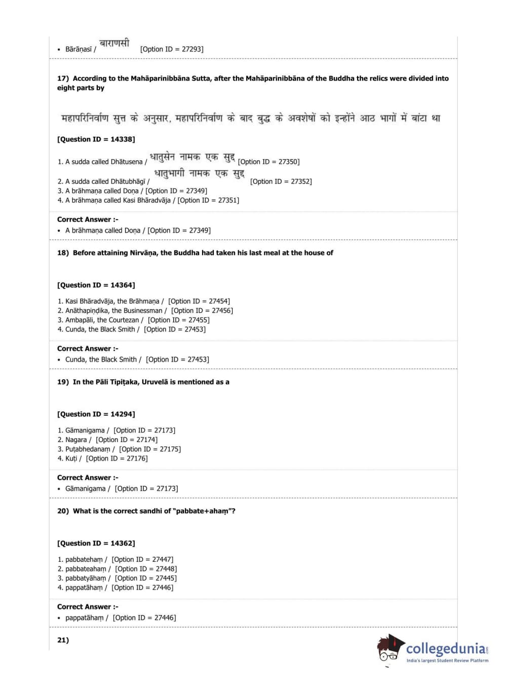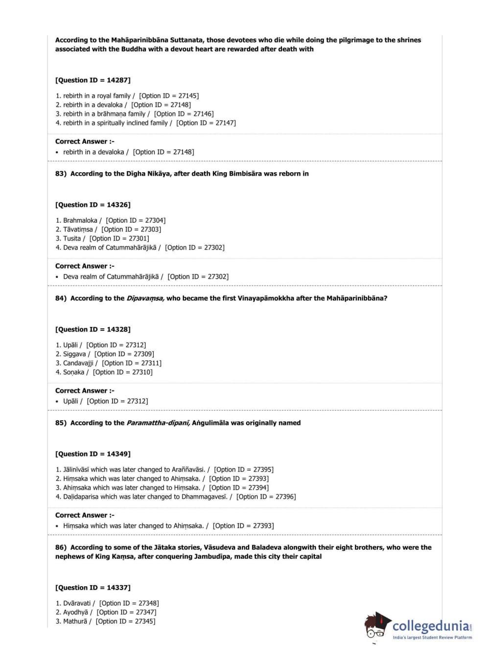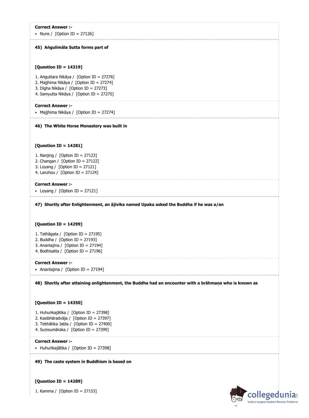 DUET 2019 M.A. Buddhist Studies Question Paper with Answer Key PDF Shift 2