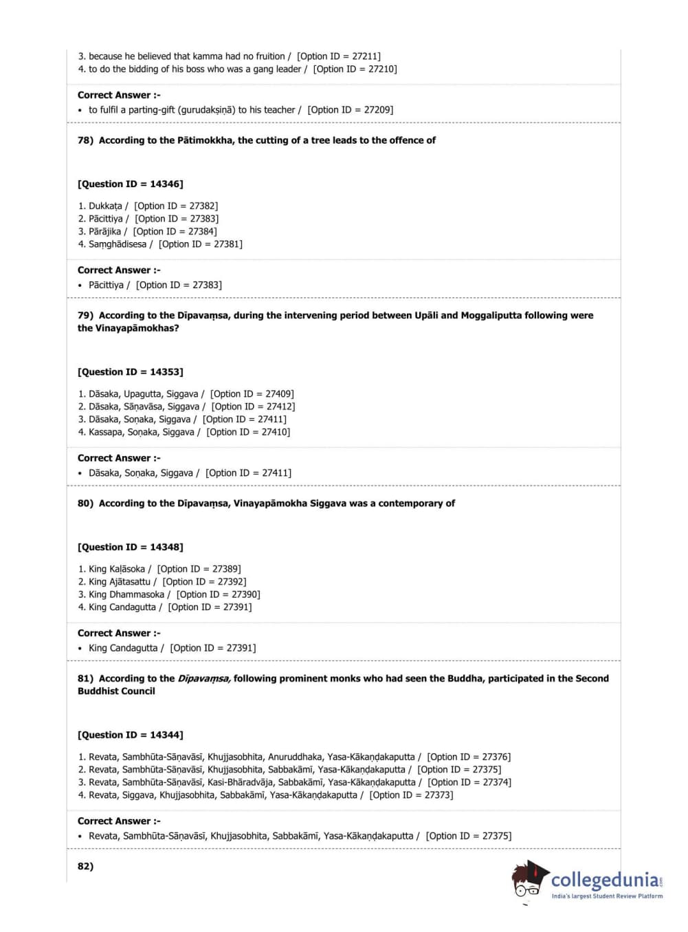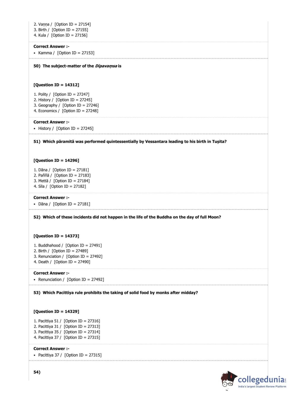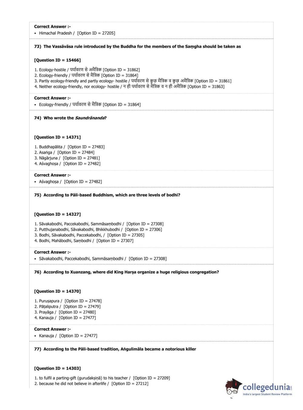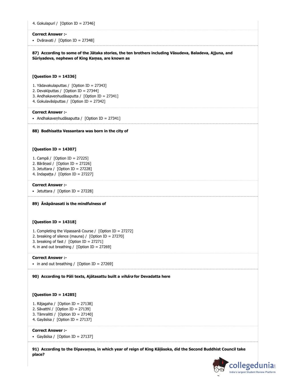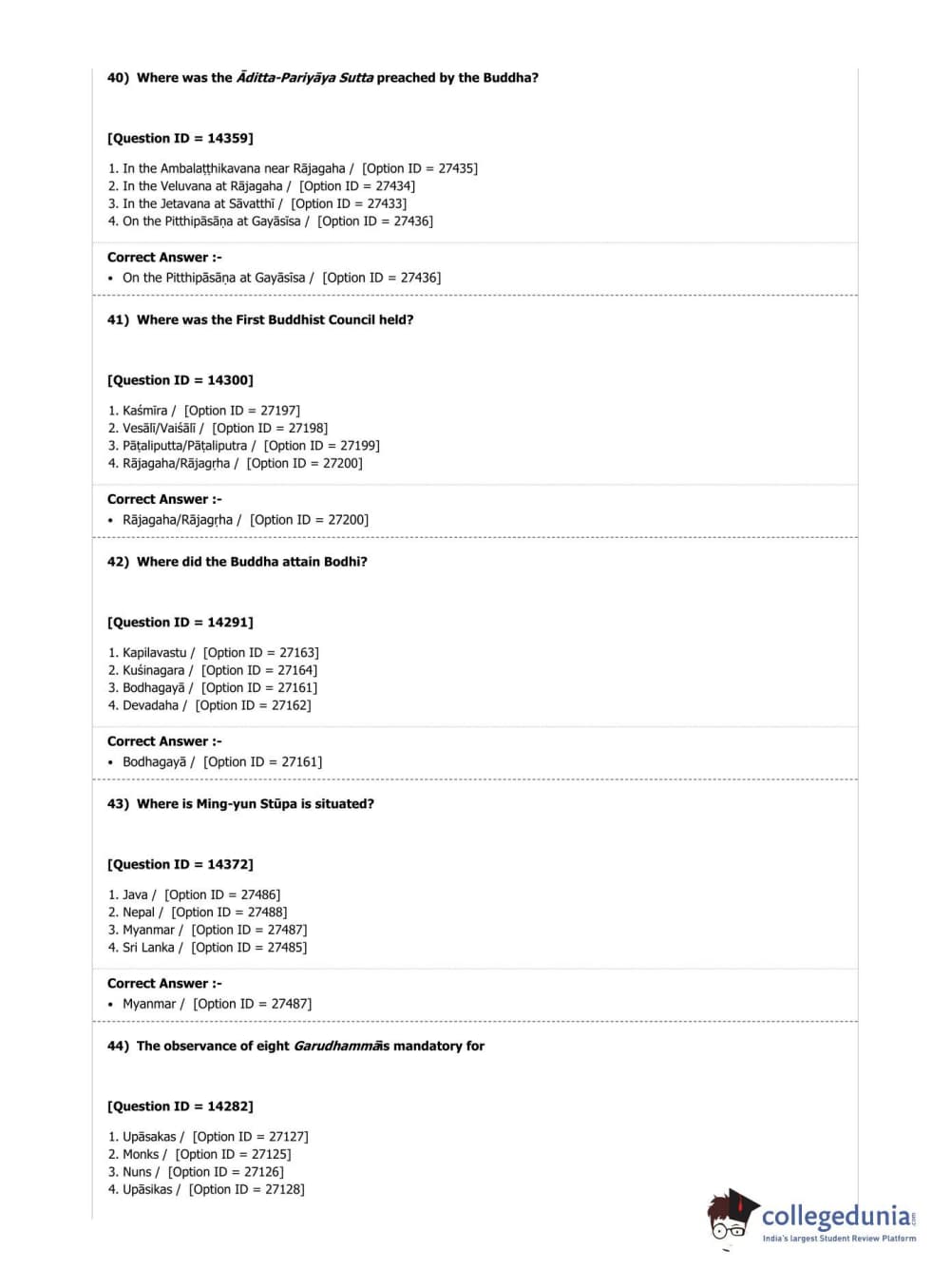 DUET 2019 M.A. Buddhist Studies Question Paper with Answer Key PDF Shift 2