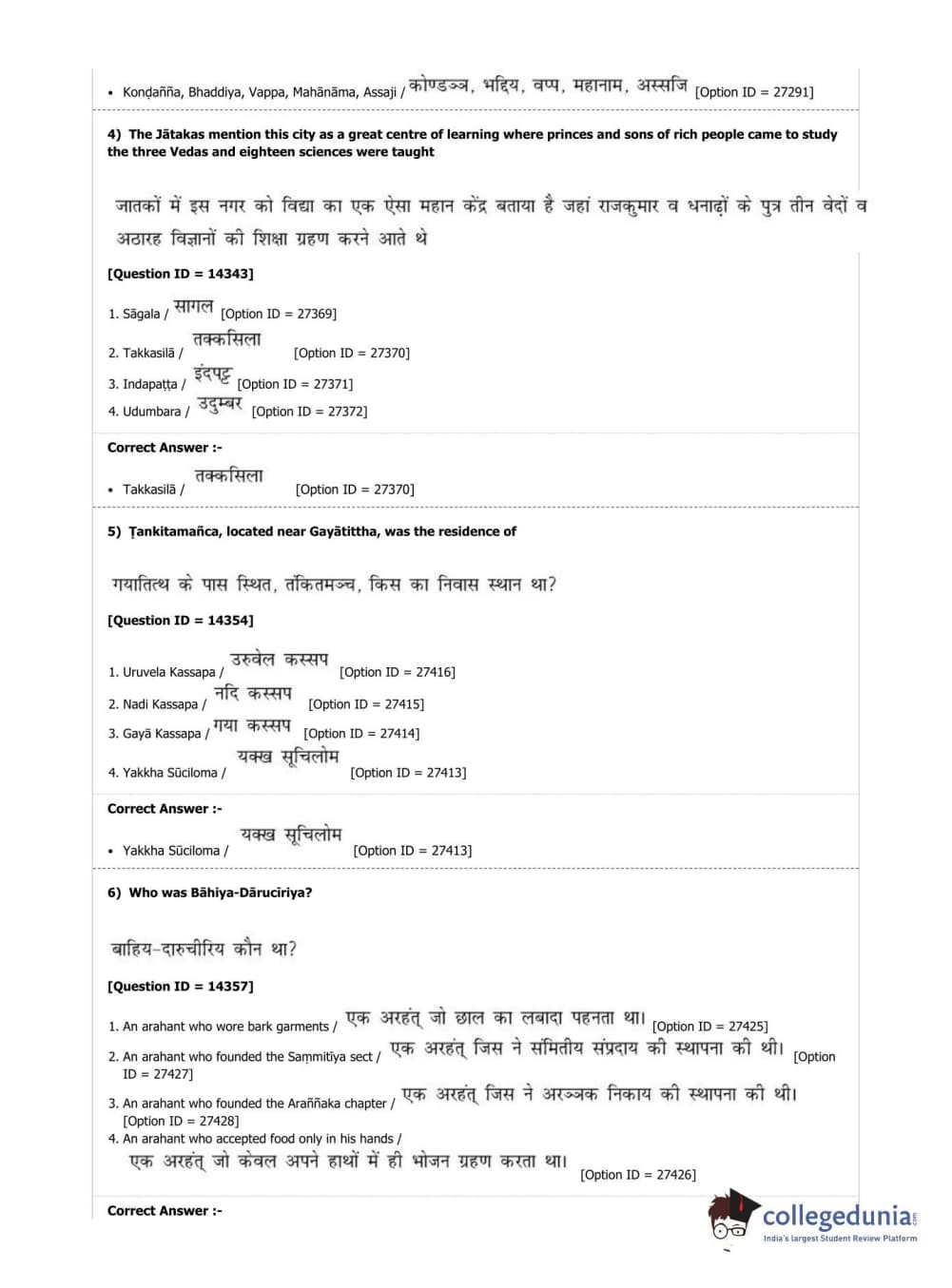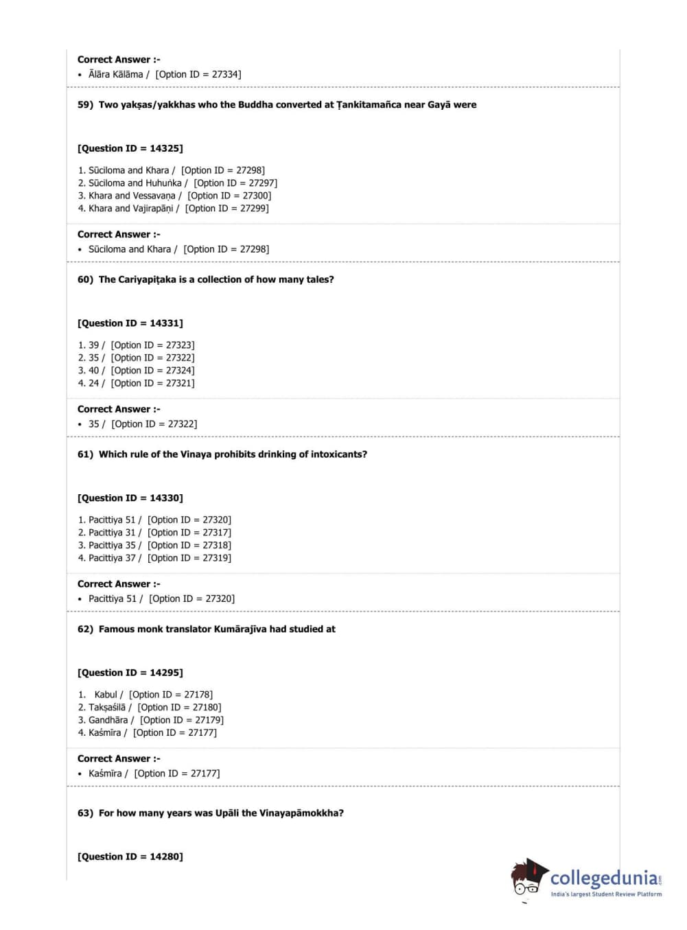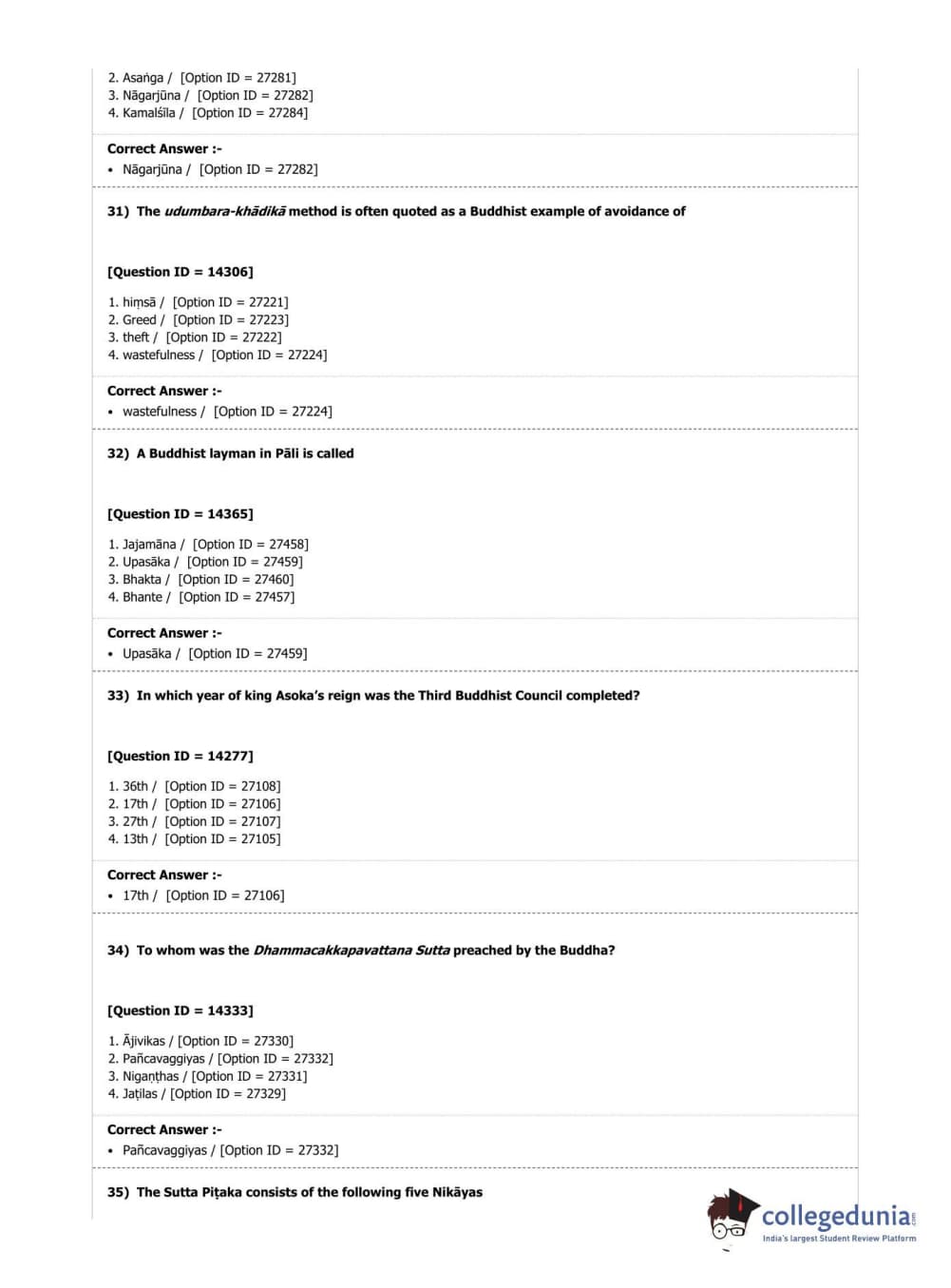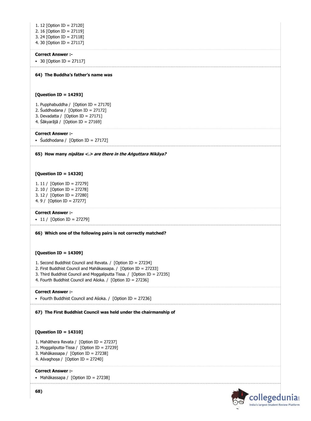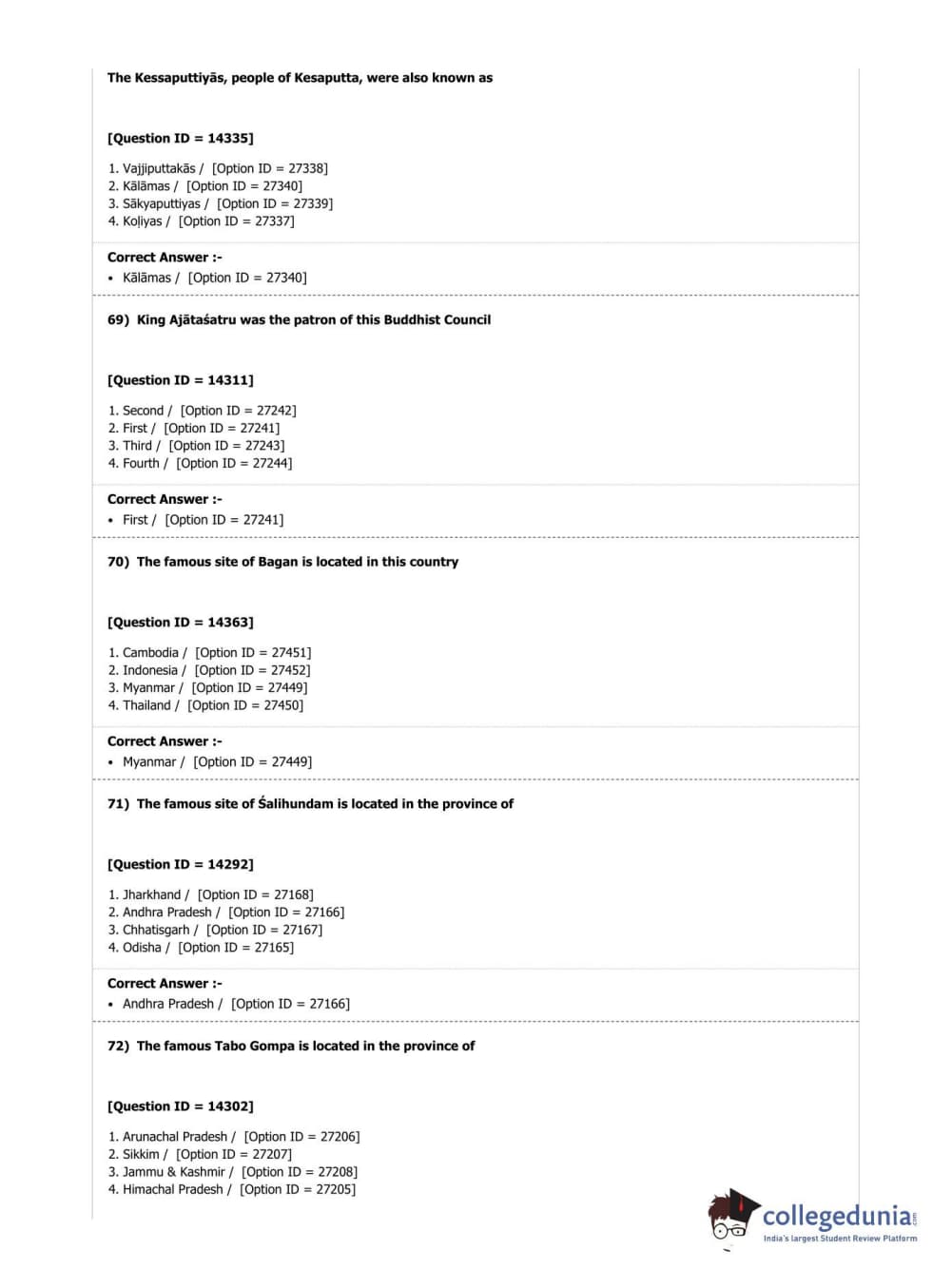 DUET 2019 M.A. Buddhist Studies Question Paper with Answer Key PDF Shift 2