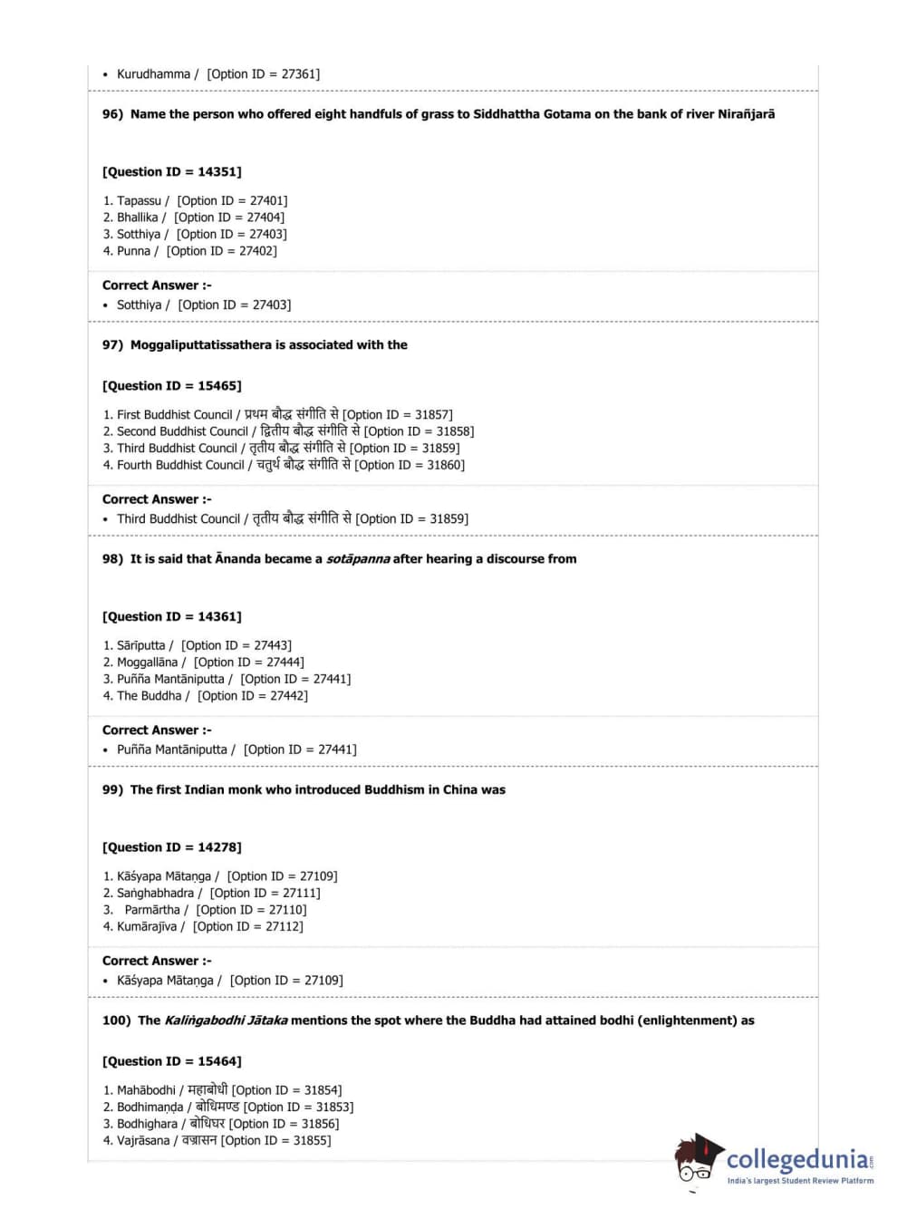 DUET 2019 M.A. Buddhist Studies Question paper with answer key pdf conducted on August 7, 2019 in Shift 2 is available for download. The exam was successfully organized by National Testing Agency (NTA). The question paper comprised a total of 100 questions.