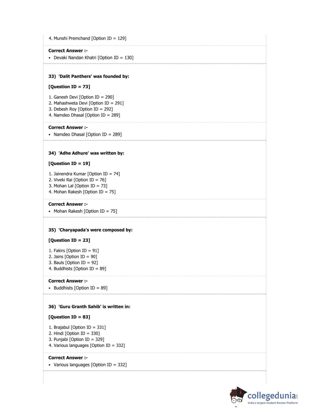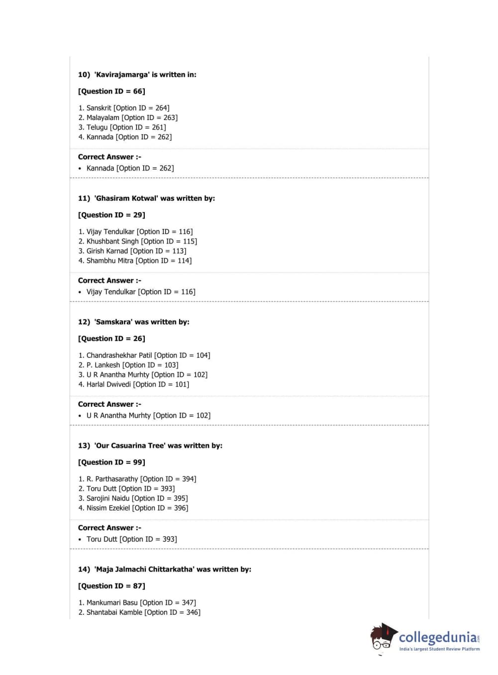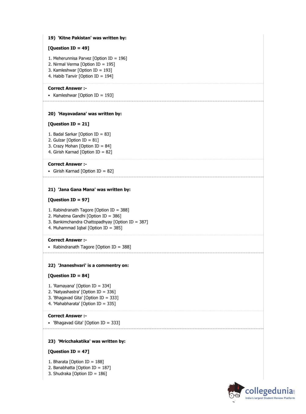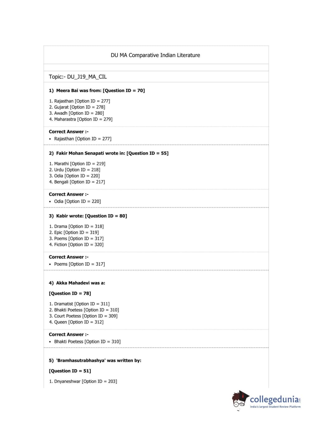 DUET 2019 M.A. Comparative Indian Literature Question Paper with Answer Key PDF Shift 2