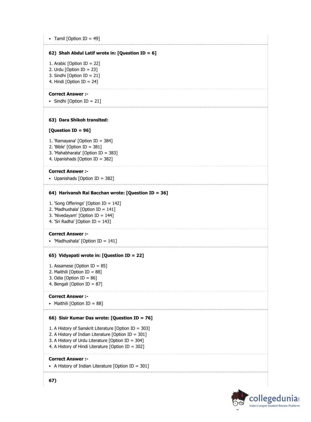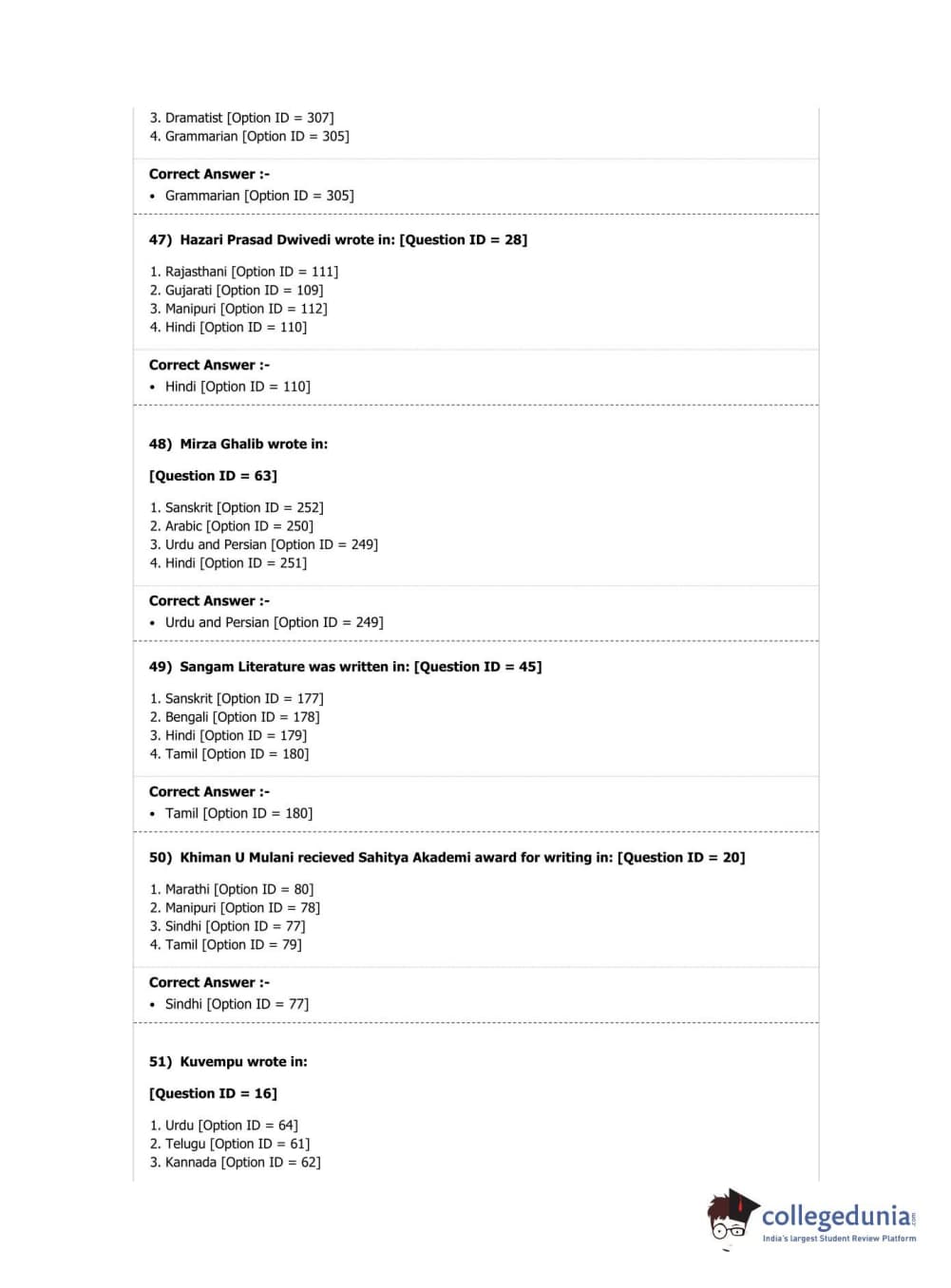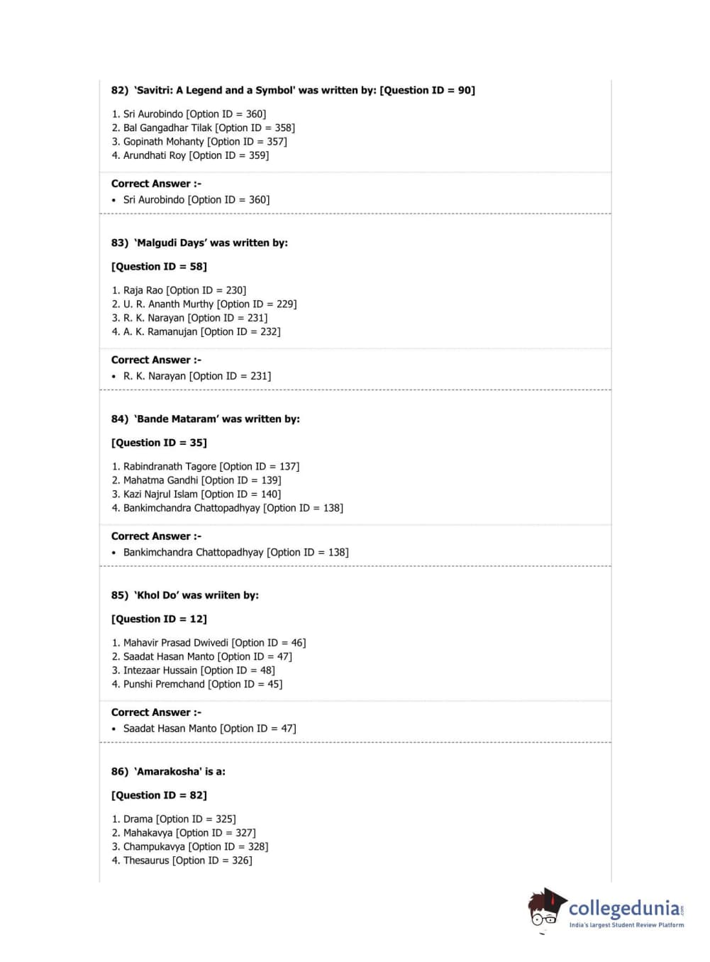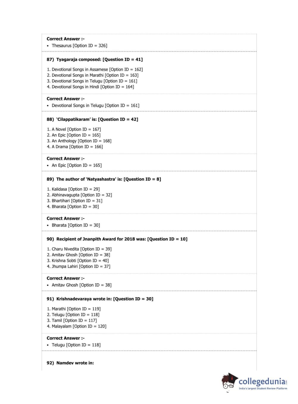 DUET 2019 M.A. Comparative Indian Literature Question Paper with Answer Key PDF Shift 2
