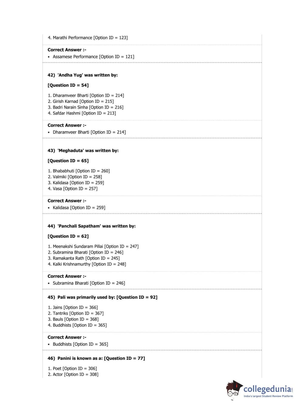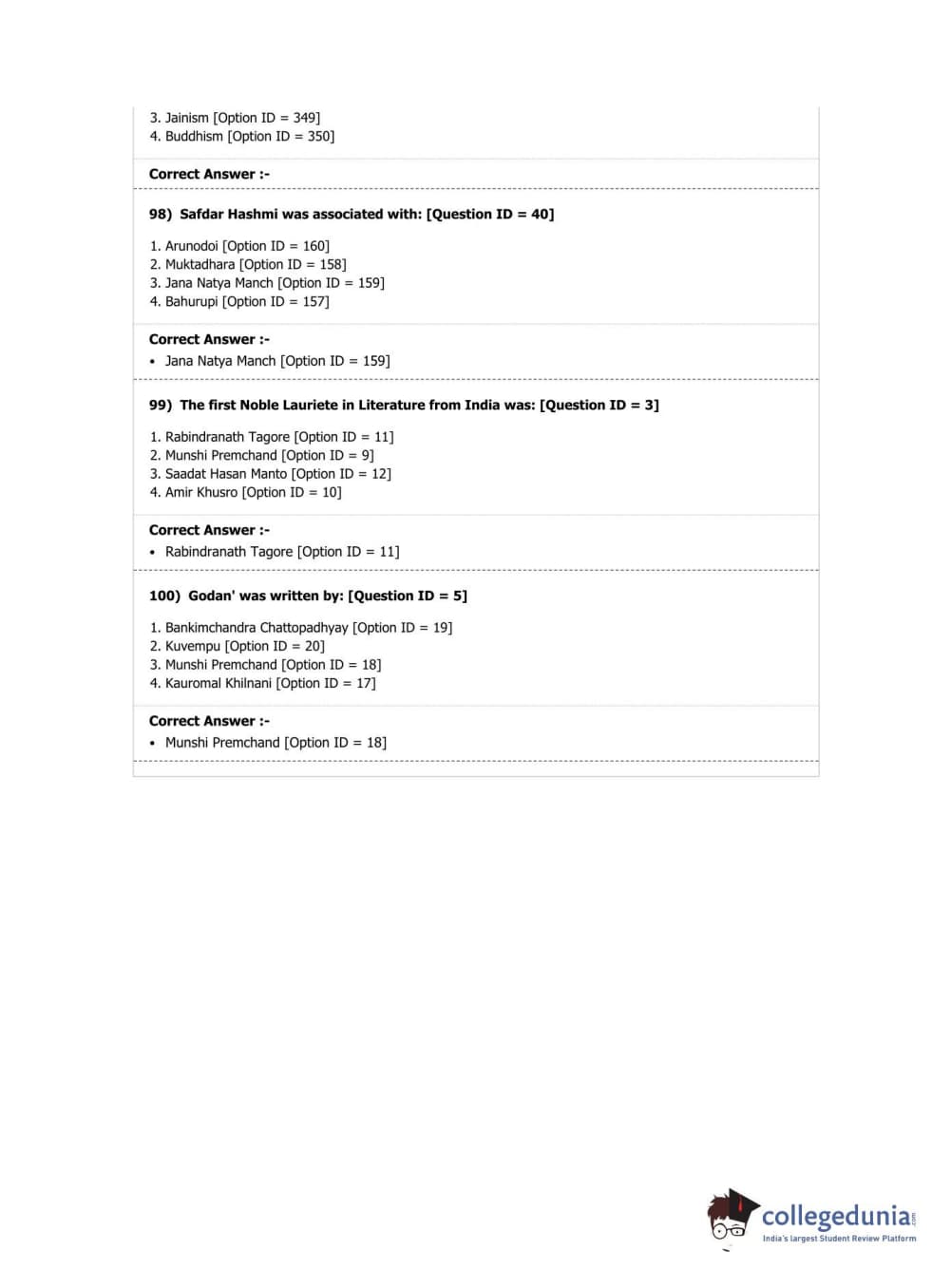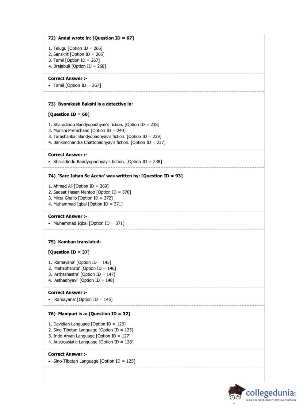 DUET 2019 M.A. Comparative Indian Literature Question paper with answer key pdf conducted on April 7, 2019 in Shift 2 is available for download. The exam was successfully organized by National Testing Agency (NTA). The question paper comprised a total of 100 questions.
