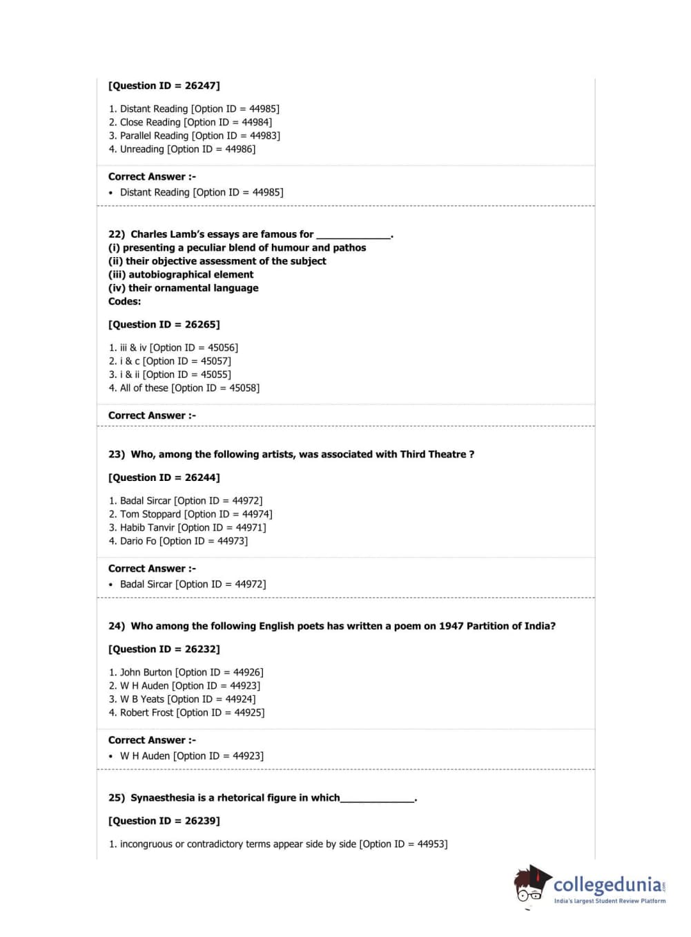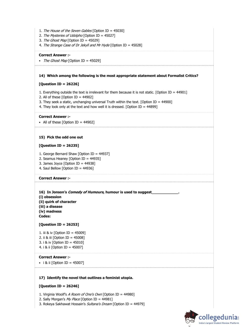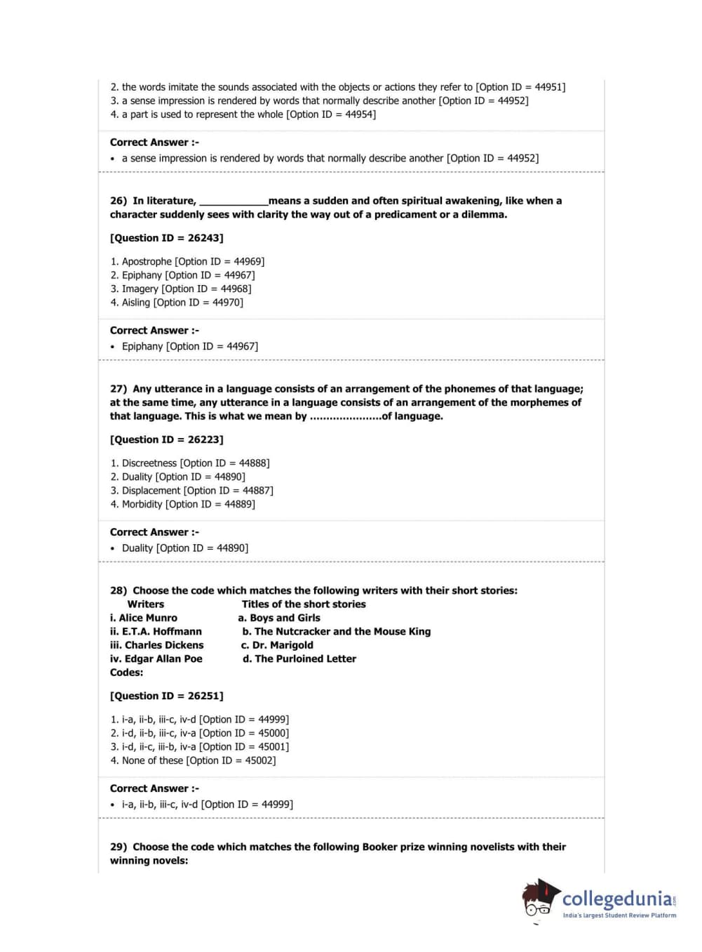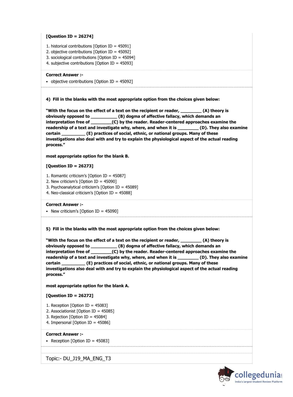 DUET 2019 M.A. English Question paper with answer key pdf conducted on May 7, 2019 in Shift 1 is available for download. The exam was successfully organized by National Testing Agency (NTA). The question paper comprised a total of 100 questions.