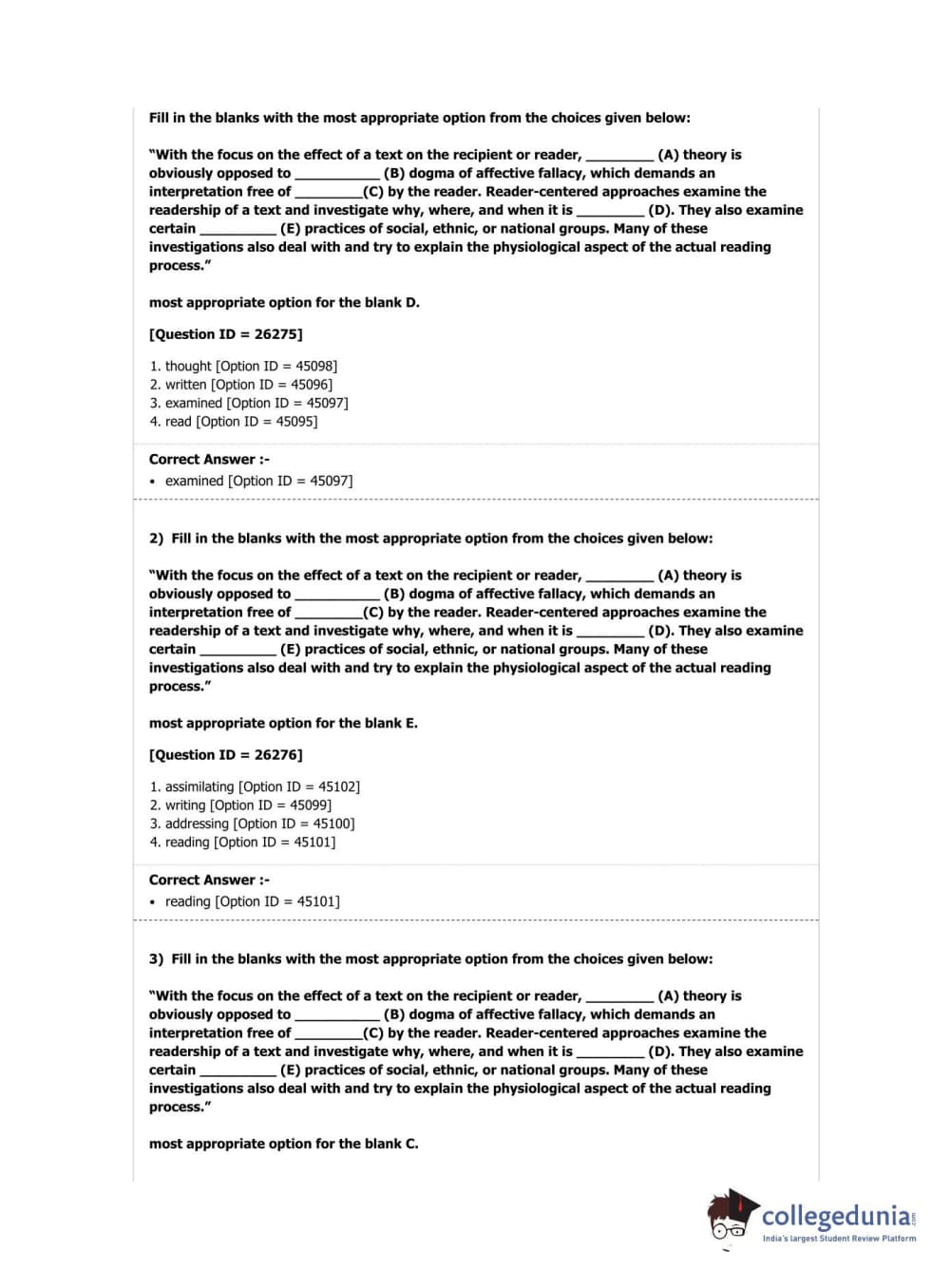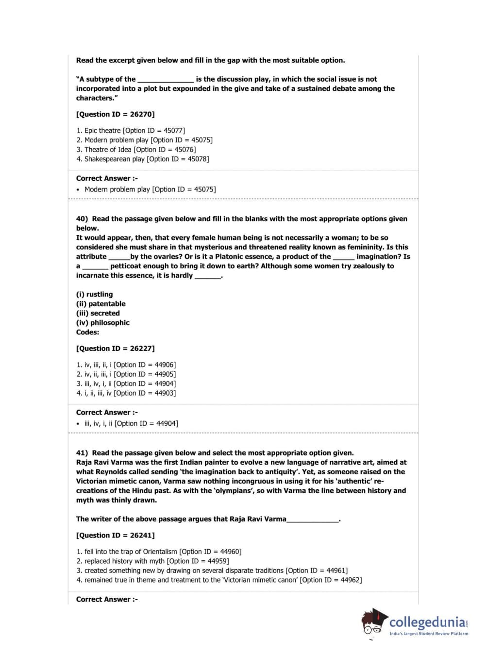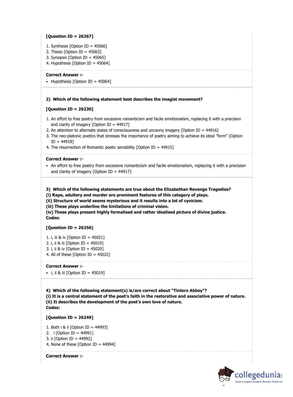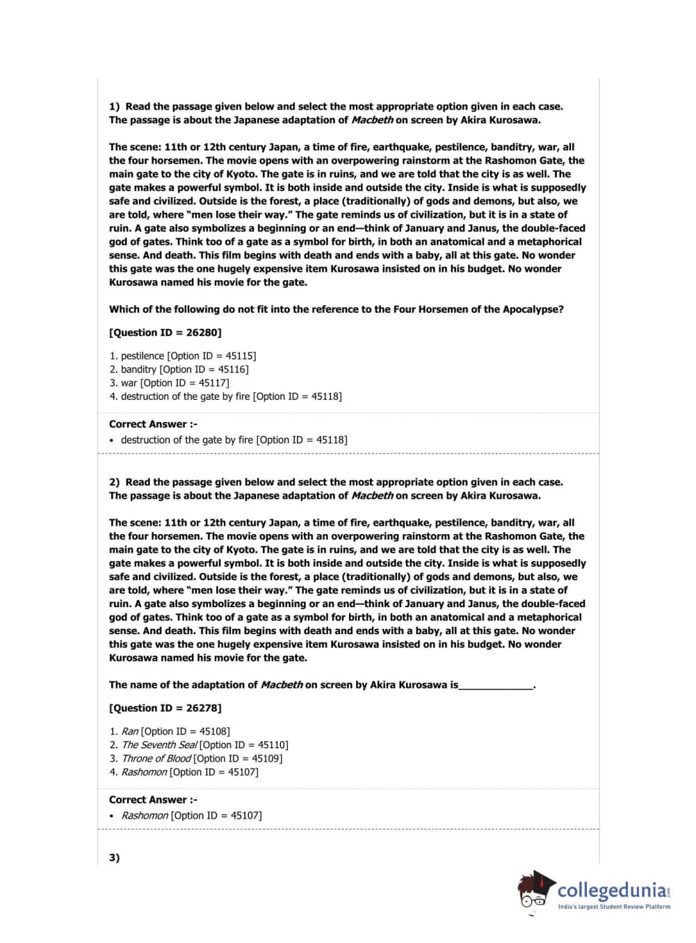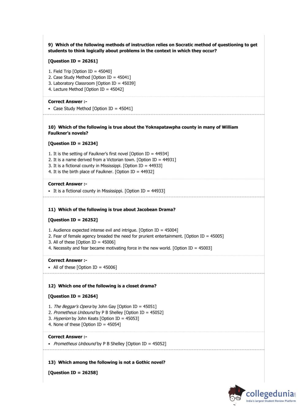 DUET 2019 M.A. English Question paper with answer key pdf conducted on May 7, 2019 in Shift 1 is available for download. The exam was successfully organized by National Testing Agency (NTA). The question paper comprised a total of 100 questions.