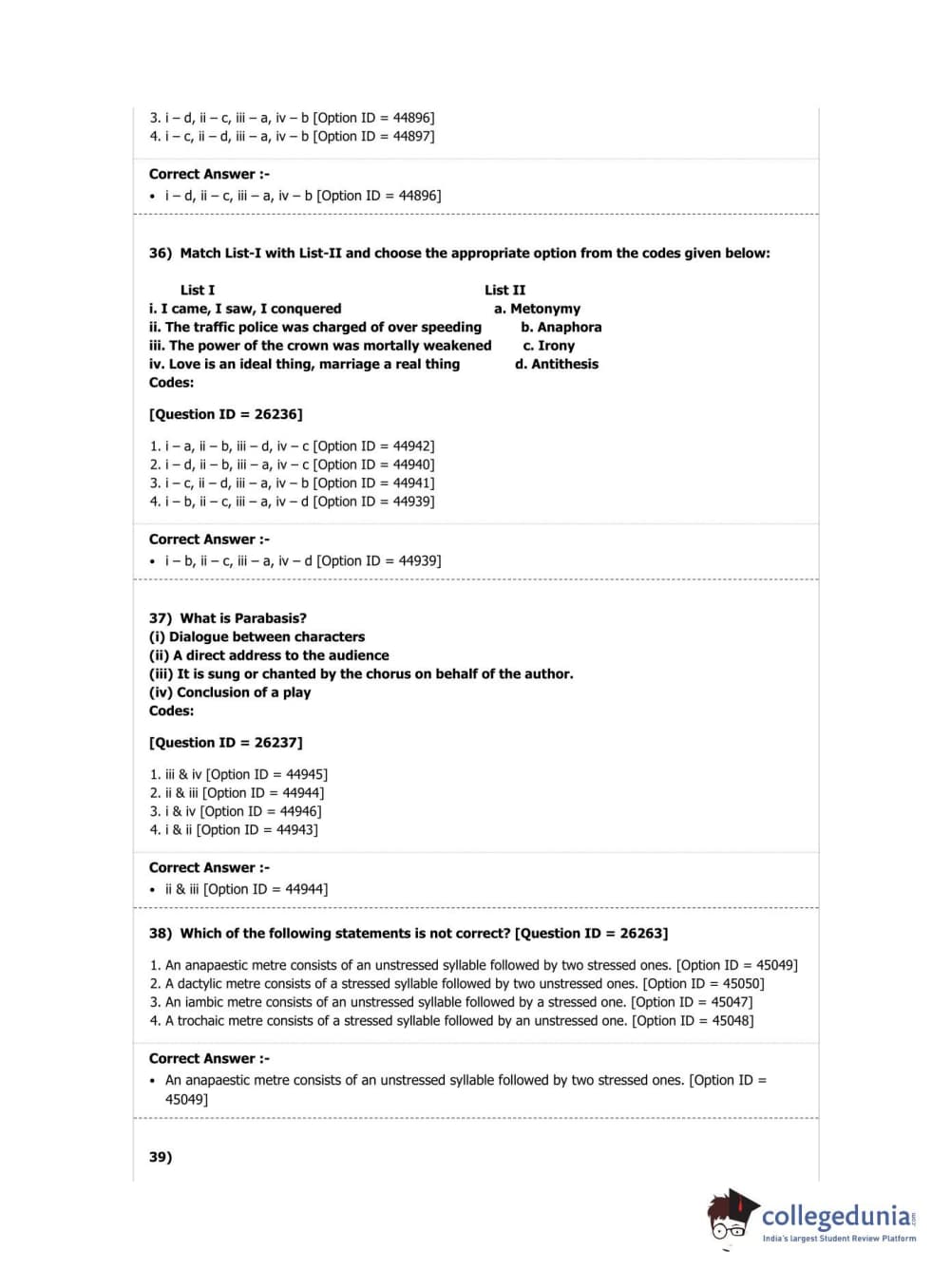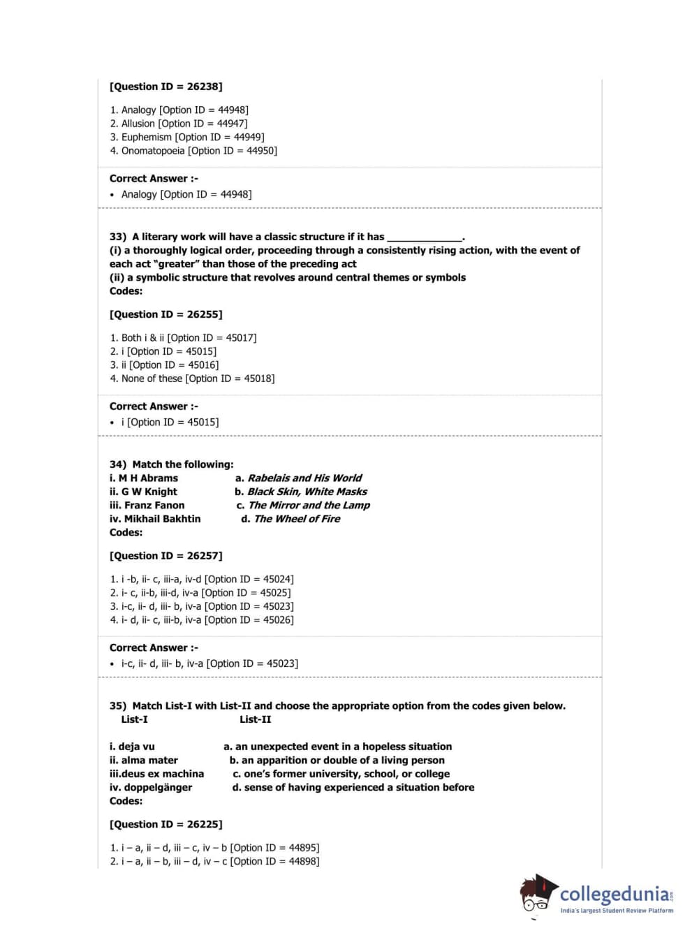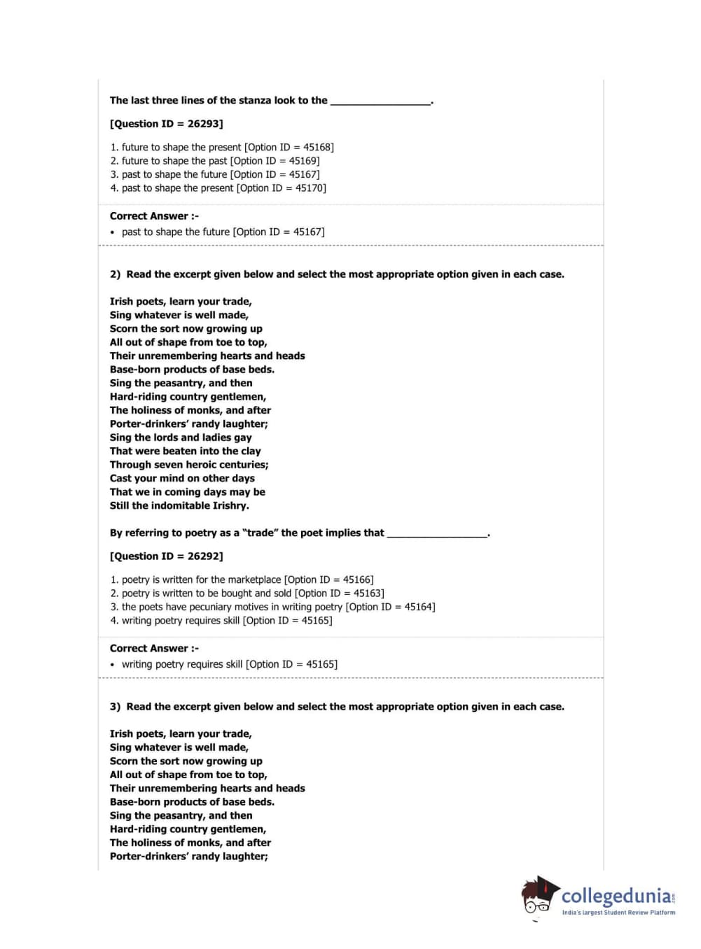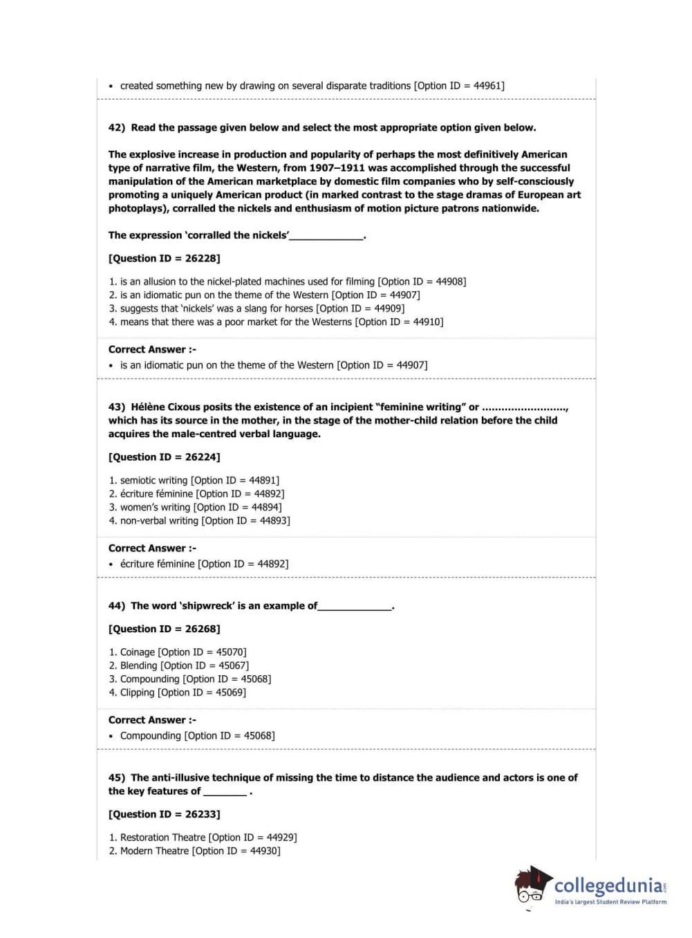 DUET 2019 M.A. English Question paper with answer key pdf conducted on May 7, 2019 in Shift 1 is available for download. The exam was successfully organized by National Testing Agency (NTA). The question paper comprised a total of 100 questions.