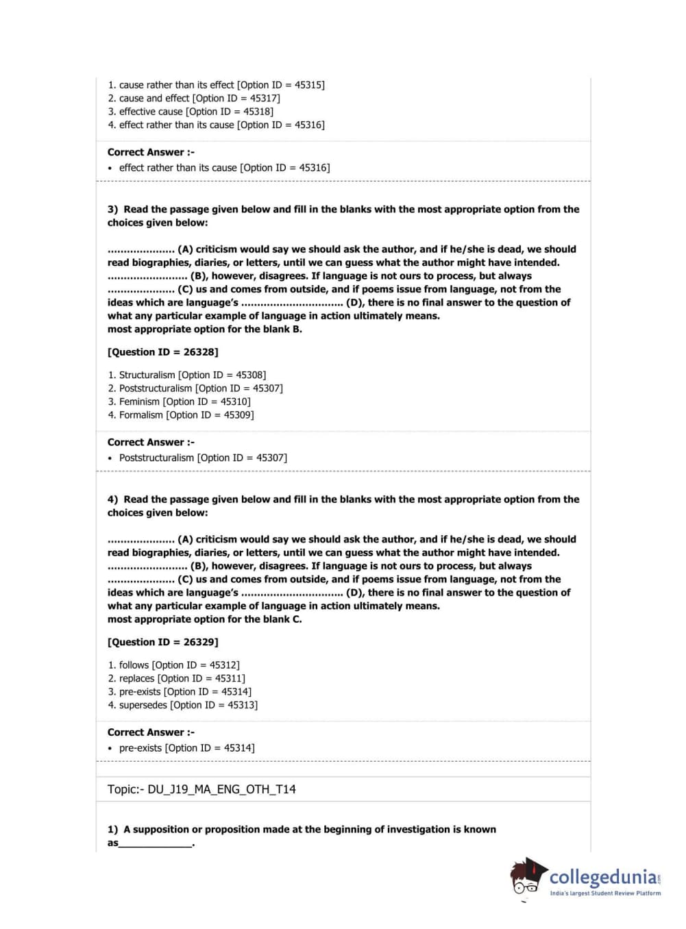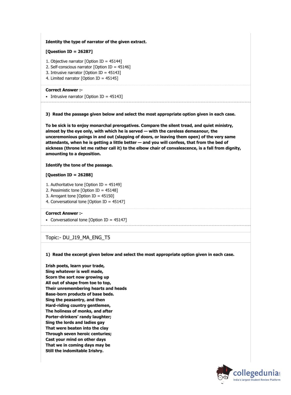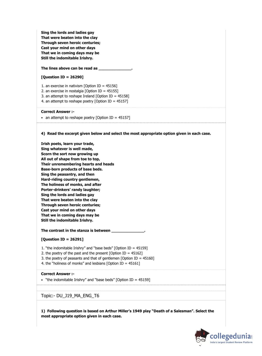 DUET 2019 M.A. English Question Paper with Answer Key PDF Shift 1