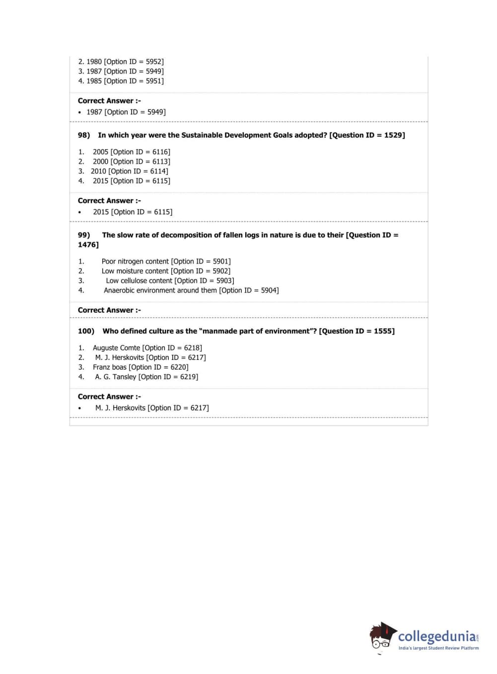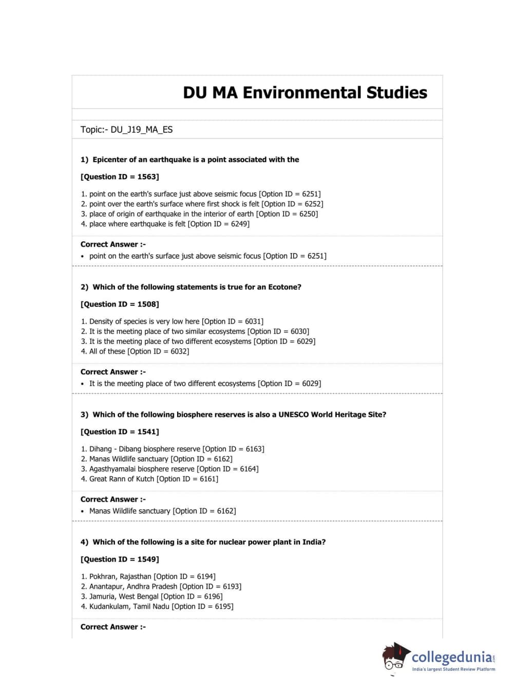 DUET 2019 M.A. Environmental Studies Question paper with answer key pdf conducted on May 7, 2019 in Shift 1 is available for download. The exam was successfully organized by National Testing Agency (NTA). The question paper comprised a total of 100 questions.