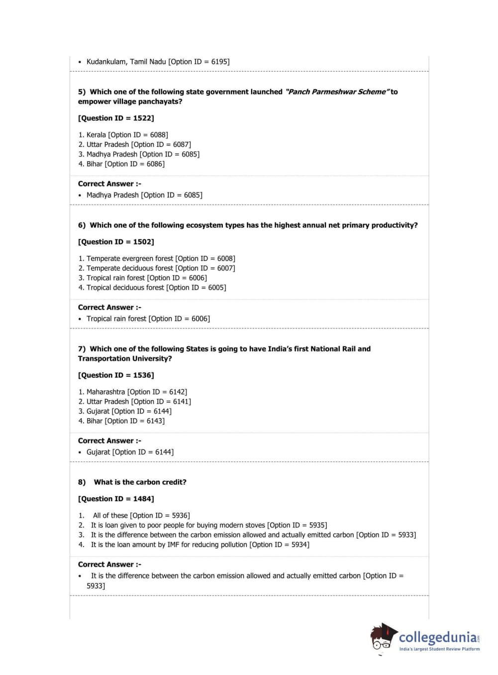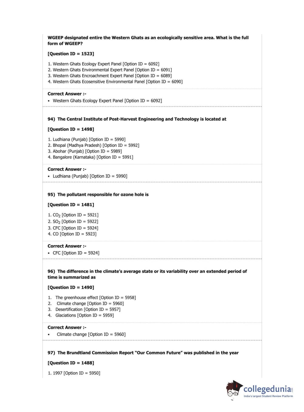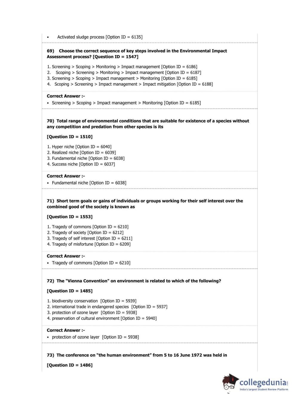 DUET 2019 M.A. Environmental Studies Question Paper with Answer Key PDF Shift 1
