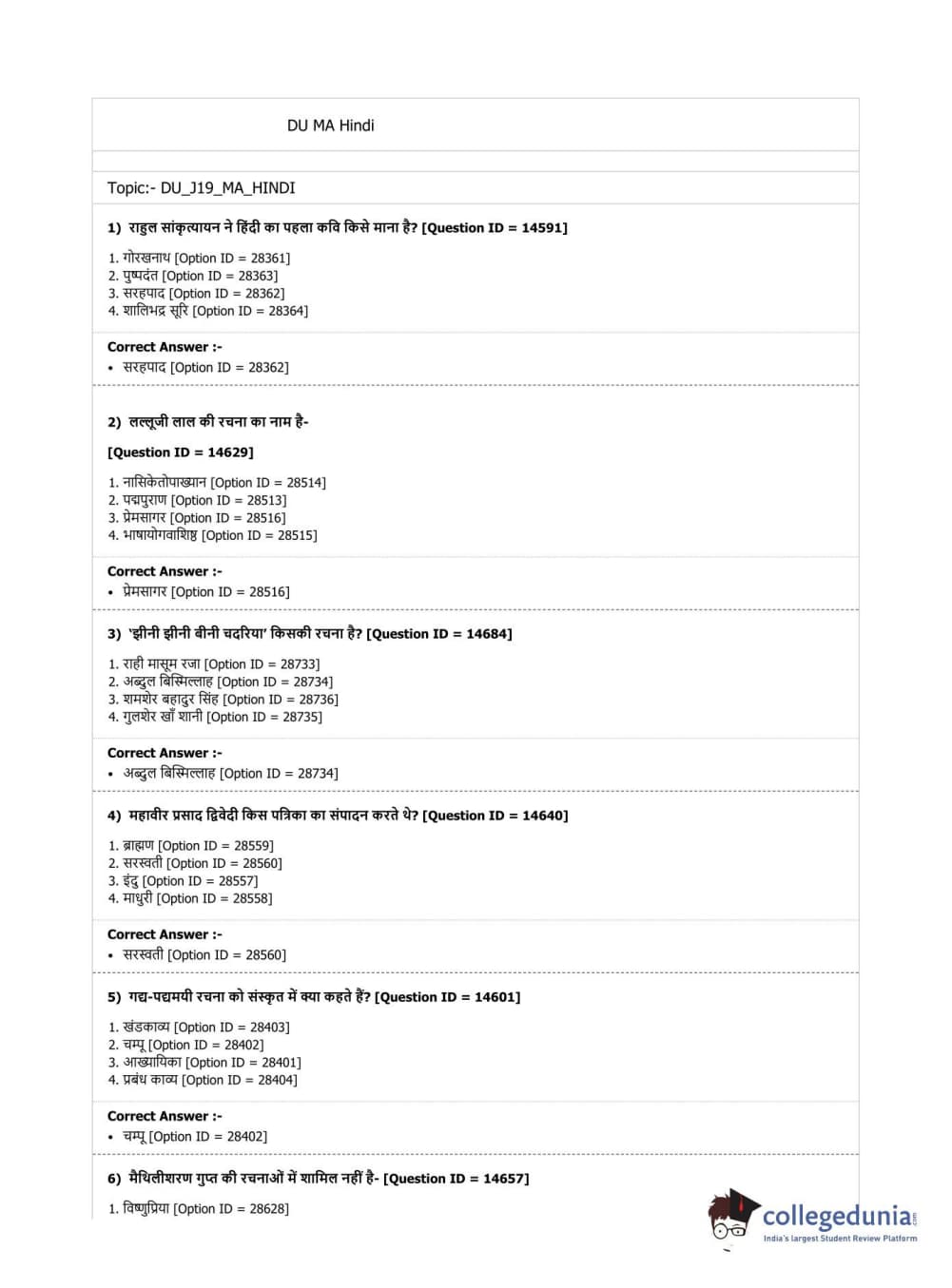 | DUET 2019 M.A. Hindi | Download PDF |