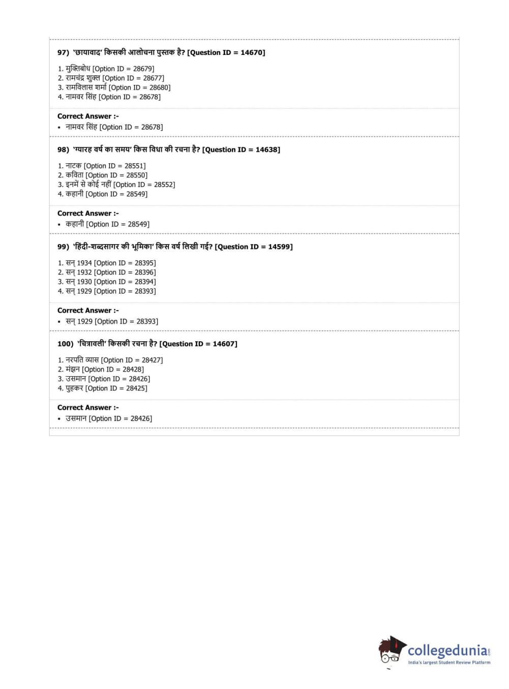 DUET 2019 M.A. Hindi Question paper with answer key pdf conducted on August 7, 2019 in Shift 3 is available for download. The exam was successfully organized by National Testing Agency (NTA). The question paper comprised a total of 100 questions.