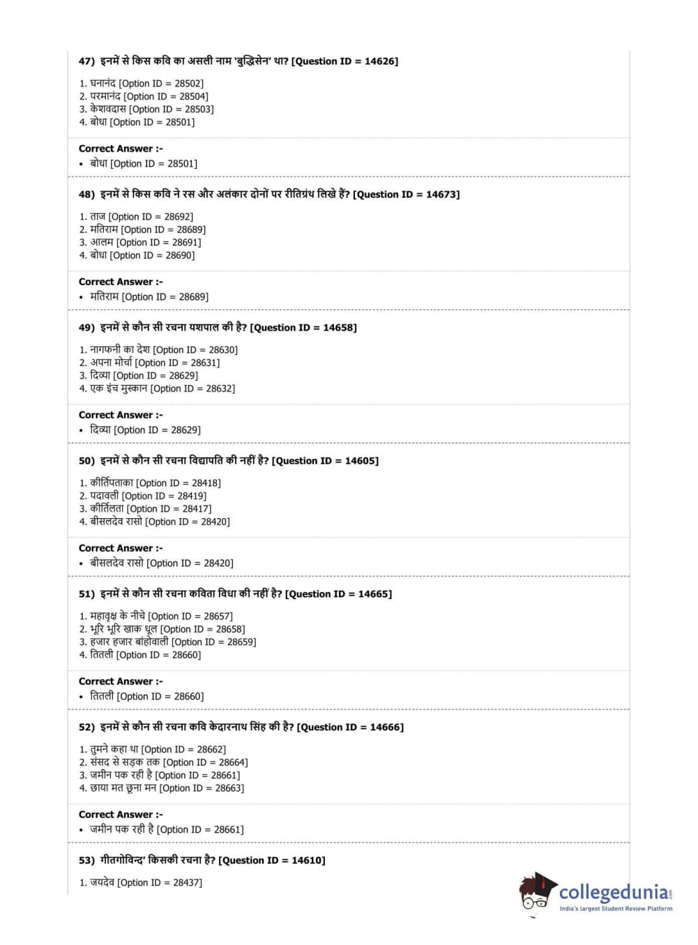 | DUET Subject | Question Paper with Answer Key PDF |