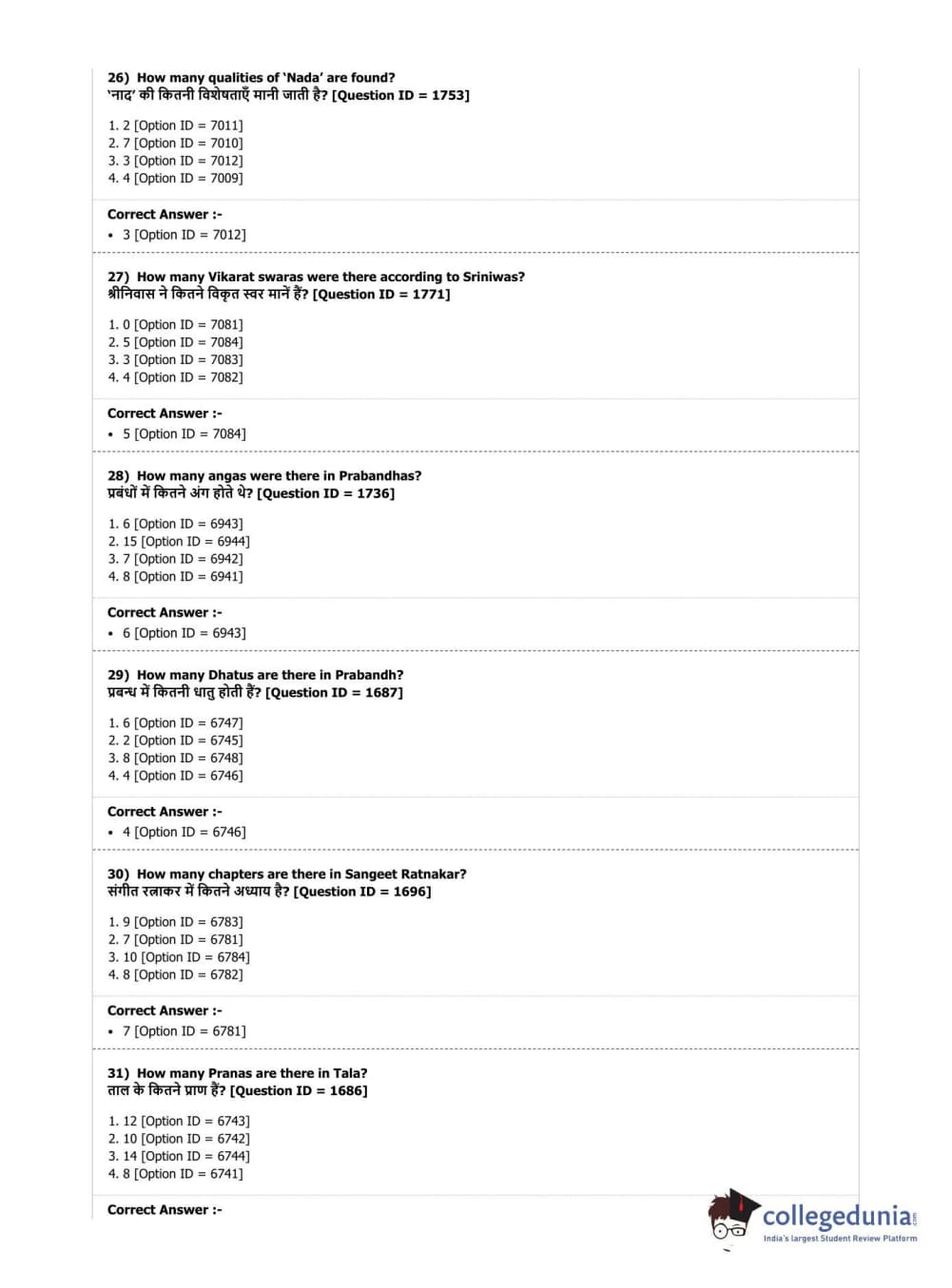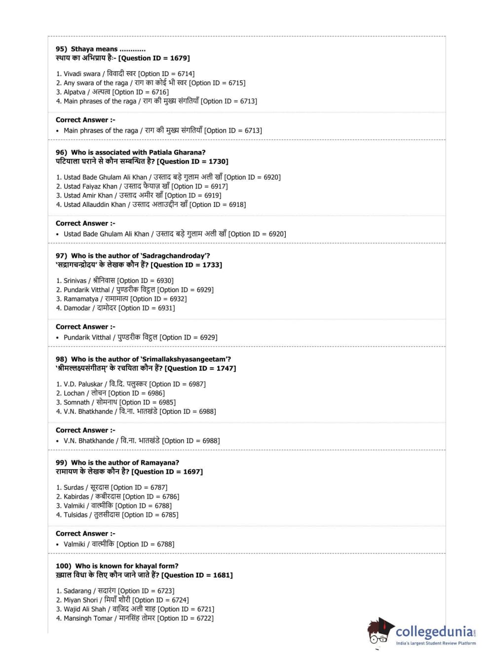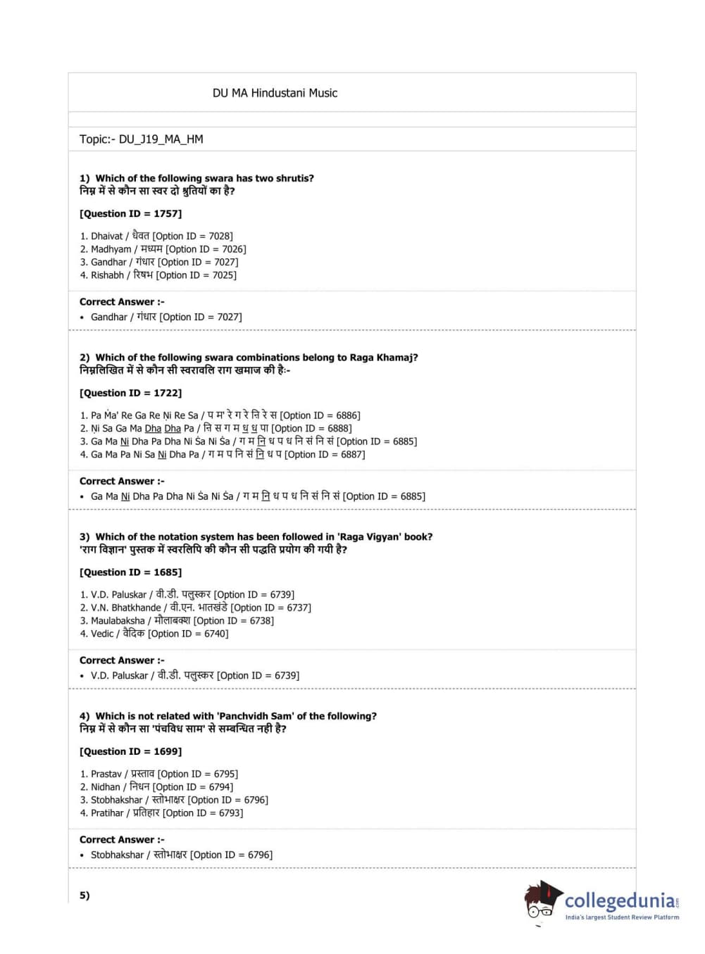 DUET 2019 M.A. Hindustani Music Question paper with answer key pdf conducted on August 7, 2019 in Shift 2 is available for download. The exam was successfully organized by National Testing Agency (NTA). The question paper comprised a total of 100 questions.