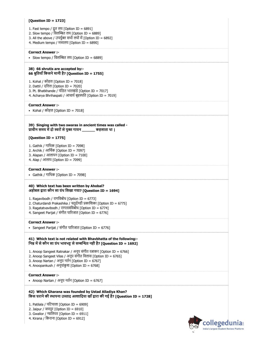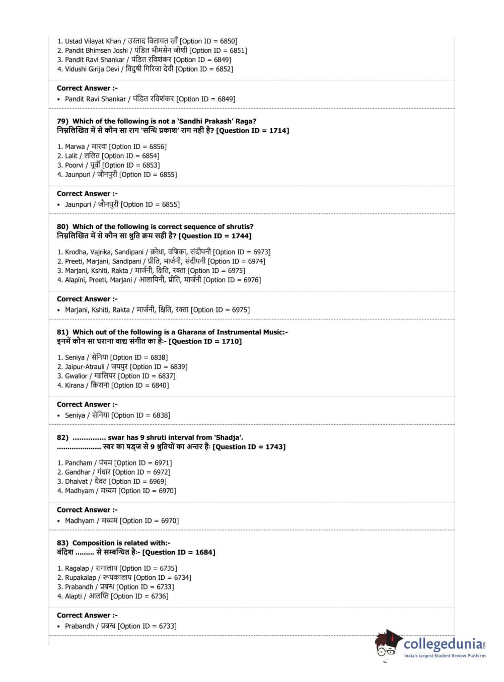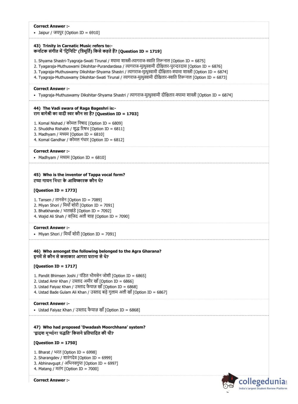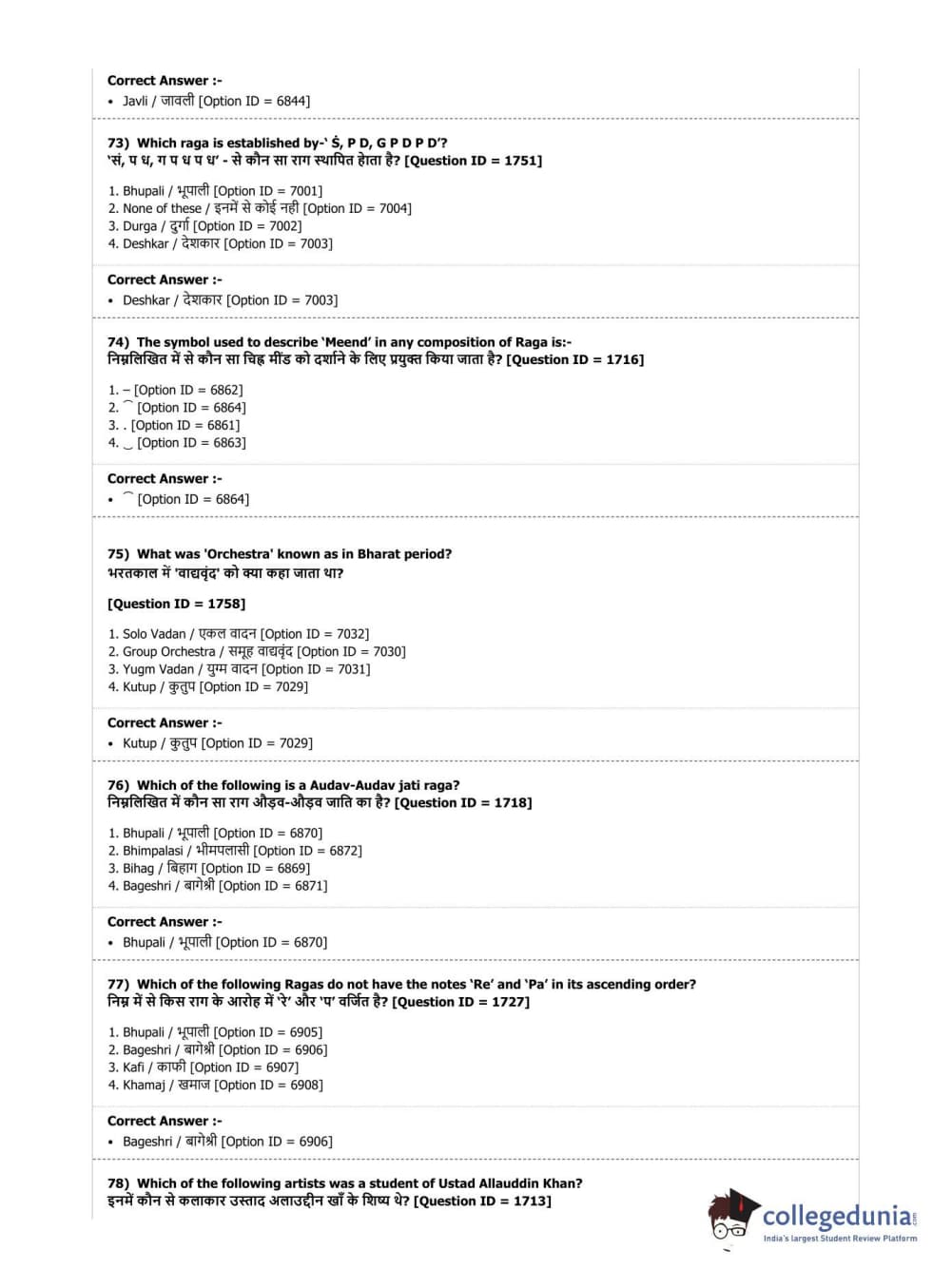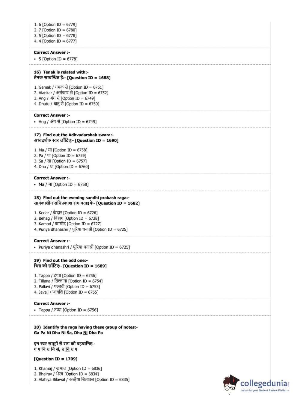 DUET 2019 M.A. Hindustani Music Question Paper with Answer Key PDF Shift 2