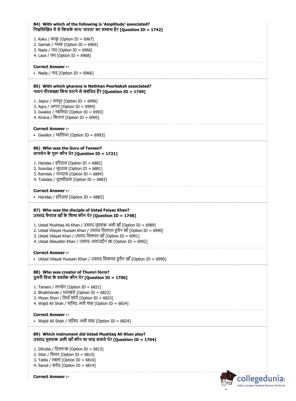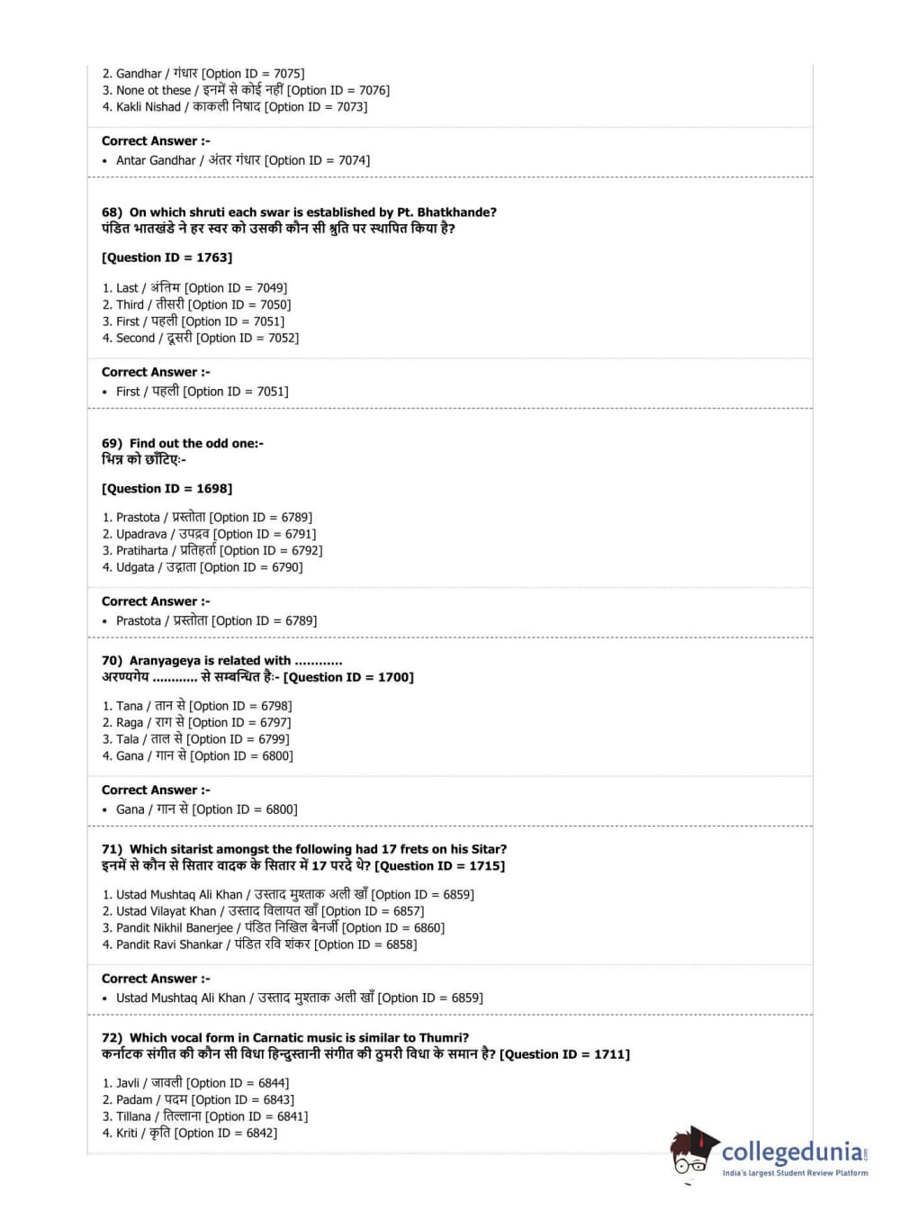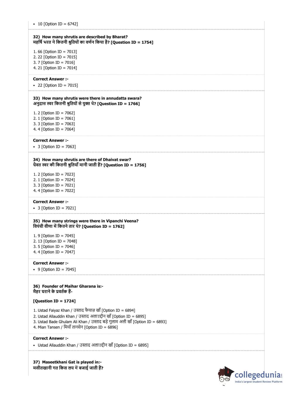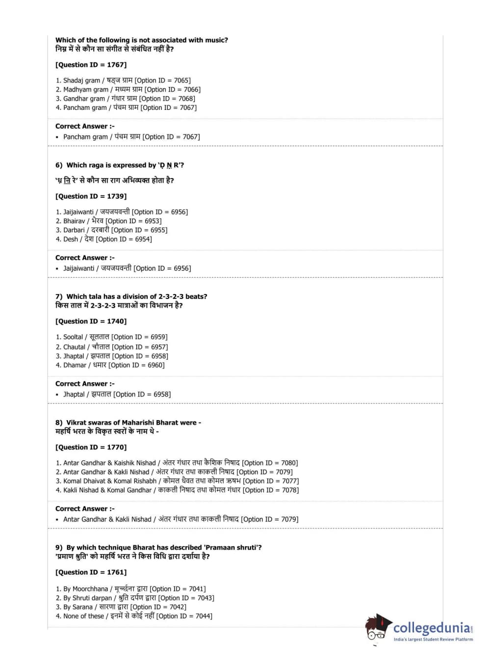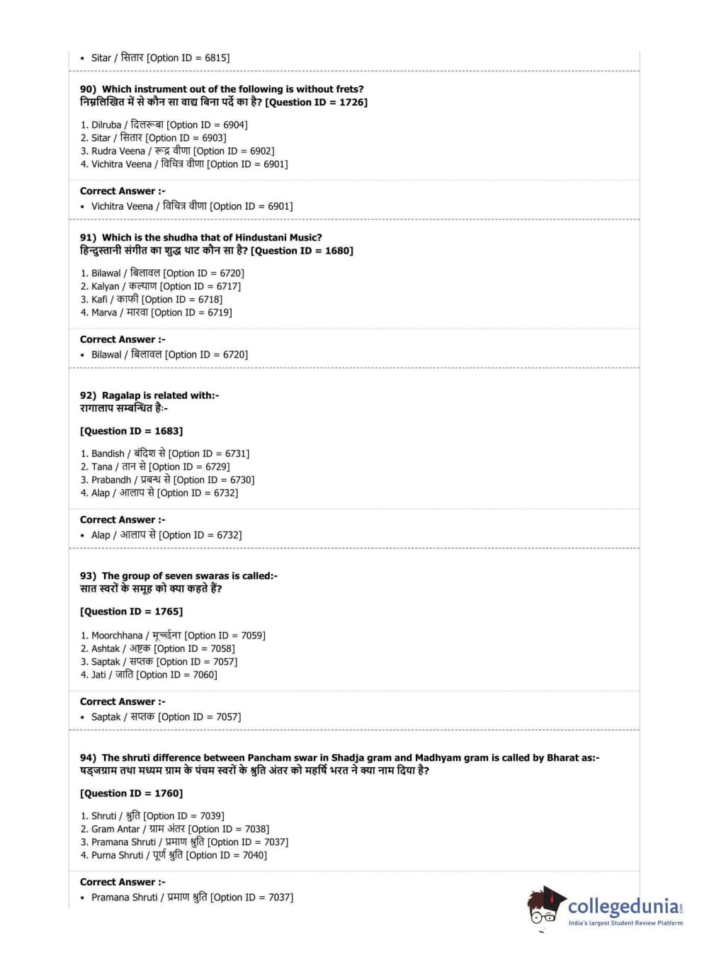 DUET 2019 M.A. Hindustani Music Question Paper with Answer Key PDF Shift 2