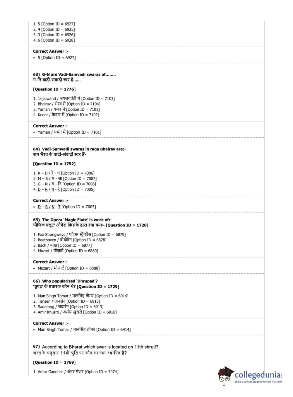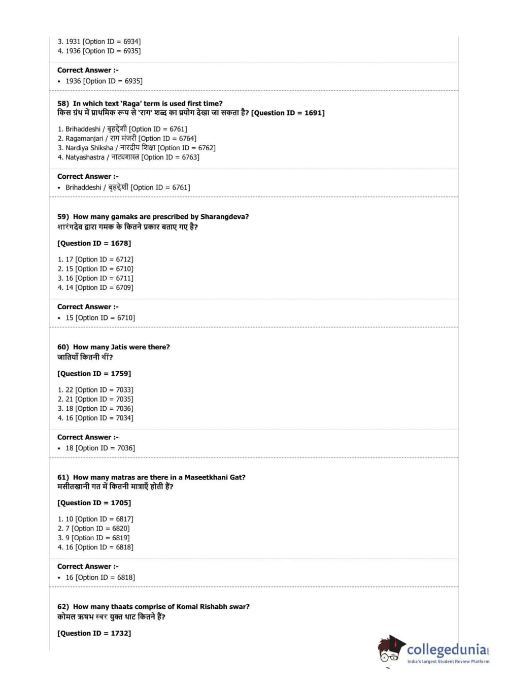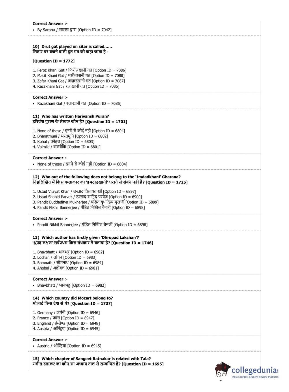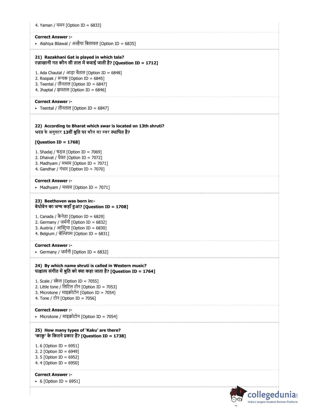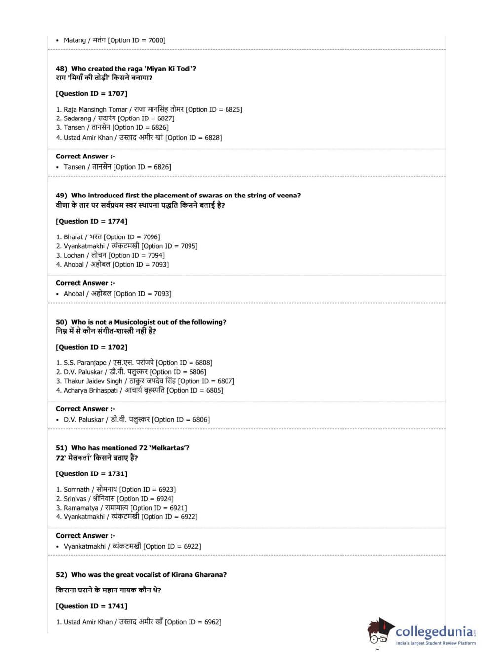 DUET 2019 M.A. Hindustani Music Question Paper with Answer Key PDF Shift 2