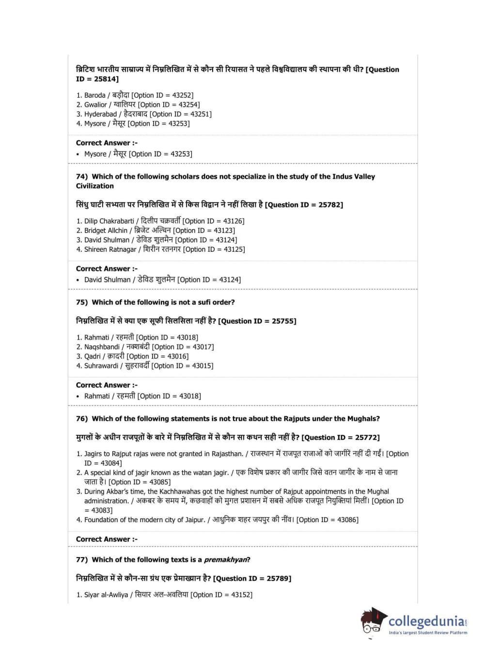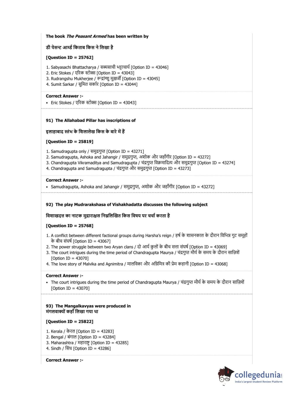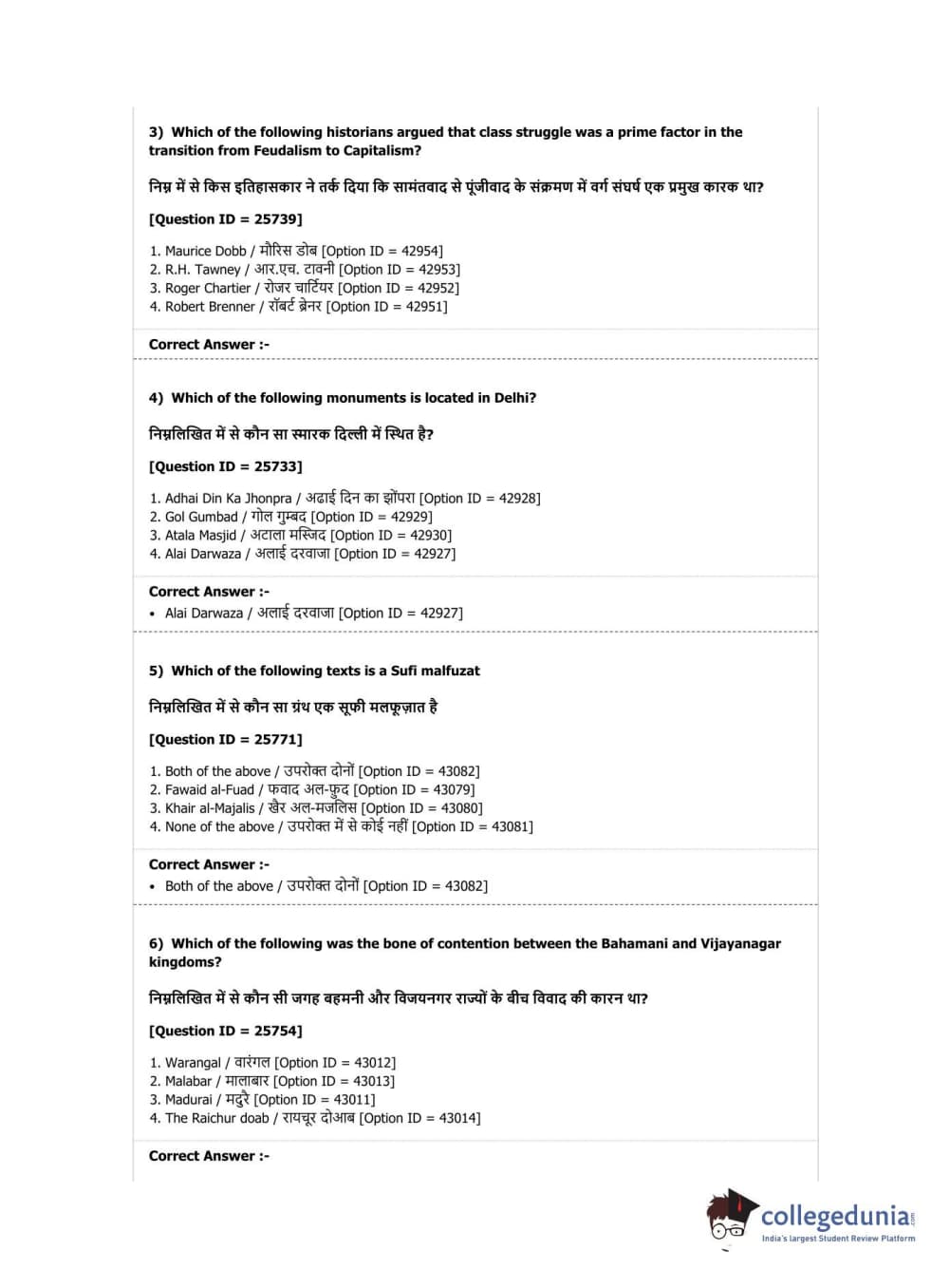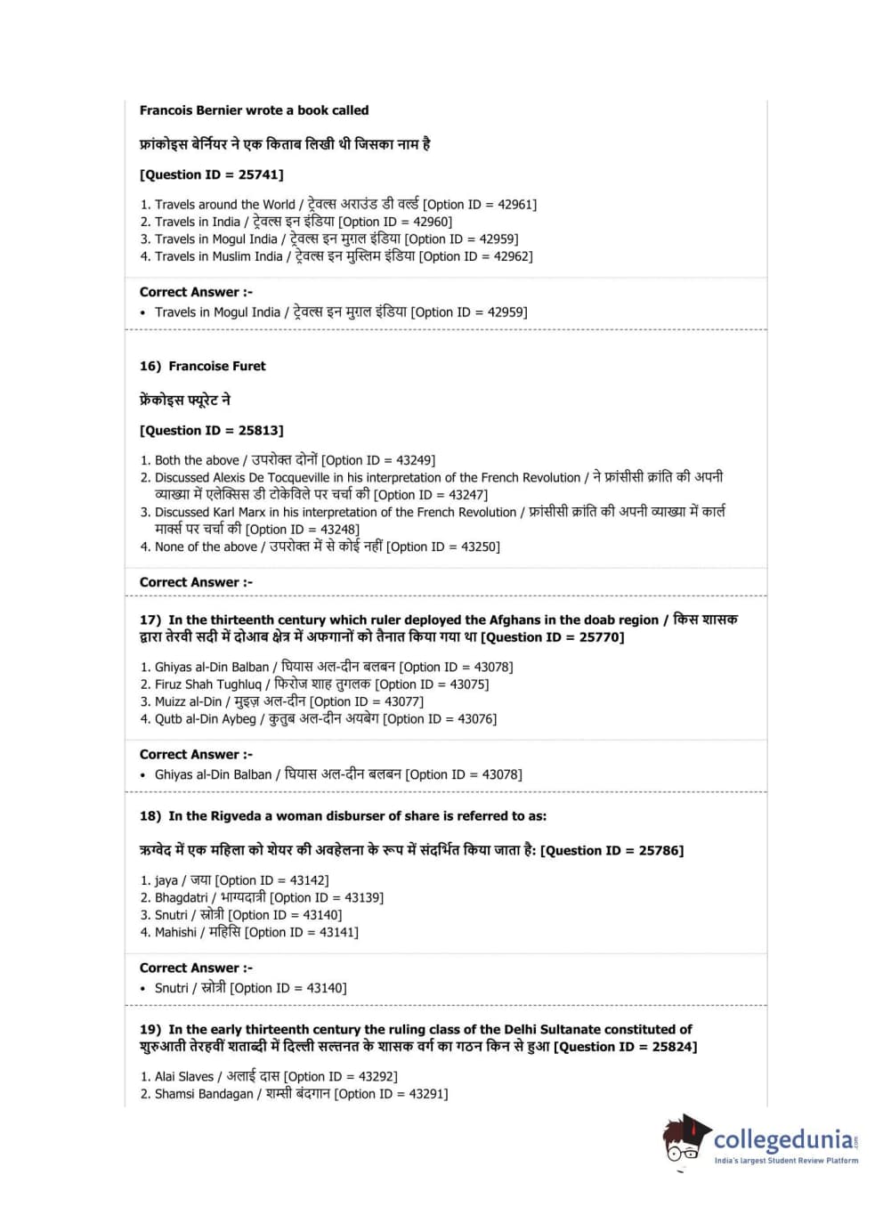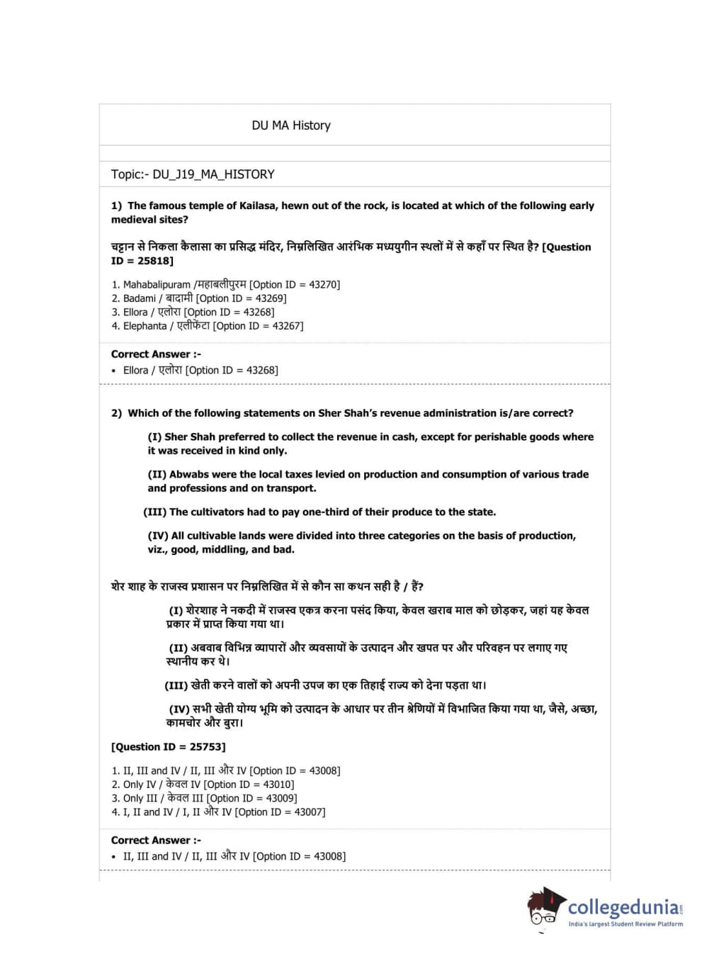 DUET 2019 M.A. History Question Paper with Answer Key PDF Shift 3