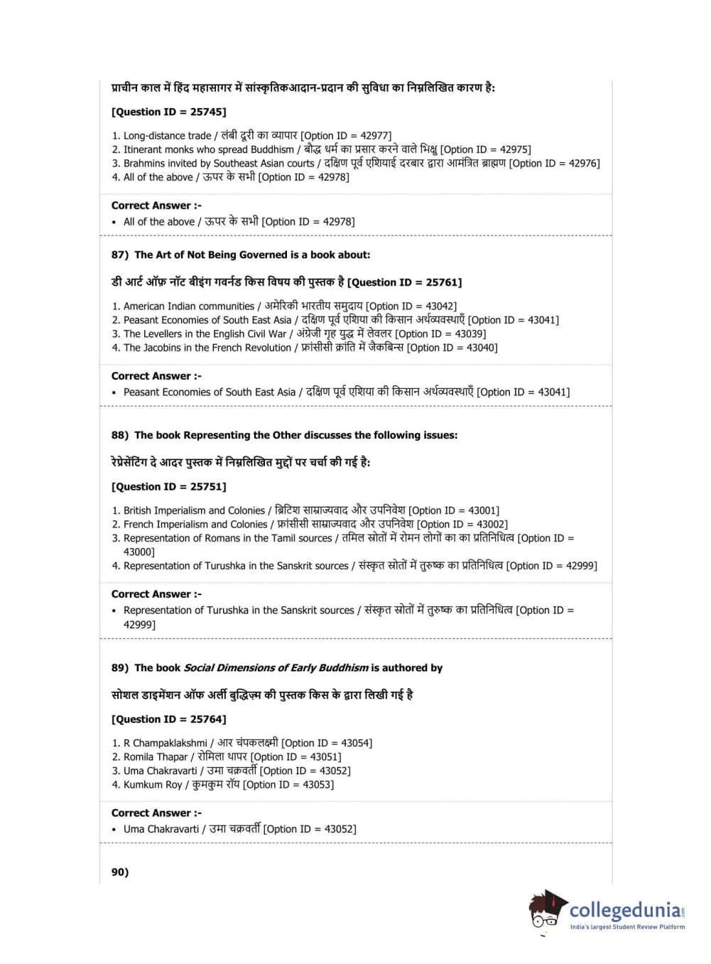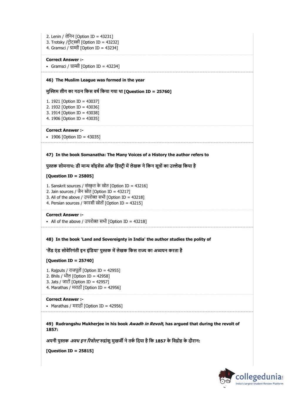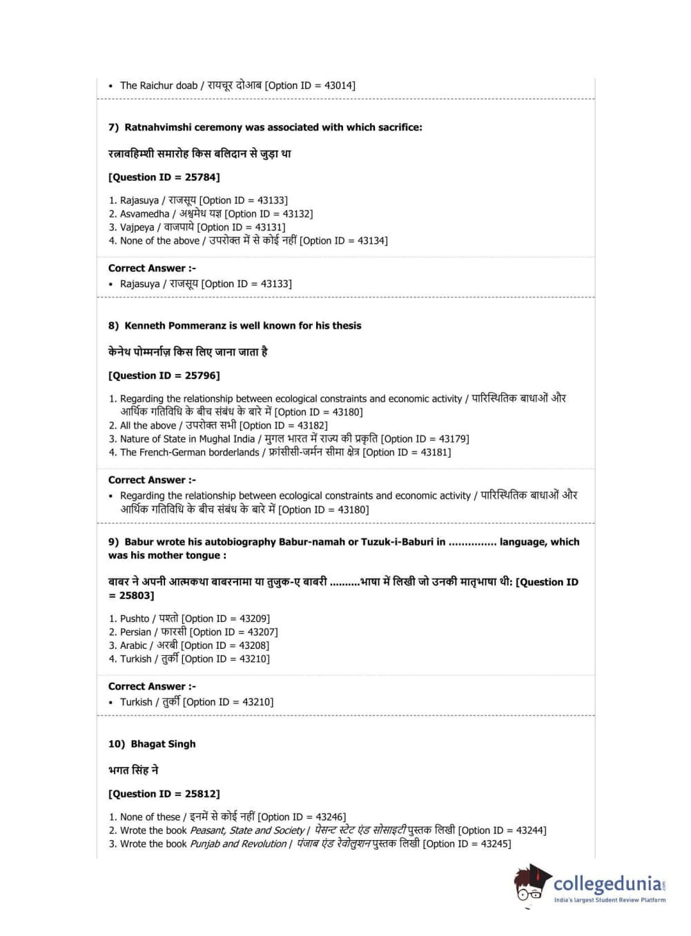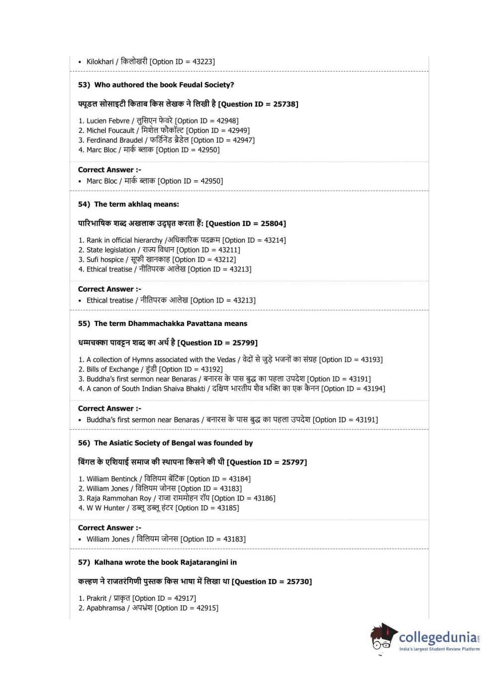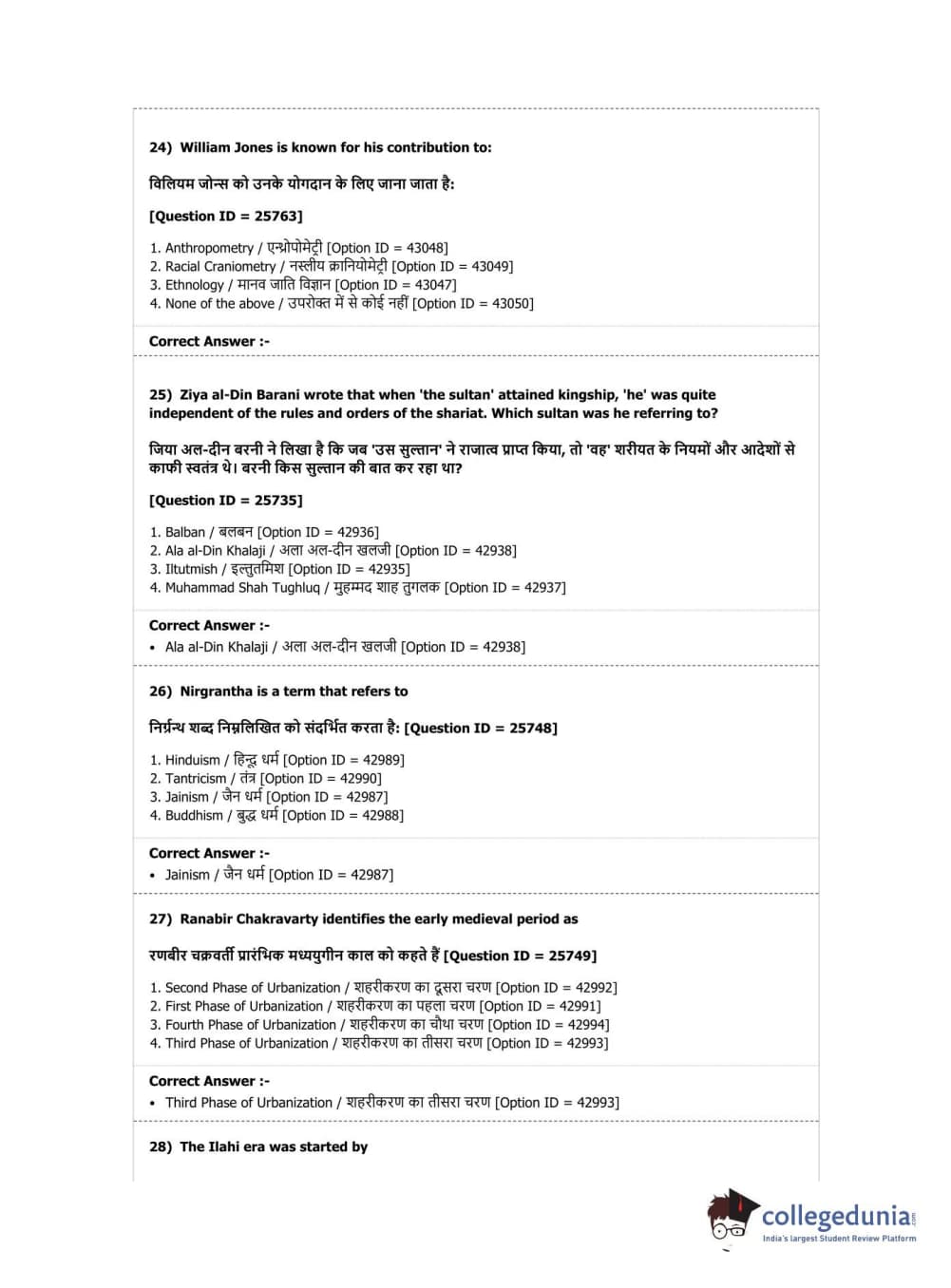 DUET 2019 M.A. History Question Paper with Answer Key PDF Shift 3