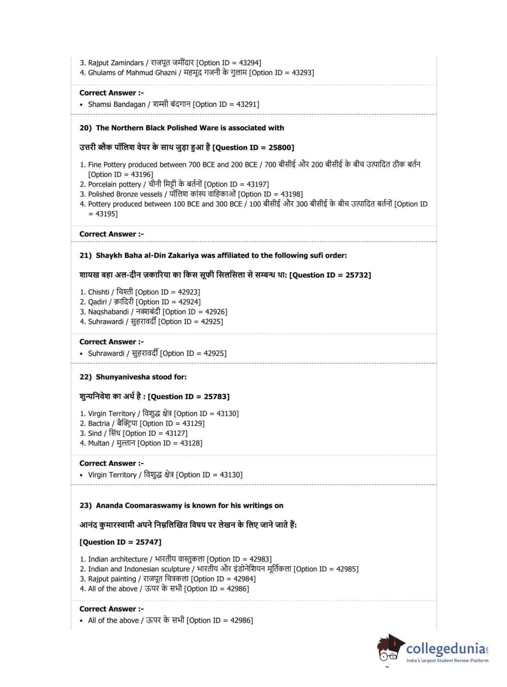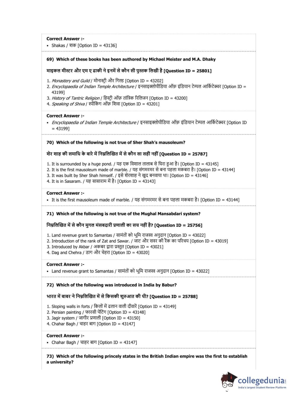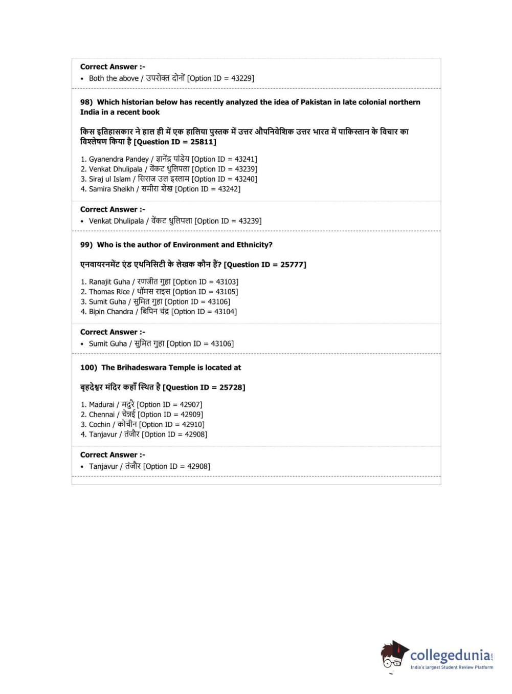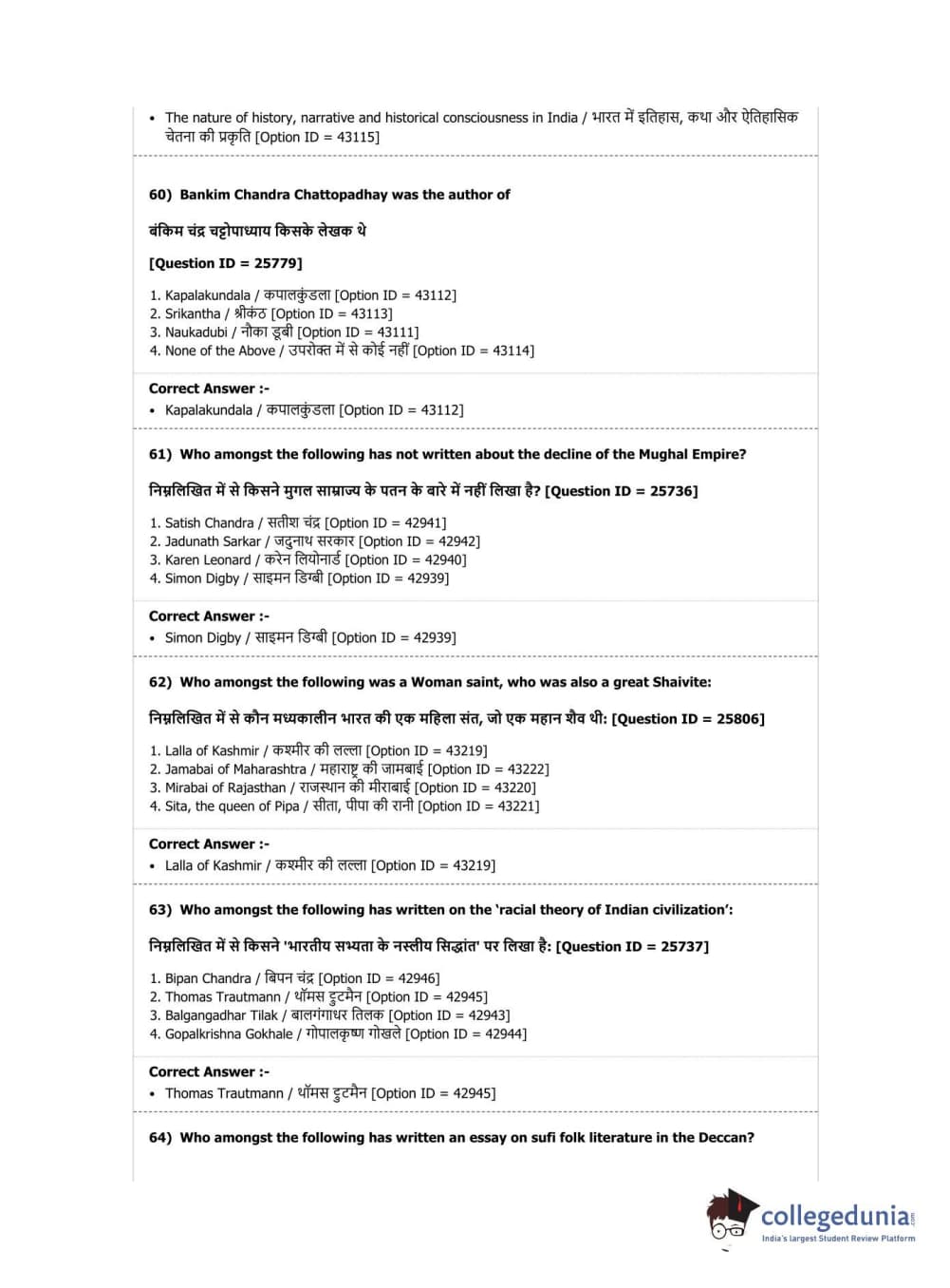 DUET 2019 M.A. History Question Paper with Answer Key PDF Shift 3