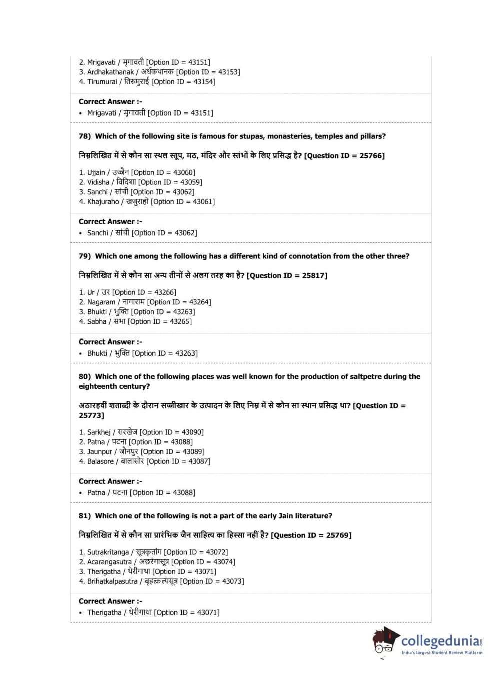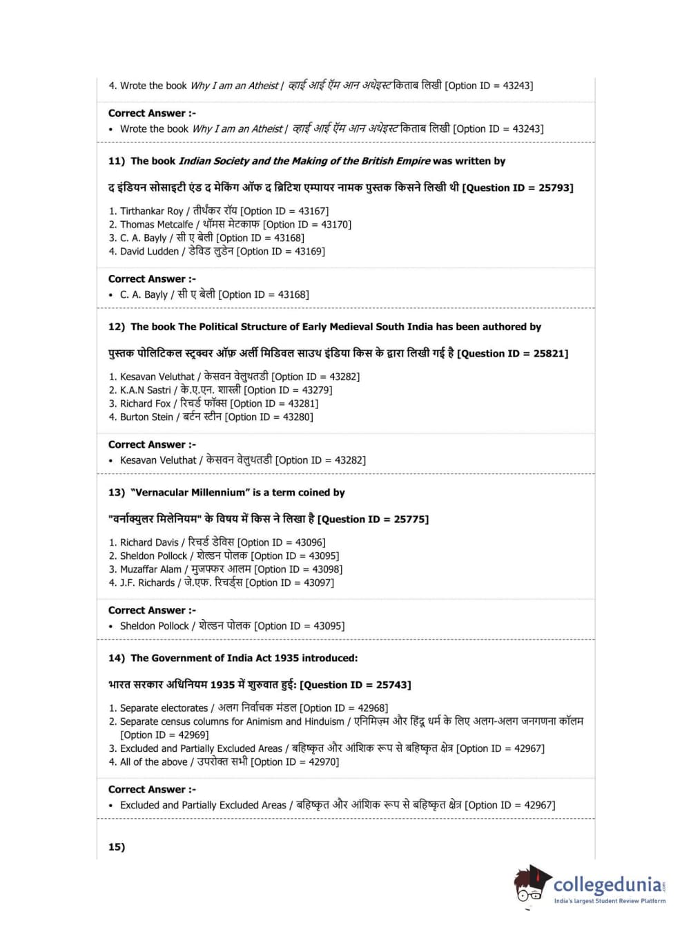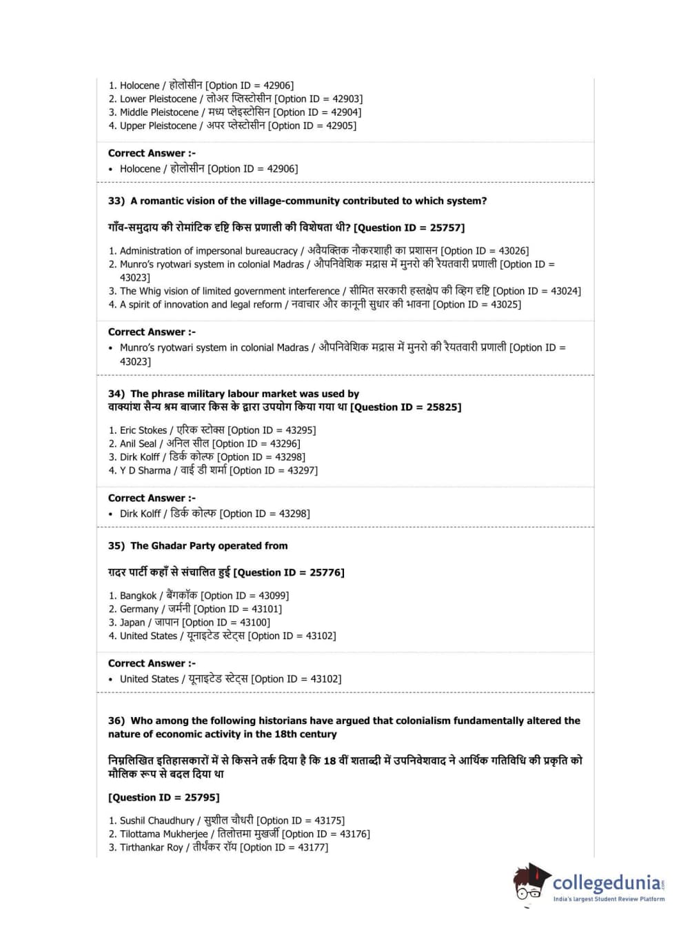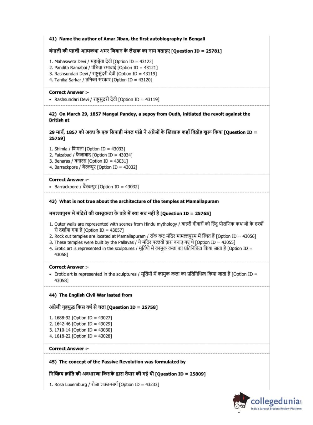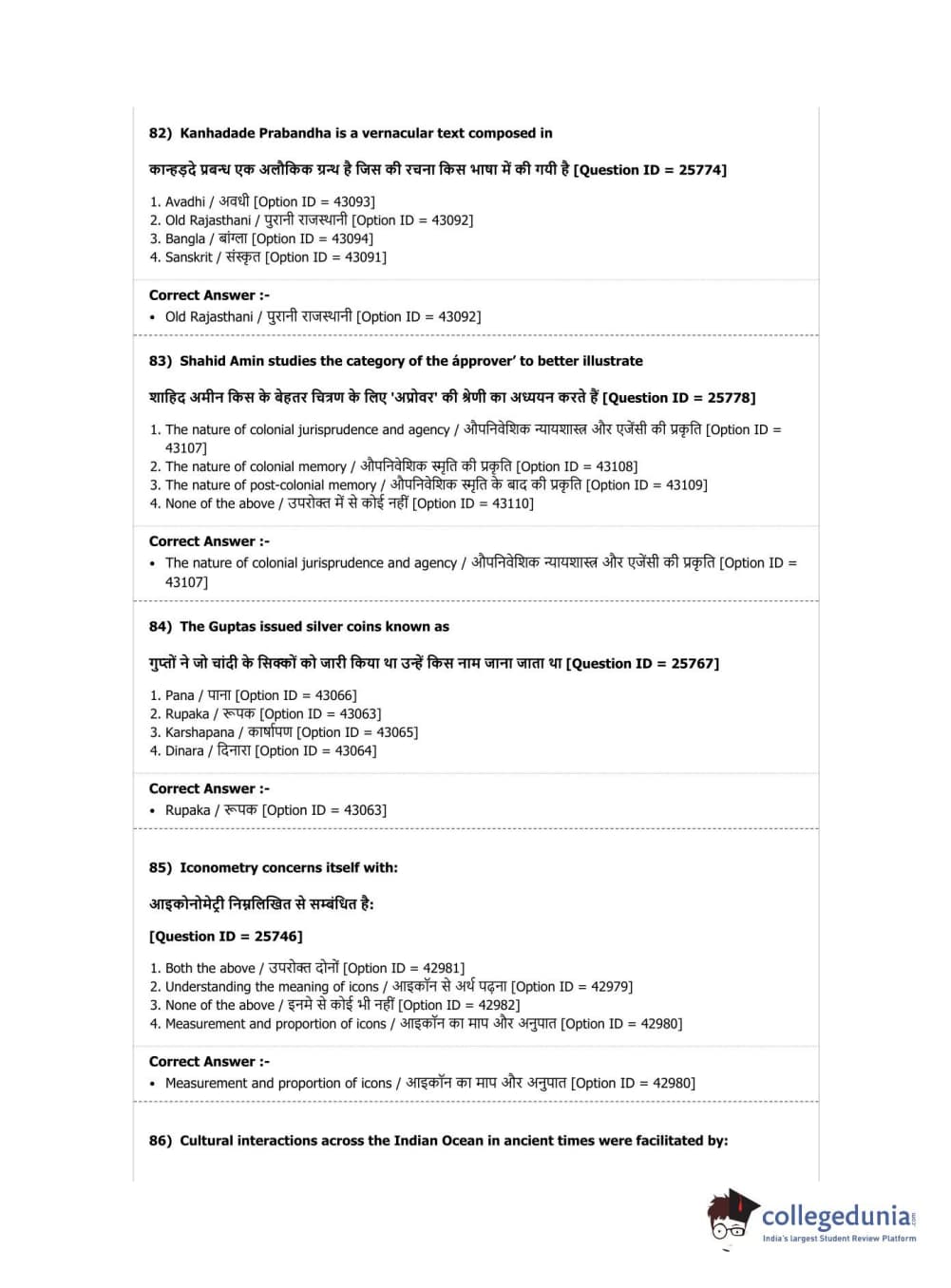 DUET 2019 M.A. History Question Paper with Answer Key PDF Shift 3