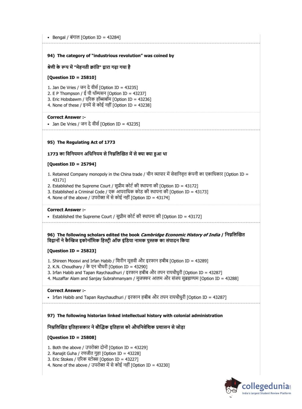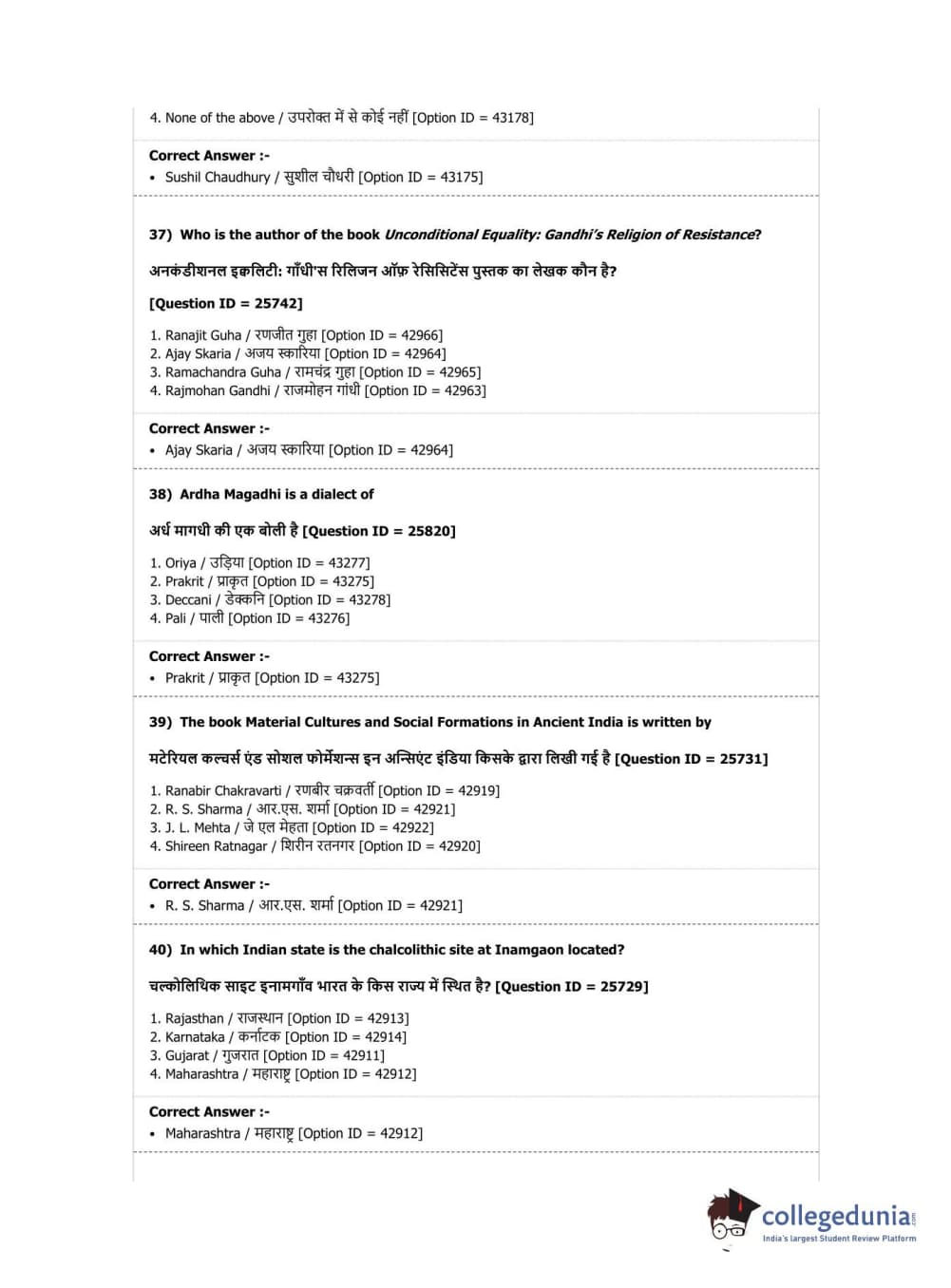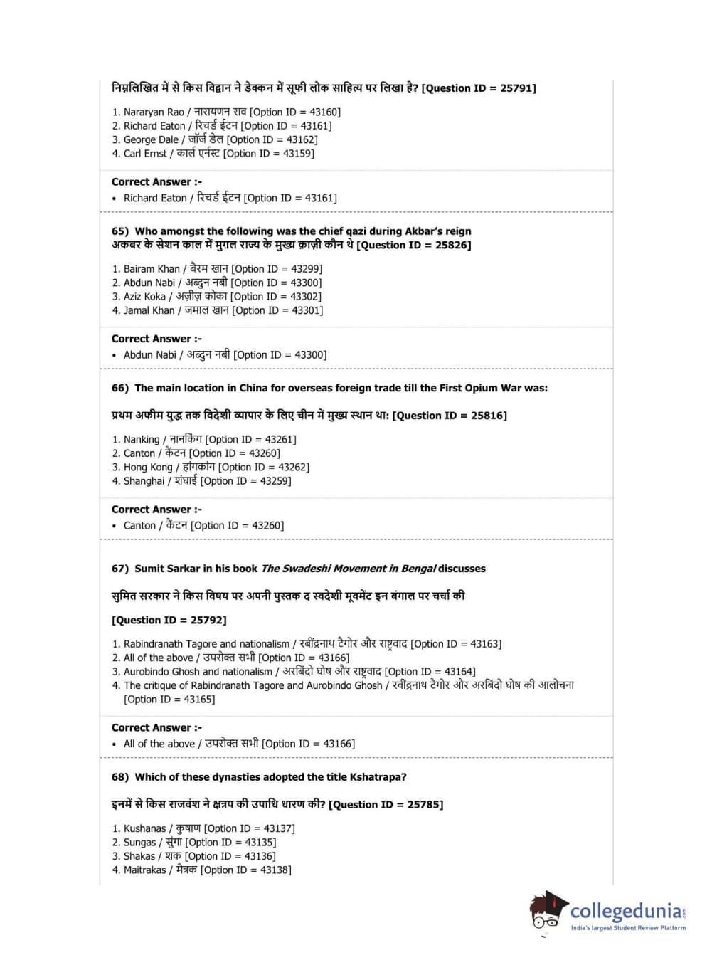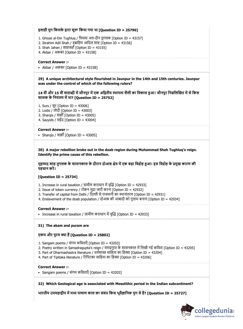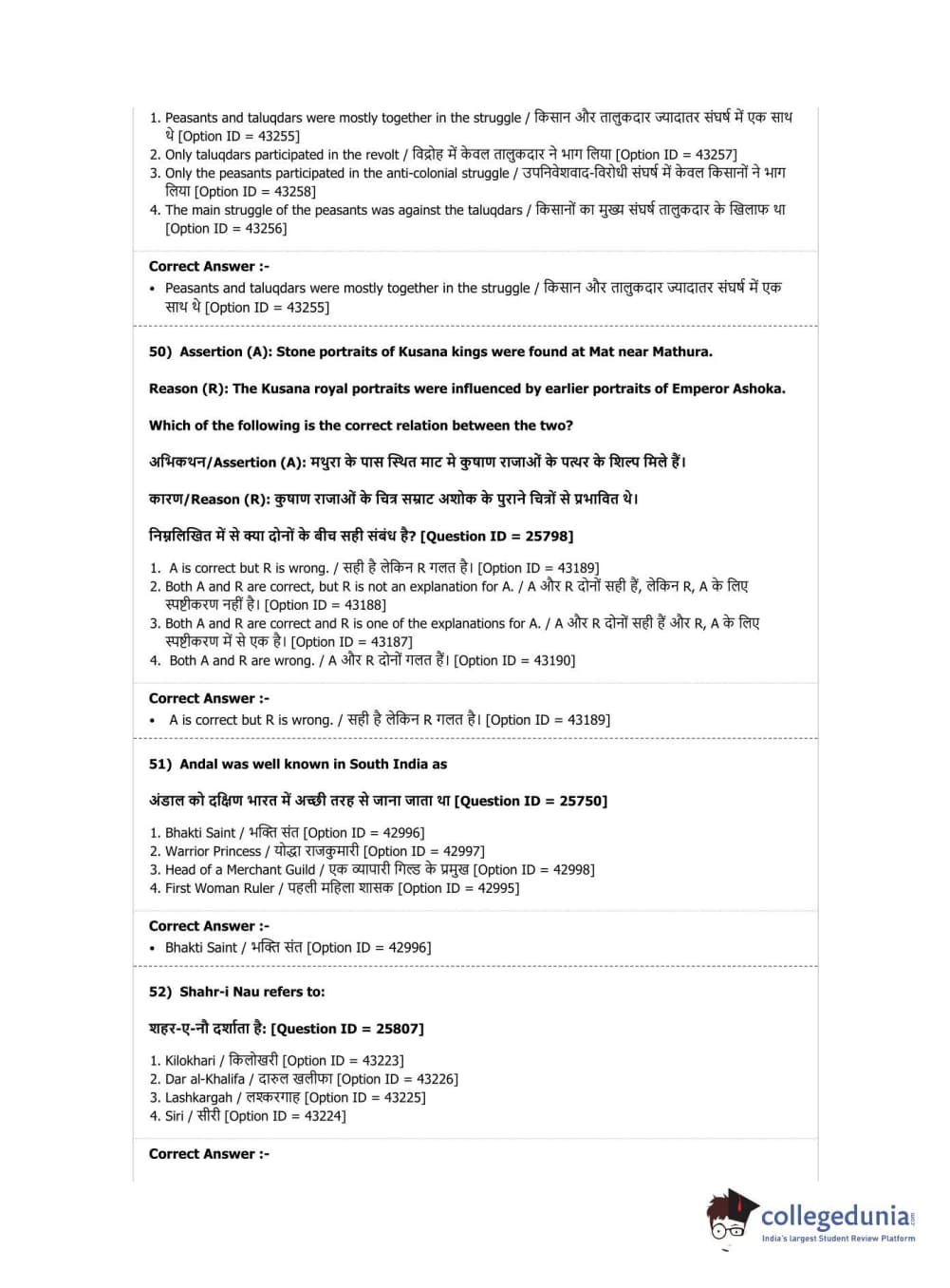 DUET 2019 M.A. History Question Paper with Answer Key PDF Shift 3